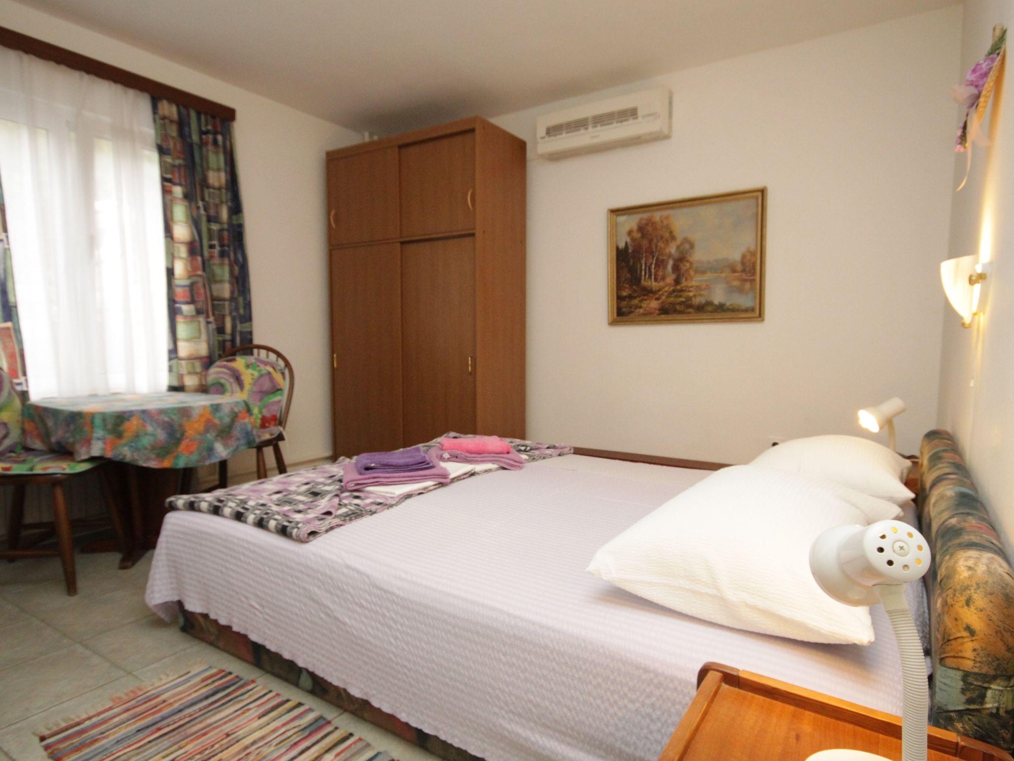 Studio bietet Platz für 2 Gäste. Die Betten sind in Schlafzimmern, die es 1 gibt, innerhalb einer Gesamtfläche von 20m2, angeordnet. Für vollen Genuss und Entspannung gibt es einen privaten Grill für Gäste dieser Unterkunft. In der Unterkunftseinheit besteht die Möglichkeit des Mitbringens von Haustieren gegen Aufpreis. Die reservierte Unterkunftseinheit hat keinen Balkon und keine Terrasse. IM PREIS INBEGRIFFEN: Kurtaxe, Endreinigung, Parkplatz, Internet, Bootsanlegeplatz, Bügeleisen, Bügelbrett, Föhn, tragbarer Grill, Sonnenschirm. VERBINDLICHE ZUSÄTZLICHE KOSTEN: Aufzahlung für Kurzaufenthalte (prozentualer Zuschlag pro Nächtigungsanzahl: 30% - 1, 20% - 2, 10% - 3). UNVERBINDLICHE ZUSÄTZLICHE KOSTEN: Klimatisierung (5,00 € pro Nacht), Haustiere (5,00 € pro Nacht). Die Verfügbarkeit zusätzlicher Dienstleistungen in Ihrem reservierten Termin und die Preise derselben (falls nicht aufgeführt) müssen im Voraus überprüft werden. Zusätzliche Dienstleistungen die in der Zahlungsaufforderung nicht aufgeführt sind werden direkt beim Vermieter bezahlt, angenommen der Gast nutzt auch diese. Ermäßigung auf den Grundpreis: Gratistag 14=13 (bei einem Aufenthalt von 14 Tagen oder mehr erhalten Sie einen Gratistag für den Aufenthalt bis 31.12.26).
