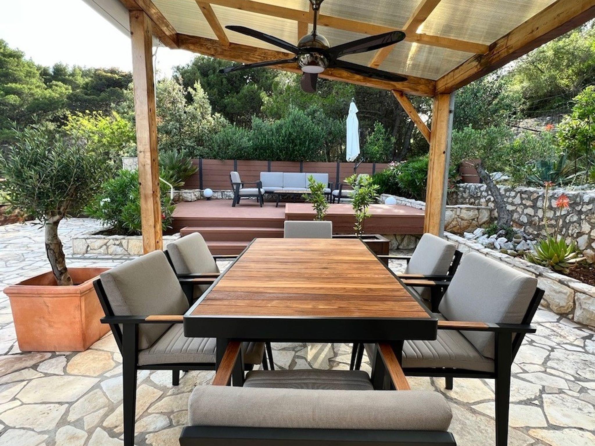 Haus bietet Platz für 6 Gäste. Die Betten sind in Schlafzimmern, die es 3 gibt, innerhalb einer Gesamtfläche von 99m2, angeordnet. Die Gäste haben eine eigene Terrasse zur Verfügung, auf der sie in warmen Sommernächten genießen können. Das Haus bietet Meerblick. Für vollen Genuss und Entspannung gibt es einen privaten Grill für Gäste dieser Unterkunft. Räume der gebuchten Unterkunftseinheit werden nicht in eine Ganze verbunden. IM PREIS INBEGRIFFEN: Kurtaxe, Endreinigung, Klimatisierung, Parkplatz, Internet, Bügeleisen, Föhn, Sonnenschirm, Liegestühle. Die Verfügbarkeit zusätzlicher Dienstleistungen in Ihrem reservierten Termin und die Preise derselben (falls nicht aufgeführt) müssen im Voraus überprüft werden. Zusätzliche Dienstleistungen die in der Zahlungsaufforderung nicht aufgeführt sind werden direkt beim Vermieter bezahlt, angenommen der Gast nutzt auch diese.