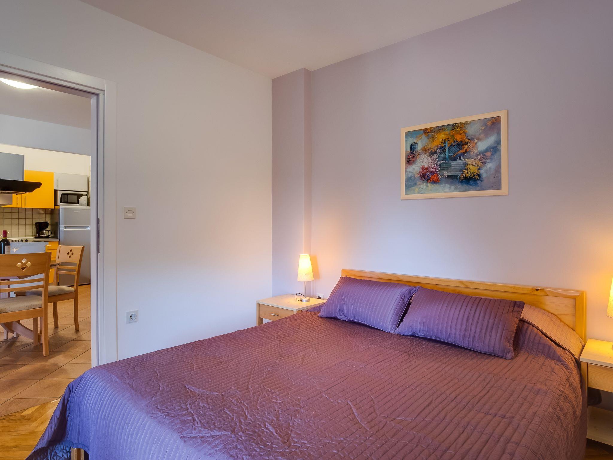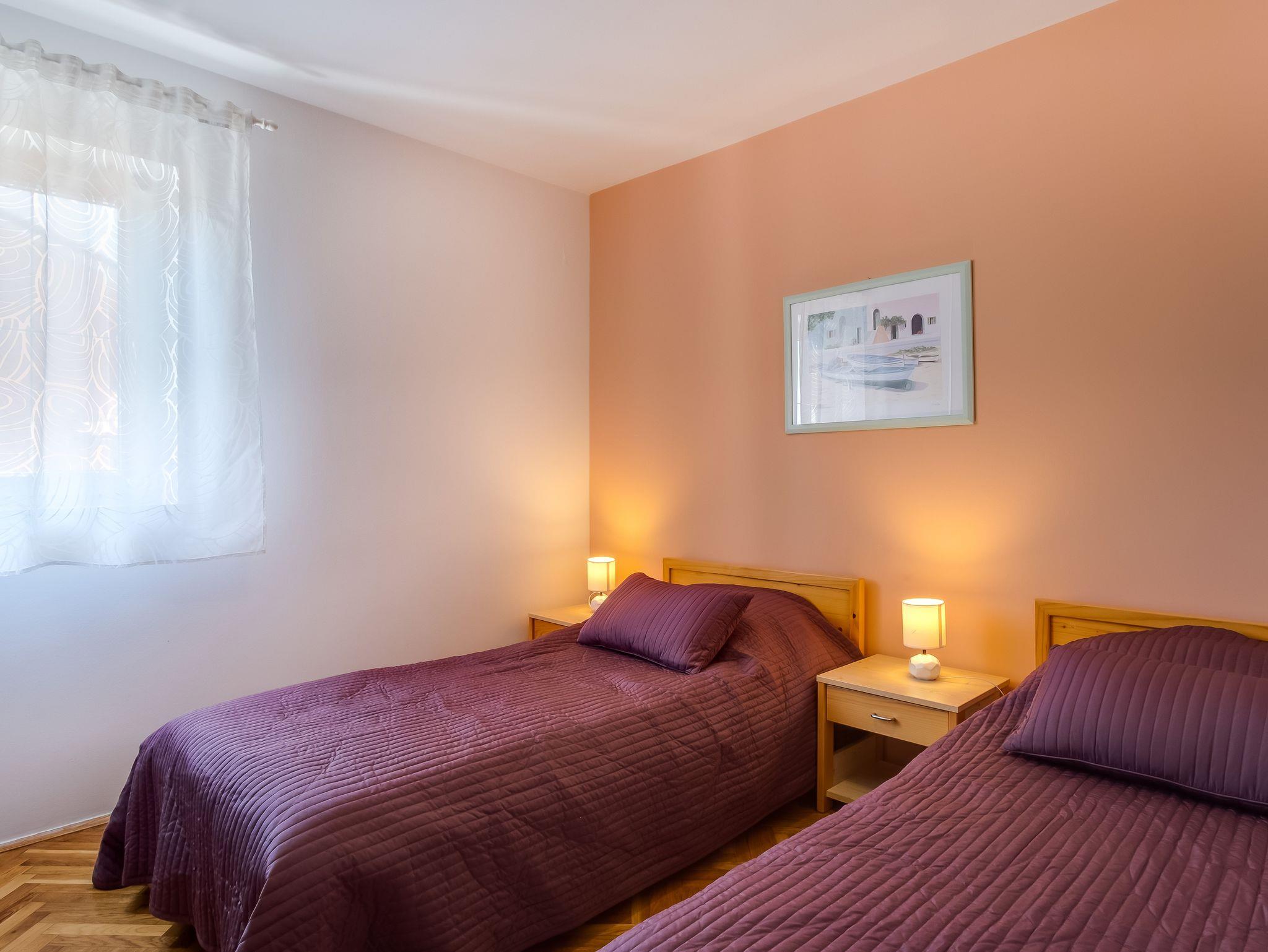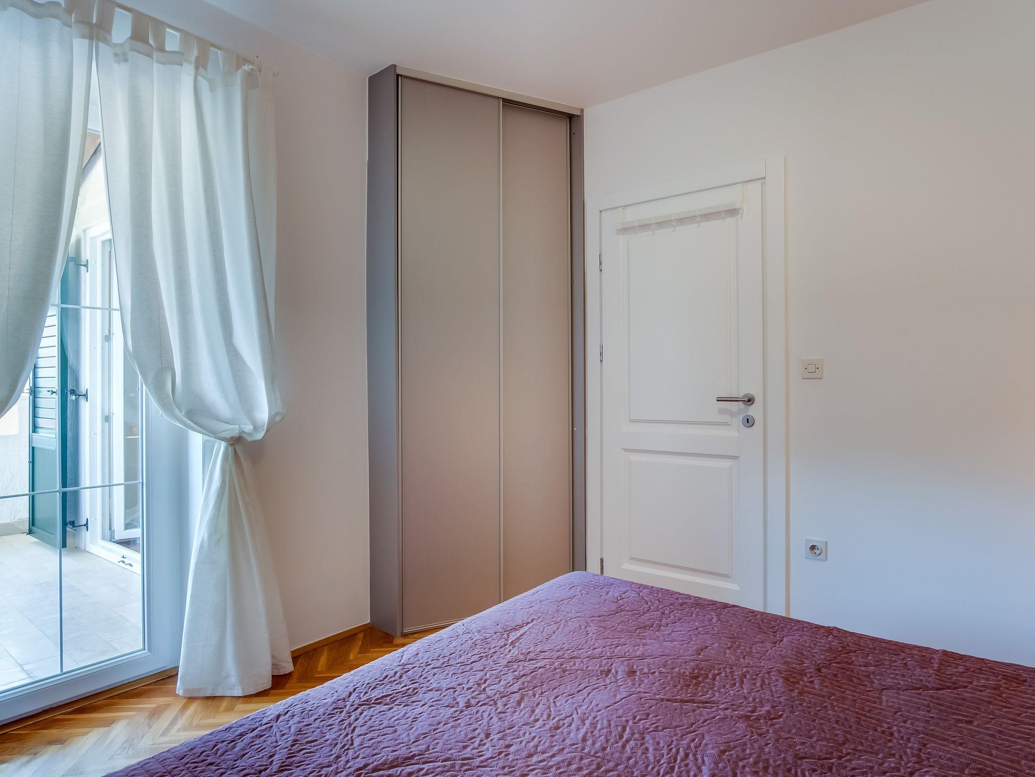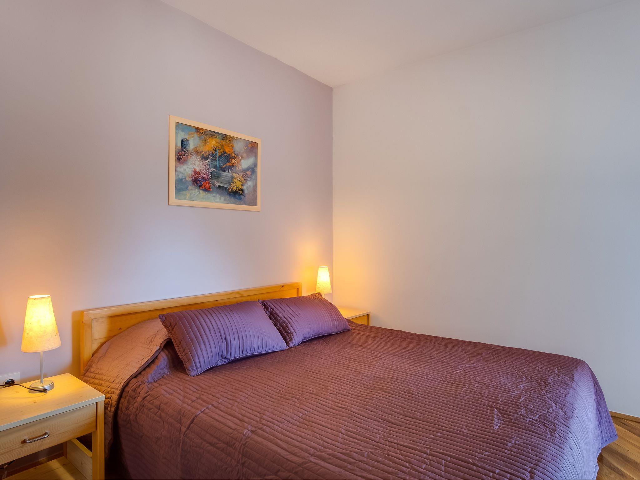 Ferienwohnung bietet Platz für 5 Gäste. Die Betten sind in Schlafzimmern, die es 2 gibt, und in Wohnzimmer, innerhalb einer Gesamtfläche von 47m2, angeordnet. Die Gäste haben eine eigene Terrasse zur Verfügung, auf der sie in warmen Sommernächten genießen können. Das Apartment bietet Meerblick. Es ist erlaubt, Speisen auf dem Gemeinschafts-Grill vorzubereiten. IM PREIS INBEGRIFFEN: Kurtaxe, Endreinigung, Klimatisierung, Parkplatz, Internet, Wäschewaschen, Bügeleisen, Bügelbrett, Föhn. VERBINDLICHE ZUSÄTZLICHE KOSTEN: Aufzahlung für Kurzaufenthalte (prozentualer Zuschlag pro Nächtigungsanzahl: 30% - 1, 20% - 2, 10% - 3). UNVERBINDLICHE ZUSÄTZLICHE KOSTEN: Frühstück (7,00 €, 50% Nachlass für Kinder zwischen 4 und 12 Jahren, Kinder bis 4 Jahre sind frei.), Fahrrad (7,00 € täglich (pro Stück)). Die Verfügbarkeit zusätzlicher Dienstleistungen in Ihrem reservierten Termin und die Preise derselben (falls nicht aufgeführt) müssen im Voraus überprüft werden. Zusätzliche Dienstleistungen die in der Zahlungsaufforderung nicht aufgeführt sind werden direkt beim Vermieter bezahlt, angenommen der Gast nutzt auch diese. Ermäßigung auf den Grundpreis: Gratistag 14=13 (bei einem Aufenthalt von 14 Tagen oder mehr erhalten Sie einen Gratistag für den Aufenthalt bis 31.12.26).