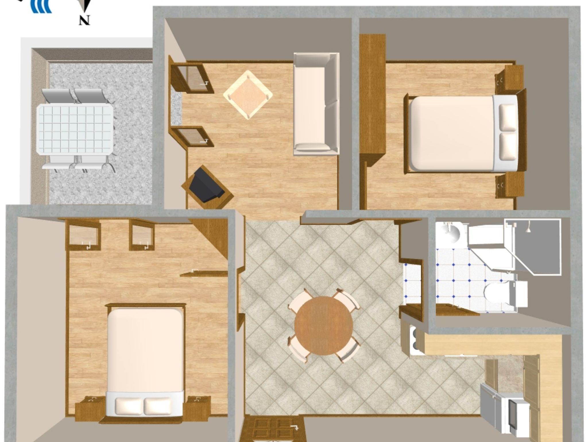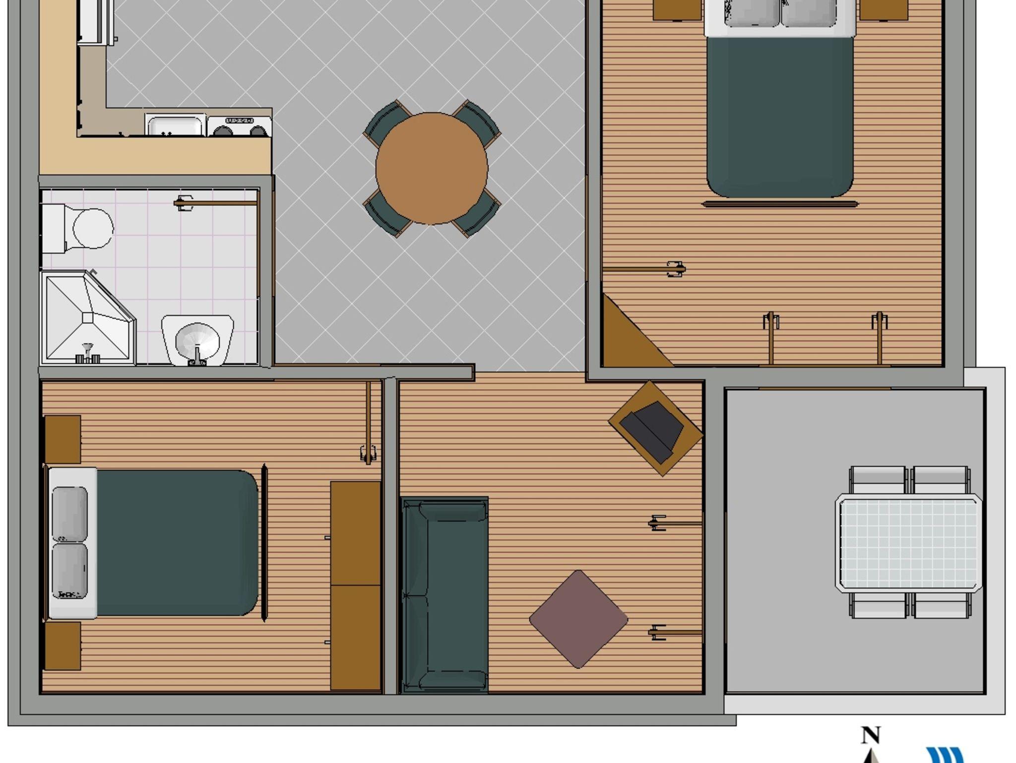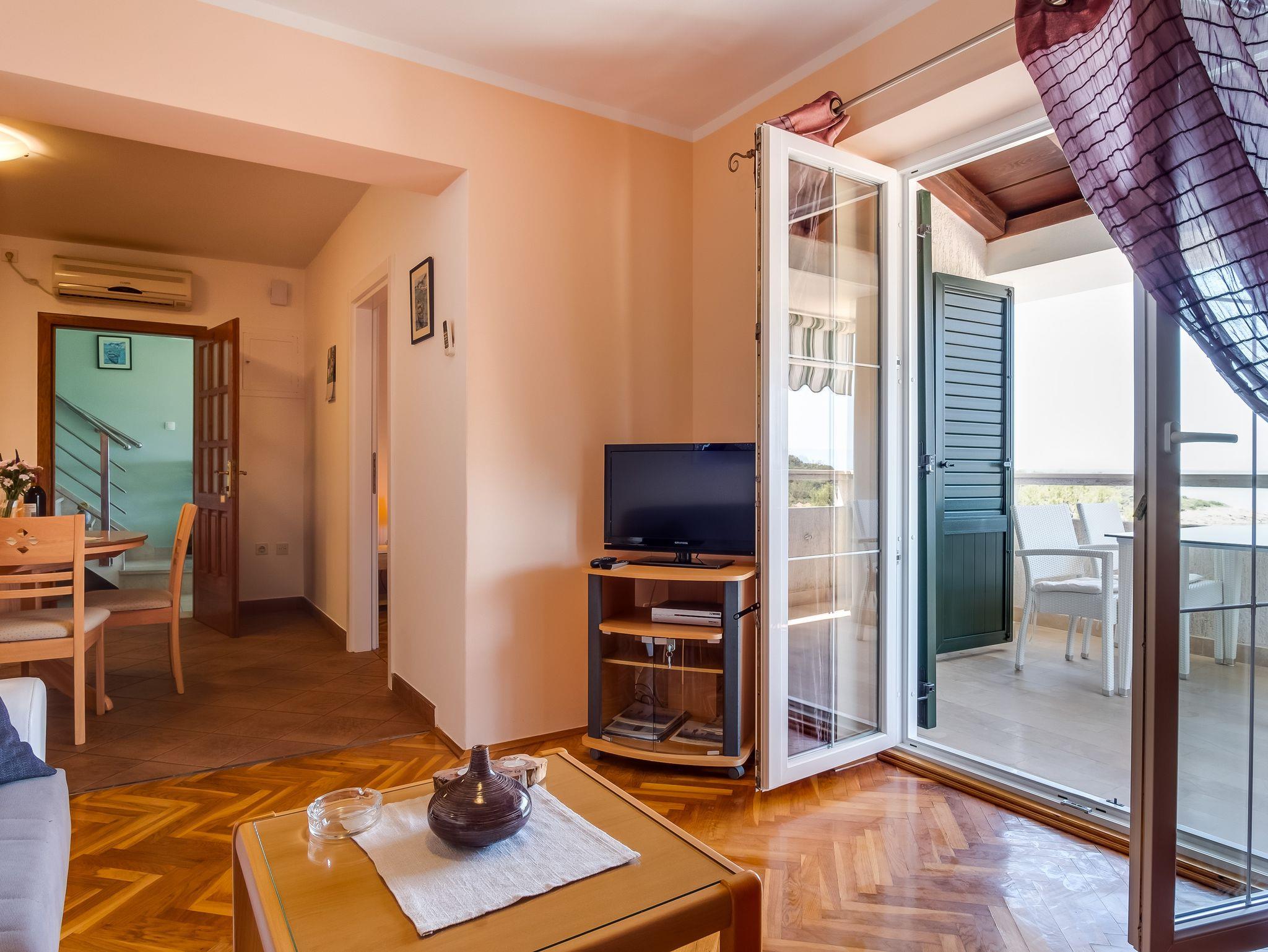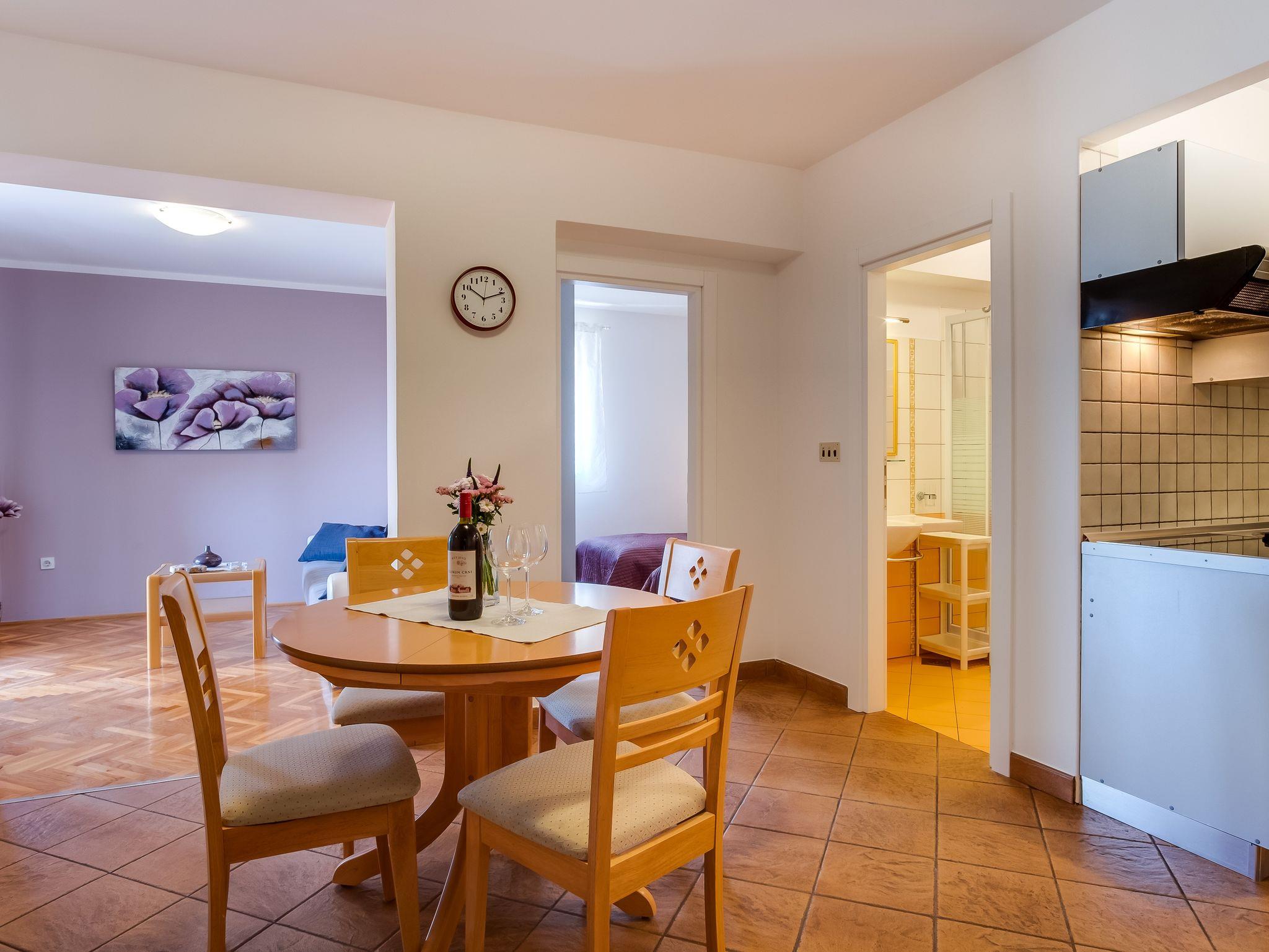 Ferienwohnung bietet Platz für 5 Gäste. Die Betten sind in Schlafzimmern, die es 2 gibt, und in Wohnzimmer, innerhalb einer Gesamtfläche von 47m2, angeordnet. Die Gäste haben eine eigene Terrasse zur Verfügung, auf der sie in warmen Sommernächten genießen können. Das Apartment bietet Meerblick. Es ist erlaubt, Speisen auf dem Gemeinschafts-Grill vorzubereiten. IM PREIS INBEGRIFFEN: Kurtaxe, Endreinigung, Klimatisierung, Parkplatz, Internet, Wäschewaschen, Bügeleisen, Bügelbrett, Föhn. VERBINDLICHE ZUSÄTZLICHE KOSTEN: Aufzahlung für Kurzaufenthalte (prozentualer Zuschlag pro Nächtigungsanzahl: 30% - 1, 20% - 2, 10% - 3). UNVERBINDLICHE ZUSÄTZLICHE KOSTEN: Frühstück (7,00 €, 50% Nachlass für Kinder zwischen 4 und 12 Jahren, Kinder bis 4 Jahre sind frei.), Fahrrad (7,00 € täglich (pro Stück)). Die Verfügbarkeit zusätzlicher Dienstleistungen in Ihrem reservierten Termin und die Preise derselben (falls nicht aufgeführt) müssen im Voraus überprüft werden. Zusätzliche Dienstleistungen die in der Zahlungsaufforderung nicht aufgeführt sind werden direkt beim Vermieter bezahlt, angenommen der Gast nutzt auch diese. Ermäßigung auf den Grundpreis: Gratistag 14=13 (bei einem Aufenthalt von 14 Tagen oder mehr erhalten Sie einen Gratistag für den Aufenthalt bis 31.12.26).