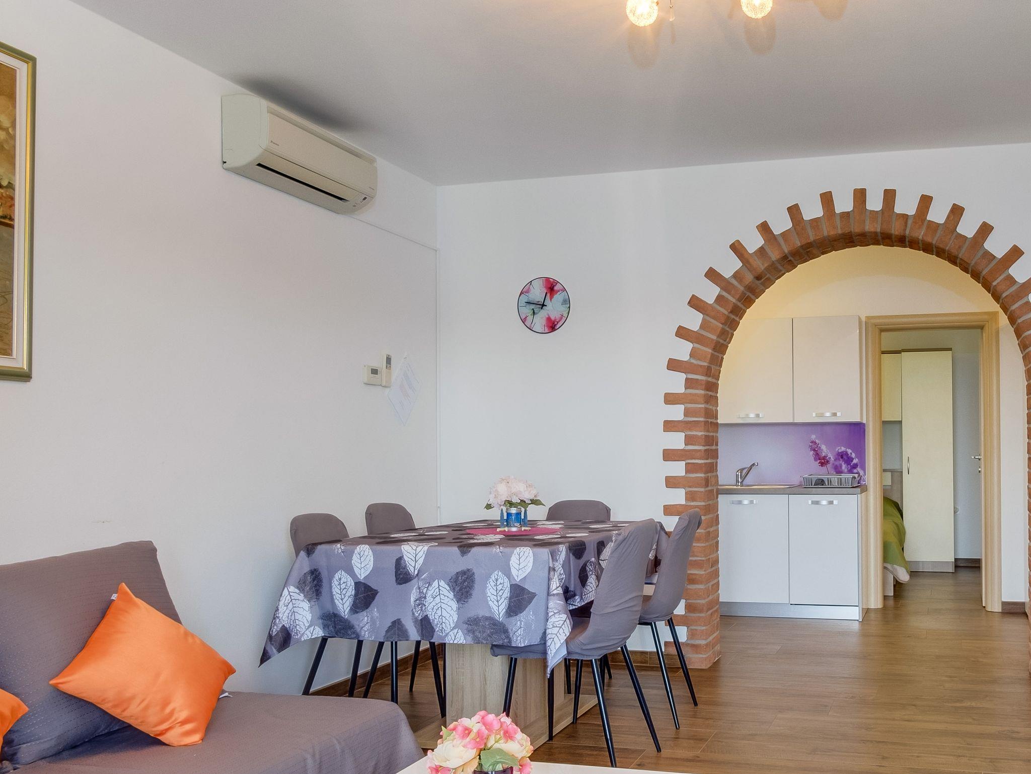 Ferienwohnung bietet Platz für 3 Gäste. Die Betten sind in Schlafzimmern, die es 1 gibt, und in Wohnzimmer, innerhalb einer Gesamtfläche von 40m2, angeordnet. Die Gäste haben einen eigenen Balkon zur Verfügung, auf der sie in warmen Sommernächten genießen können. Das Apartment bietet Meerblick. Es ist erlaubt, Speisen auf dem Gemeinschafts-Grill vorzubereiten. In der Unterkunftseinheit besteht die Möglichkeit des Mitbringens von Haustieren gegen Aufpreis. In der gebuchten Unterkunftseinheit zahlt man am Ort ein Depositum ( der Preis ist an der Internetseite angeführt ). IM PREIS INBEGRIFFEN: Kurtaxe, Endreinigung, Klimatisierung, Zentralheizung, Parkplatz, Internet, Bootsanlegeplatz, Föhn. VERBINDLICHE ZUSÄTZLICHE KOSTEN: Kaution (200,00 € Einmalzahlung), Aufzahlung für Kurzaufenthalte (prozentualer Zuschlag pro Nächtigungsanzahl: 30% - 1, 20% - 2, 10% - 3). UNVERBINDLICHE ZUSÄTZLICHE KOSTEN: Haustiere (10,00 € pro Nacht). Die Verfügbarkeit zusätzlicher Dienstleistungen in Ihrem reservierten Termin und die Preise derselben (falls nicht aufgeführt) müssen im Voraus überprüft werden. Zusätzliche Dienstleistungen die in der Zahlungsaufforderung nicht aufgeführt sind werden direkt beim Vermieter bezahlt, angenommen der Gast nutzt auch diese.