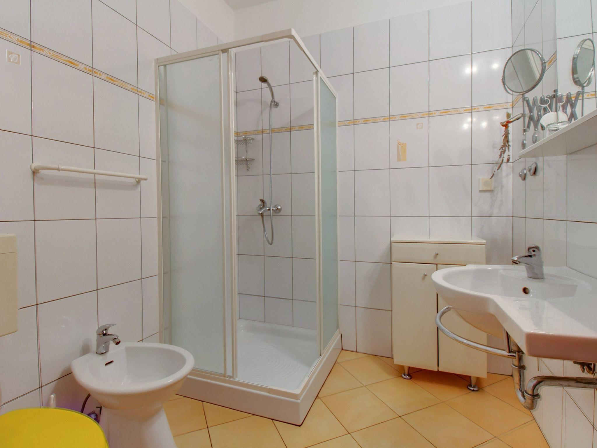 Ferienwohnung bietet Platz für 4 Gäste. Die Betten sind in Schlafzimmern, die es 2 gibt, innerhalb einer Gesamtfläche von 42m2, angeordnet. Die Gäste haben eine eigene Terrasse zur Verfügung, auf der sie in warmen Sommernächten genießen können. Das Apartment bietet Meerblick. Es ist erlaubt, Speisen auf dem Gemeinschafts-Grill vorzubereiten. IM PREIS INBEGRIFFEN: Kurtaxe, Endreinigung, Parkplatz, Internet. VERBINDLICHE ZUSÄTZLICHE KOSTEN: Aufzahlung für Kurzaufenthalte (prozentualer Zuschlag pro Nächtigungsanzahl: 30% - 1, 20% - 2, 10% - 3). UNVERBINDLICHE ZUSÄTZLICHE KOSTEN: Klimatisierung (5,00 € pro Nacht), Zusatzbett (7,00 € pro Nacht). Die Verfügbarkeit zusätzlicher Dienstleistungen in Ihrem reservierten Termin und die Preise derselben (falls nicht aufgeführt) müssen im Voraus überprüft werden. Zusätzliche Dienstleistungen die in der Zahlungsaufforderung nicht aufgeführt sind werden direkt beim Vermieter bezahlt, angenommen der Gast nutzt auch diese.