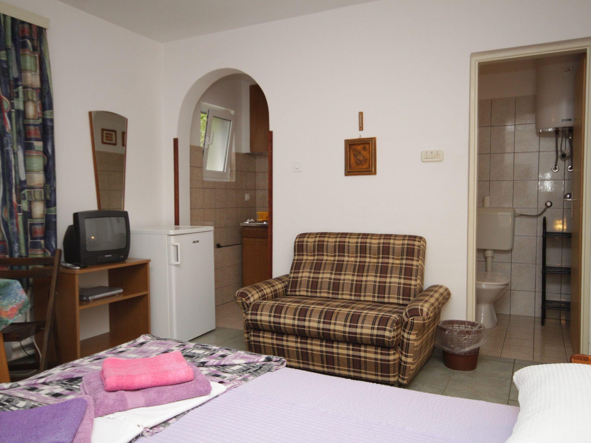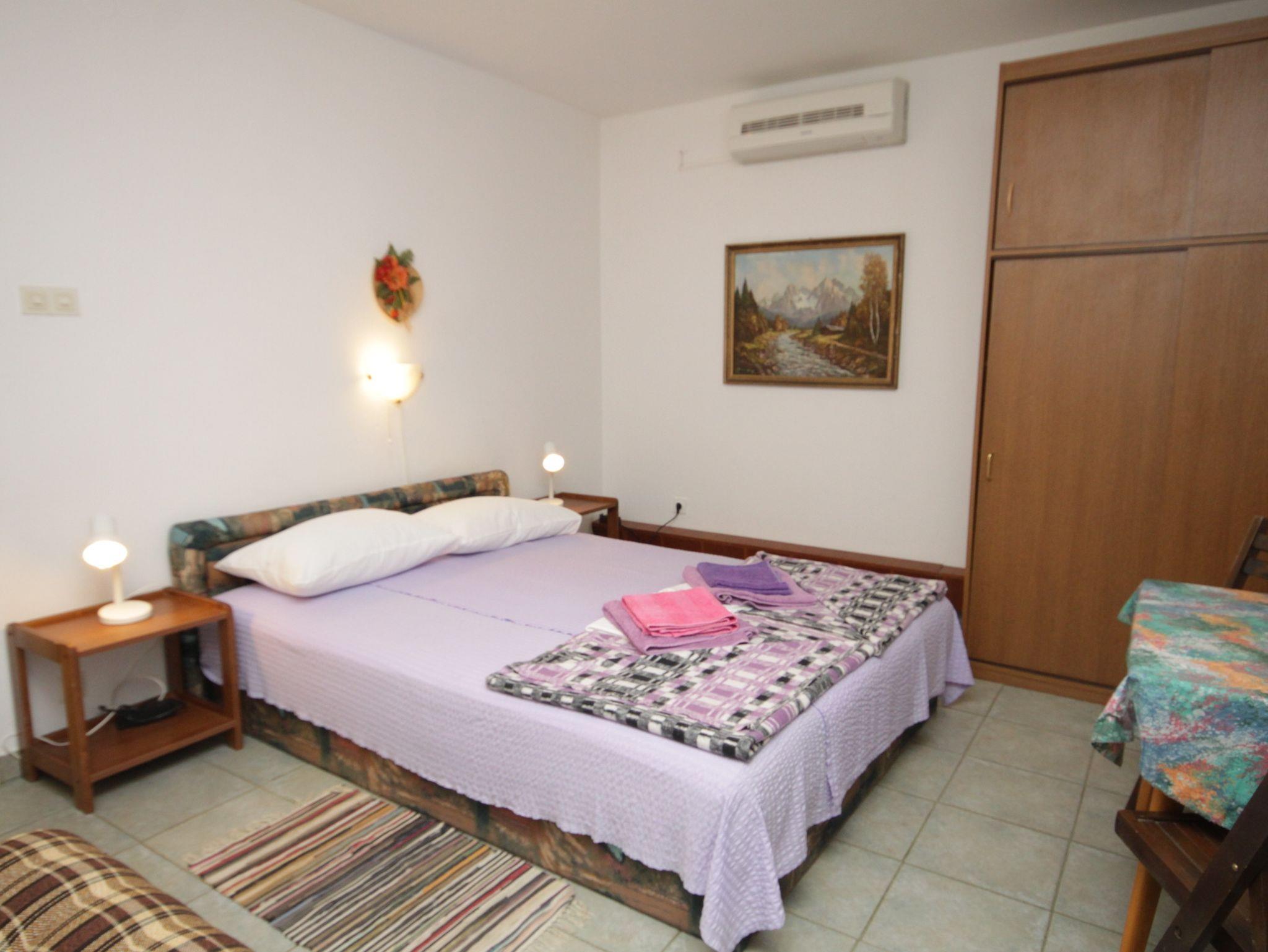 Studio bietet Platz für 2 Gäste. Die Betten sind in Schlafzimmern, die es 1 gibt, innerhalb einer Gesamtfläche von 20m2, angeordnet. Es ist erlaubt, Speisen auf dem Gemeinschafts-Grill vorzubereiten. In der Unterkunftseinheit besteht die Möglichkeit des Mitbringens von Haustieren gegen Aufpreis. Die reservierte Unterkunftseinheit hat keinen Balkon und keine Terrasse. IM PREIS INBEGRIFFEN: Kurtaxe, Endreinigung, Parkplatz, Internet, Bootsanlegeplatz, Bügeleisen, Bügelbrett, Föhn, tragbarer Grill, Sonnenschirm. VERBINDLICHE ZUSÄTZLICHE KOSTEN: Aufzahlung für Kurzaufenthalte (prozentualer Zuschlag pro Nächtigungsanzahl: 30% - 1, 20% - 2, 10% - 3). UNVERBINDLICHE ZUSÄTZLICHE KOSTEN: Klimatisierung (5,00 € pro Nacht), Haustiere (5,00 € pro Nacht). Die Verfügbarkeit zusätzlicher Dienstleistungen in Ihrem reservierten Termin und die Preise derselben (falls nicht aufgeführt) müssen im Voraus überprüft werden. Zusätzliche Dienstleistungen die in der Zahlungsaufforderung nicht aufgeführt sind werden direkt beim Vermieter bezahlt, angenommen der Gast nutzt auch diese. Ermäßigung auf den Grundpreis: Gratistag 14=13 (bei einem Aufenthalt von 14 Tagen oder mehr erhalten Sie einen Gratistag für den Aufenthalt bis 31.12.26).