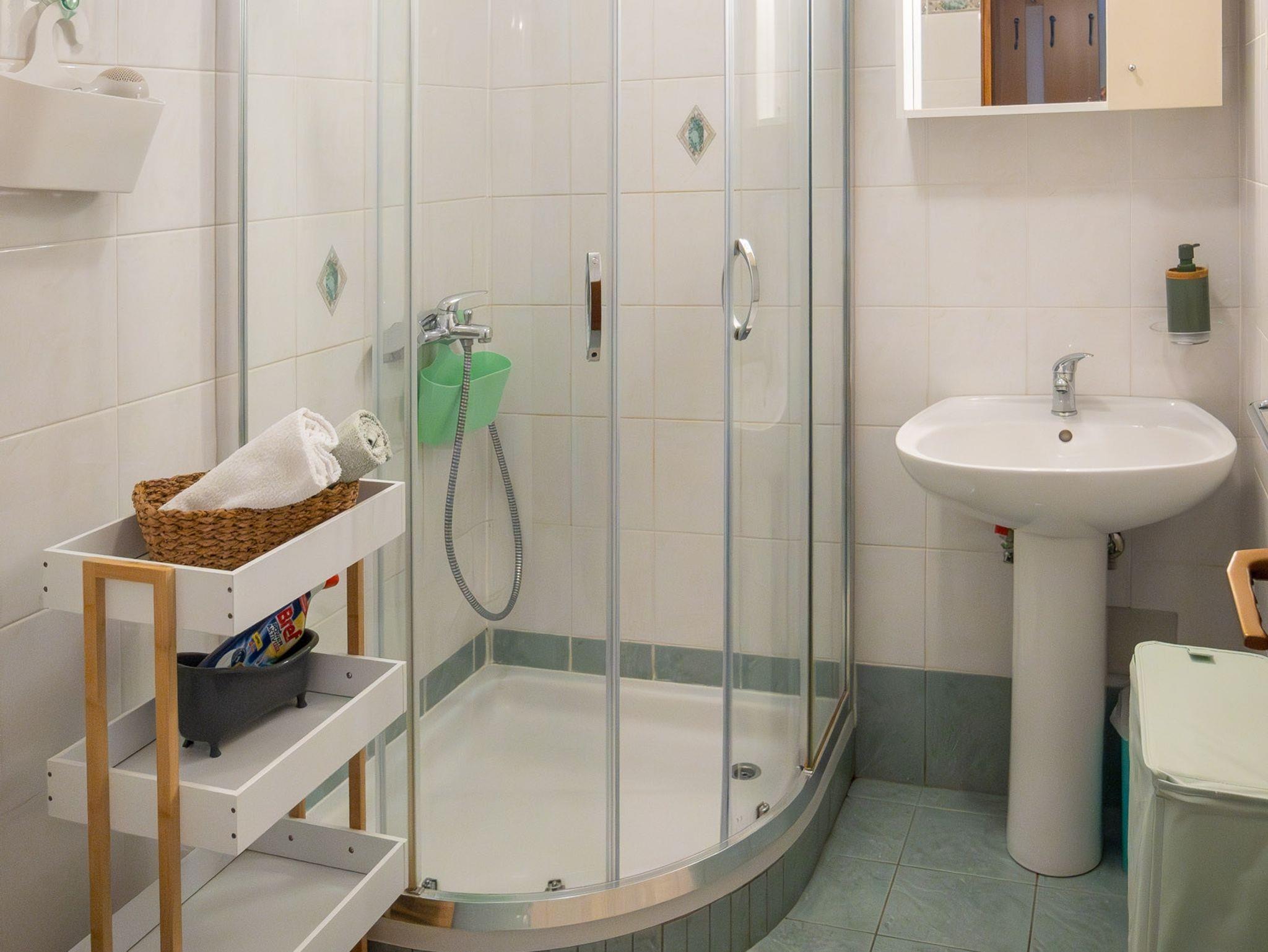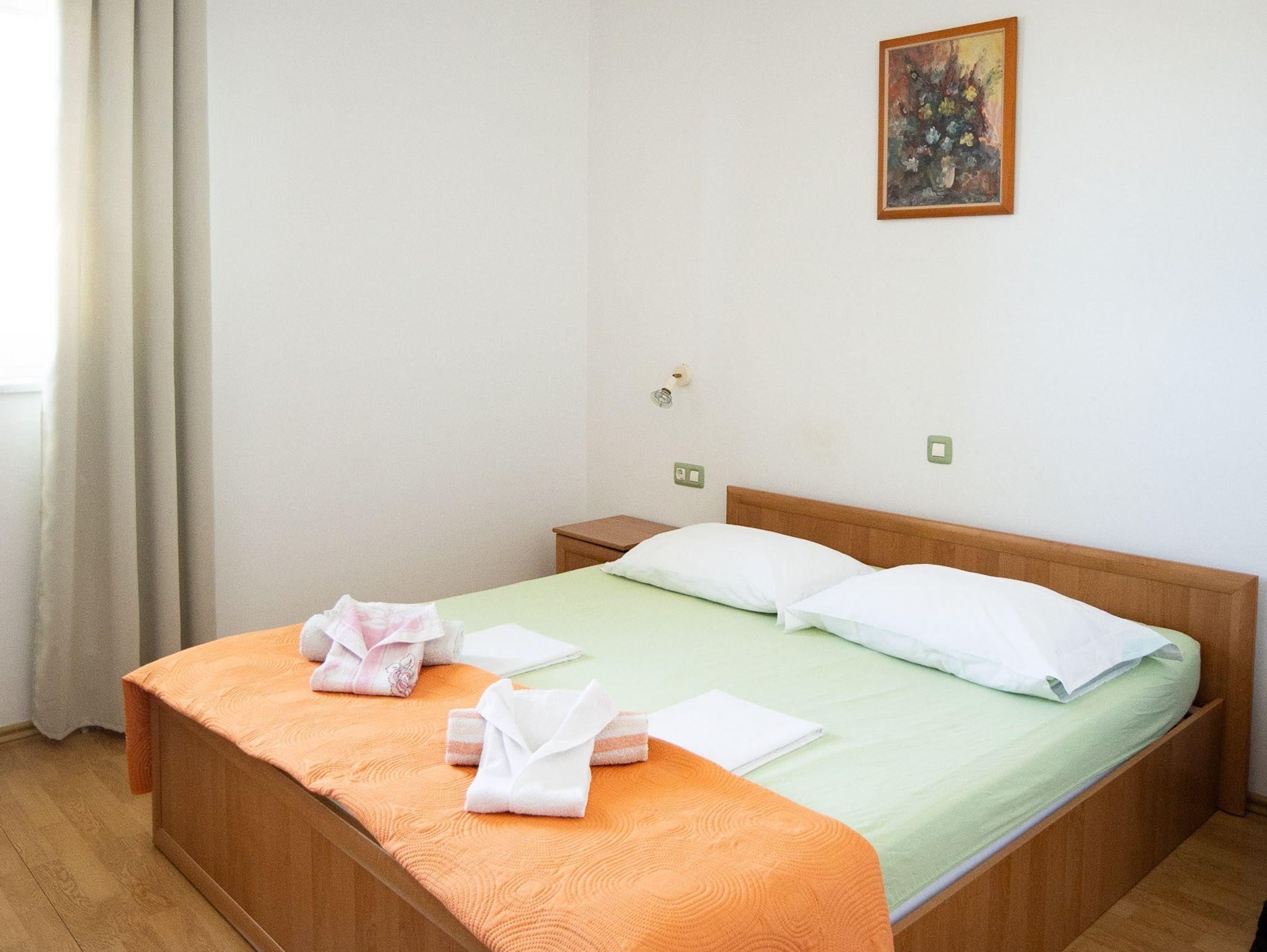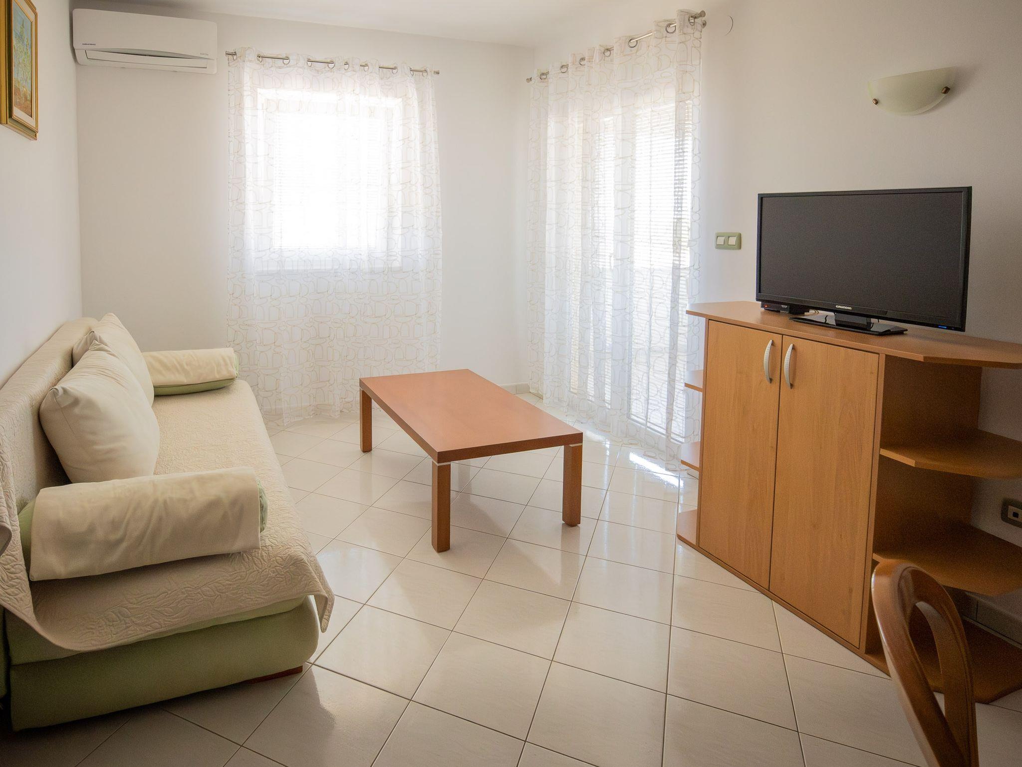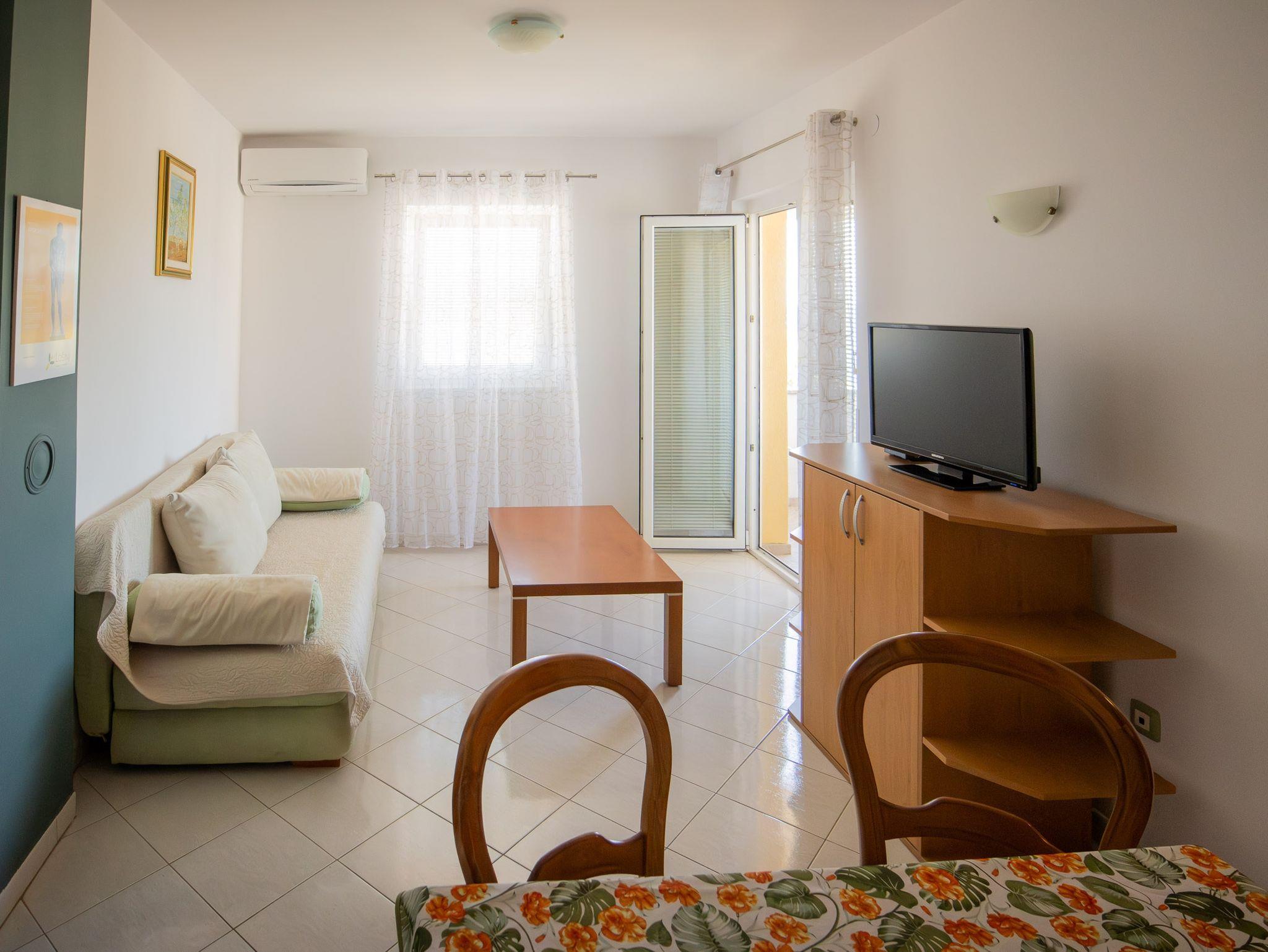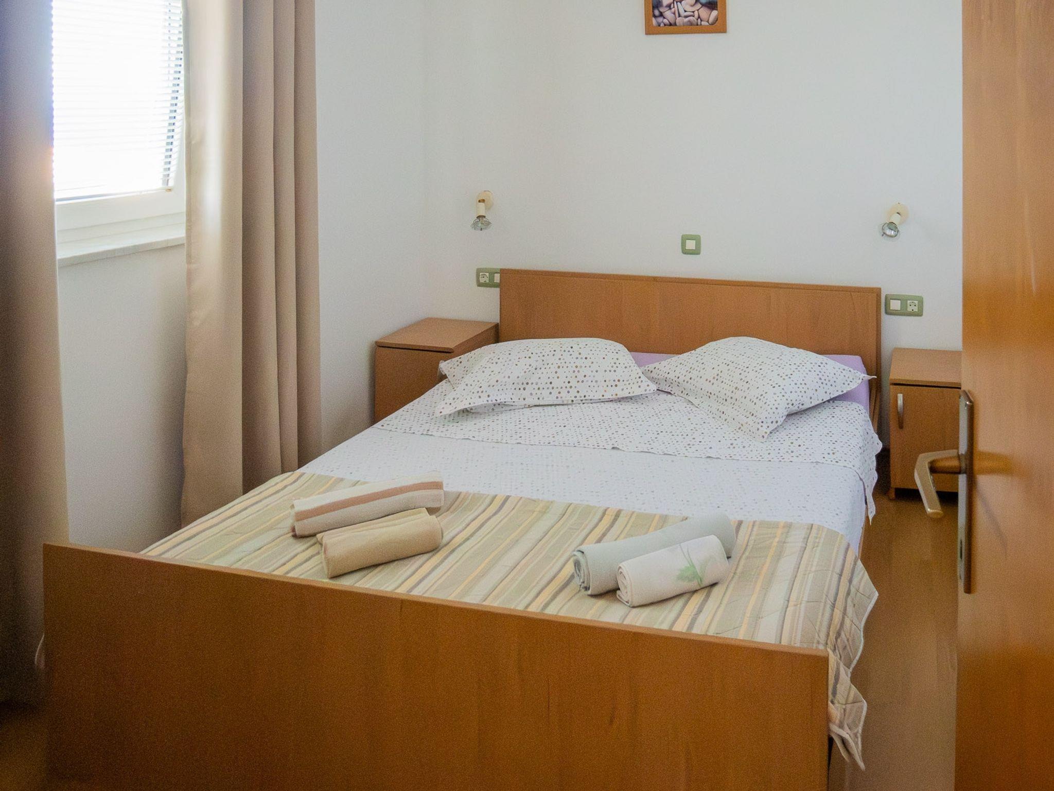 Ferienwohnung bietet Platz für 4 Gäste. Die Betten sind in Schlafzimmern, die es 2 gibt, innerhalb einer Gesamtfläche von 49m2, angeordnet. Die Gäste haben eine eigene Terrasse zur Verfügung, auf der sie in warmen Sommernächten genießen können. Das Apartment bietet Meerblick. Es ist erlaubt, Speisen auf dem Gemeinschafts-Grill vorzubereiten. In der Unterkunftseinheit besteht die Möglichkeit des Mitbringens von Haustieren gegen Aufpreis. IM PREIS INBEGRIFFEN: Kurtaxe, Endreinigung, Klimatisierung, Parkplatz, Internet, Wäschewaschen, Bügeleisen, Bügelbrett, Föhn. VERBINDLICHE ZUSÄTZLICHE KOSTEN: Aufzahlung für Kurzaufenthalte (prozentualer Zuschlag pro Nächtigungsanzahl: 30% - 1, 20% - 2, 10% - 3). UNVERBINDLICHE ZUSÄTZLICHE KOSTEN: Haustiere (25,00 € pro Nacht). Die Verfügbarkeit zusätzlicher Dienstleistungen in Ihrem reservierten Termin und die Preise derselben (falls nicht aufgeführt) müssen im Voraus überprüft werden. Zusätzliche Dienstleistungen die in der Zahlungsaufforderung nicht aufgeführt sind werden direkt beim Vermieter bezahlt, angenommen der Gast nutzt auch diese. Ermäßigung auf den Grundpreis: Gratistag 14=13 (bei einem Aufenthalt von 14 Tagen oder mehr erhalten Sie einen Gratistag für den Aufenthalt bis 31.12.26).