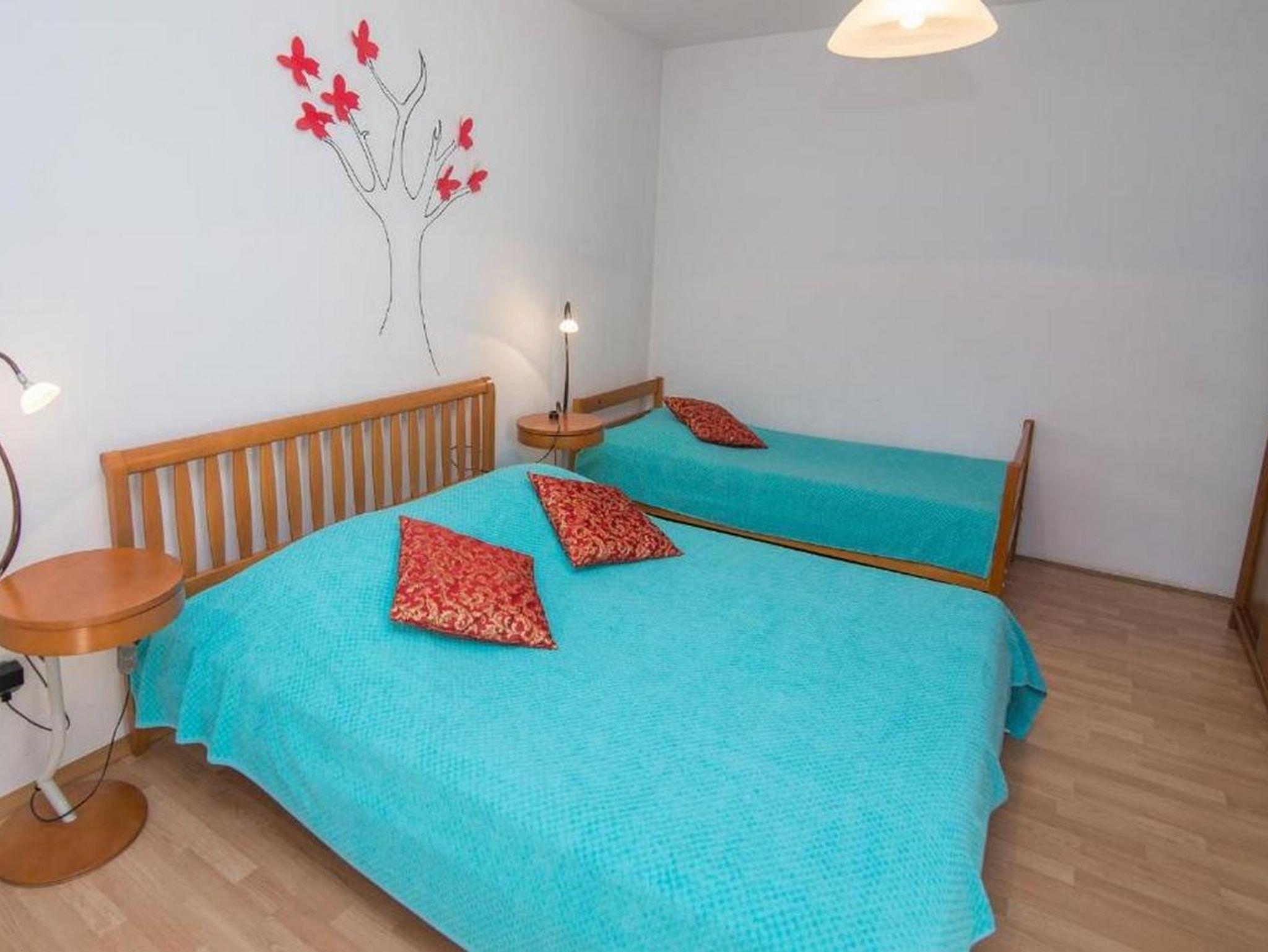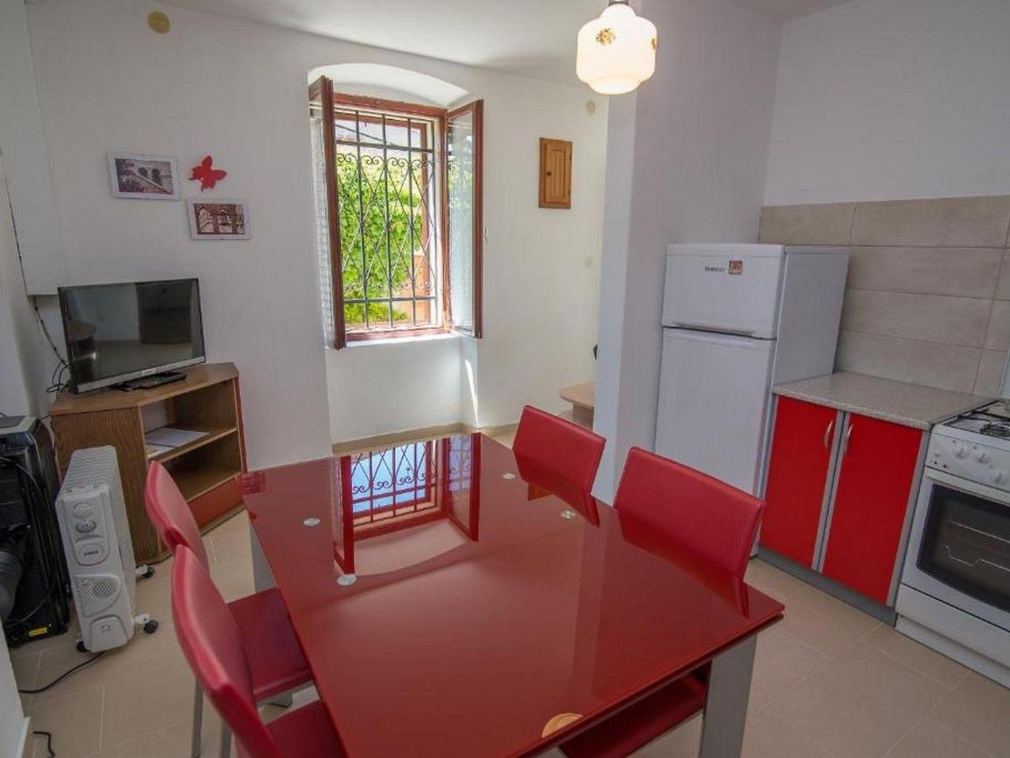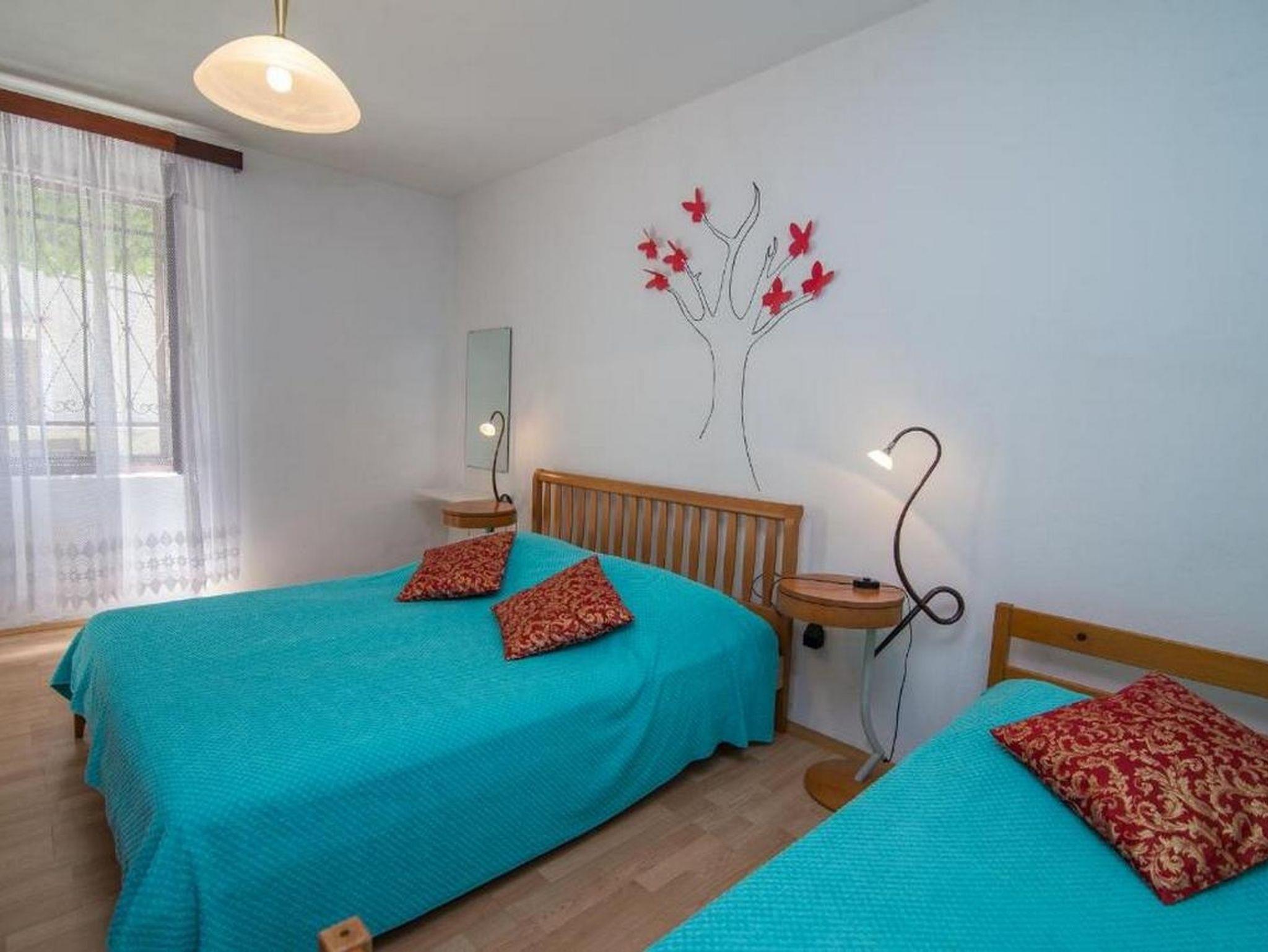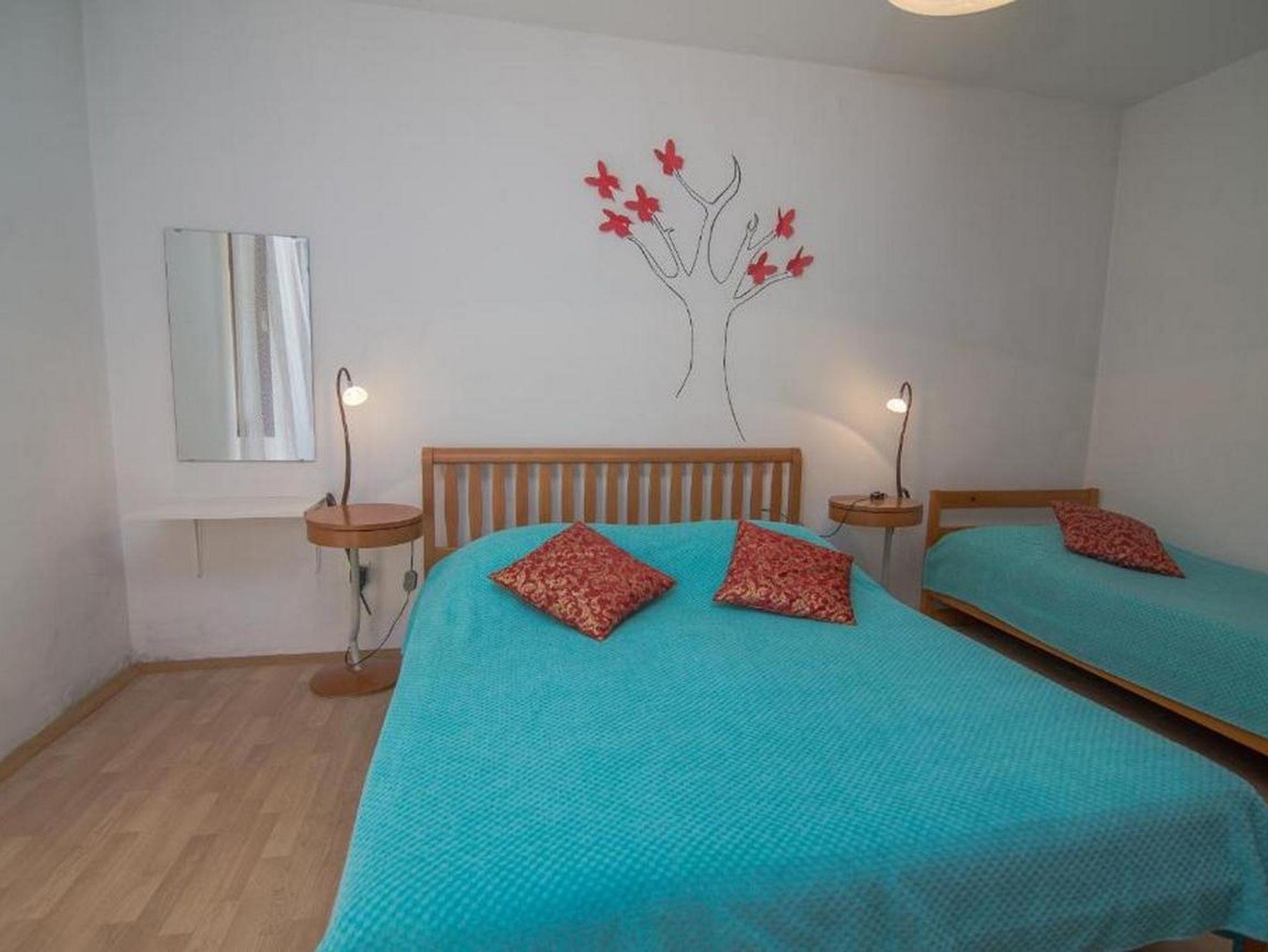 Ferienwohnung bietet Platz für 5 Gäste. Die Betten sind in Schlafzimmern, die es 2 gibt, innerhalb einer Gesamtfläche von 54m2, angeordnet. Die Gäste haben eine eigene Terrasse zur Verfügung, auf der sie in warmen Sommernächten genießen können. Es ist erlaubt, Speisen auf dem Gemeinschafts-Grill vorzubereiten. In der Unterkunftseinheit besteht die Möglichkeit des Mitbringens von Haustieren gegen Aufpreis. IM PREIS INBEGRIFFEN: Kurtaxe, Endreinigung, Klimatisierung, Parkplatz, Internet, Bügeleisen, Bügelbrett, Föhn. VERBINDLICHE ZUSÄTZLICHE KOSTEN: Aufzahlung für Kurzaufenthalte (prozentualer Zuschlag pro Nächtigungsanzahl: 30% - 1, 20% - 2, 10% - 3). UNVERBINDLICHE ZUSÄTZLICHE KOSTEN: Haustiere (5,00 € pro Nacht). Die Verfügbarkeit zusätzlicher Dienstleistungen in Ihrem reservierten Termin und die Preise derselben (falls nicht aufgeführt) müssen im Voraus überprüft werden. Zusätzliche Dienstleistungen die in der Zahlungsaufforderung nicht aufgeführt sind werden direkt beim Vermieter bezahlt, angenommen der Gast nutzt auch diese. Ermäßigung auf den Grundpreis: Gratistag 14=13 (bei einem Aufenthalt von 14 Tagen oder mehr erhalten Sie einen Gratistag für den Aufenthalt bis 31.12.26).
