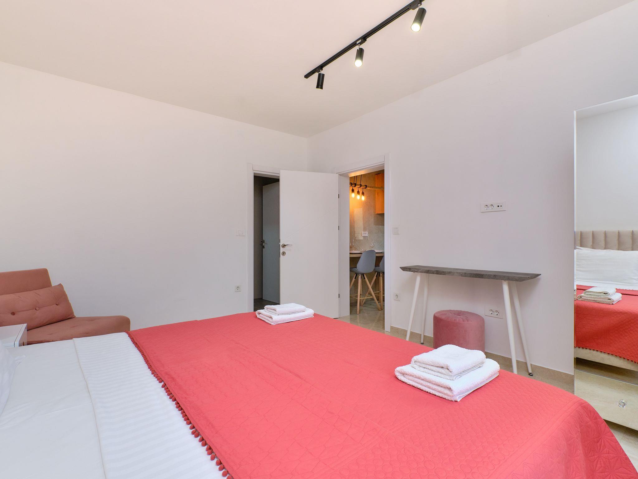 Ferienwohnung bietet Platz für 2 Gäste. Die Betten sind in Schlafzimmern, die es 1 gibt, innerhalb einer Gesamtfläche von 36m2, angeordnet. Die Gäste haben einen eigenen Balkon zur Verfügung, auf der sie in warmen Sommernächten genießen können. IM PREIS INBEGRIFFEN: Kurtaxe, Endreinigung, Klimatisierung, Parkplatz, Internet, Bügeleisen, Bügelbrett, Föhn. Die Verfügbarkeit zusätzlicher Dienstleistungen in Ihrem reservierten Termin und die Preise derselben (falls nicht aufgeführt) müssen im Voraus überprüft werden. Zusätzliche Dienstleistungen die in der Zahlungsaufforderung nicht aufgeführt sind werden direkt beim Vermieter bezahlt, angenommen der Gast nutzt auch diese.