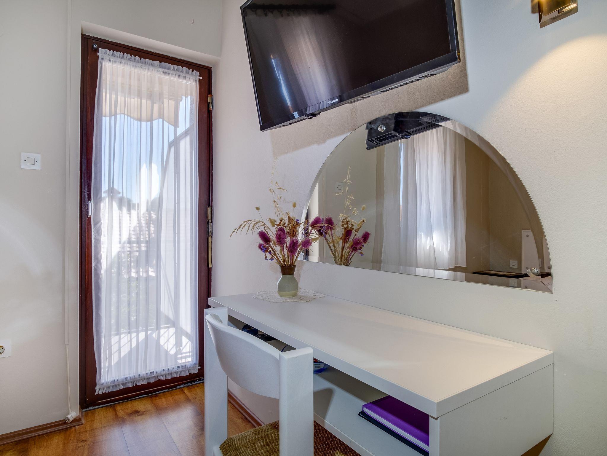 Ferienwohnung bietet Platz für 3 Gäste. Die Betten sind in Schlafzimmern, die es 1 gibt, innerhalb einer Gesamtfläche von 25m2, angeordnet. Die Gäste haben eine eigene Terrasse zur Verfügung, auf der sie in warmen Sommernächten genießen können. Es ist erlaubt, Speisen auf dem Gemeinschafts-Grill vorzubereiten. In der Unterkunftseinheit besteht die Möglichkeit des Mitbringens von Haustieren gegen Aufpreis. IM PREIS INBEGRIFFEN: Kurtaxe, Endreinigung, Klimatisierung, Parkplatz, Internet, Wäschewaschen, Bügeleisen, Föhn. UNVERBINDLICHE ZUSÄTZLICHE KOSTEN: Bootsanlegeplatz (12,00 € pro Nacht), Haustiere (5,50 € pro Nacht). Die Verfügbarkeit zusätzlicher Dienstleistungen in Ihrem reservierten Termin und die Preise derselben (falls nicht aufgeführt) müssen im Voraus überprüft werden. Zusätzliche Dienstleistungen die in der Zahlungsaufforderung nicht aufgeführt sind werden direkt beim Vermieter bezahlt, angenommen der Gast nutzt auch diese.