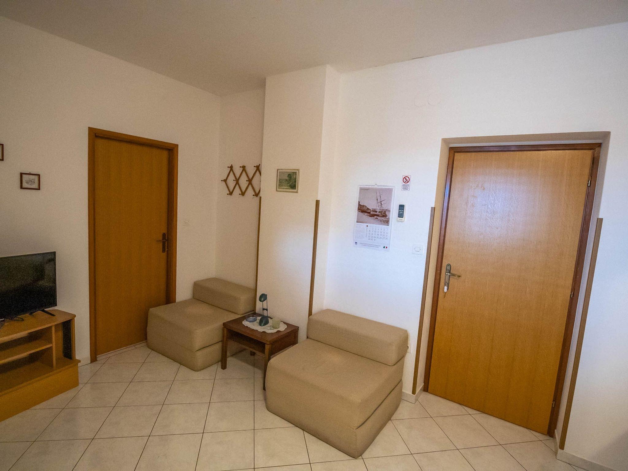 Studio bietet Platz für 3 Gäste. Die Betten sind in Schlafzimmern, die es 1 gibt, innerhalb einer Gesamtfläche von 38m2, angeordnet. Die Gäste haben eine eigene Terrasse zur Verfügung, auf der sie in warmen Sommernächten genießen können. Das Studio-Apartment bietet Meerblick. Es ist erlaubt, Speisen auf dem Gemeinschafts-Grill vorzubereiten. In der Unterkunftseinheit besteht die Möglichkeit des Mitbringens von Haustieren gegen Aufpreis. IM PREIS INBEGRIFFEN: Kurtaxe, Endreinigung, Klimatisierung, Parkplatz, Internet, Föhn. VERBINDLICHE ZUSÄTZLICHE KOSTEN: Aufzahlung für Kurzaufenthalte (prozentualer Zuschlag pro Nächtigungsanzahl: 30% - 1, 20% - 2, 10% - 3). UNVERBINDLICHE ZUSÄTZLICHE KOSTEN: Haustiere (10,00 € pro Nacht). Die Verfügbarkeit zusätzlicher Dienstleistungen in Ihrem reservierten Termin und die Preise derselben (falls nicht aufgeführt) müssen im Voraus überprüft werden. Zusätzliche Dienstleistungen die in der Zahlungsaufforderung nicht aufgeführt sind werden direkt beim Vermieter bezahlt, angenommen der Gast nutzt auch diese.
