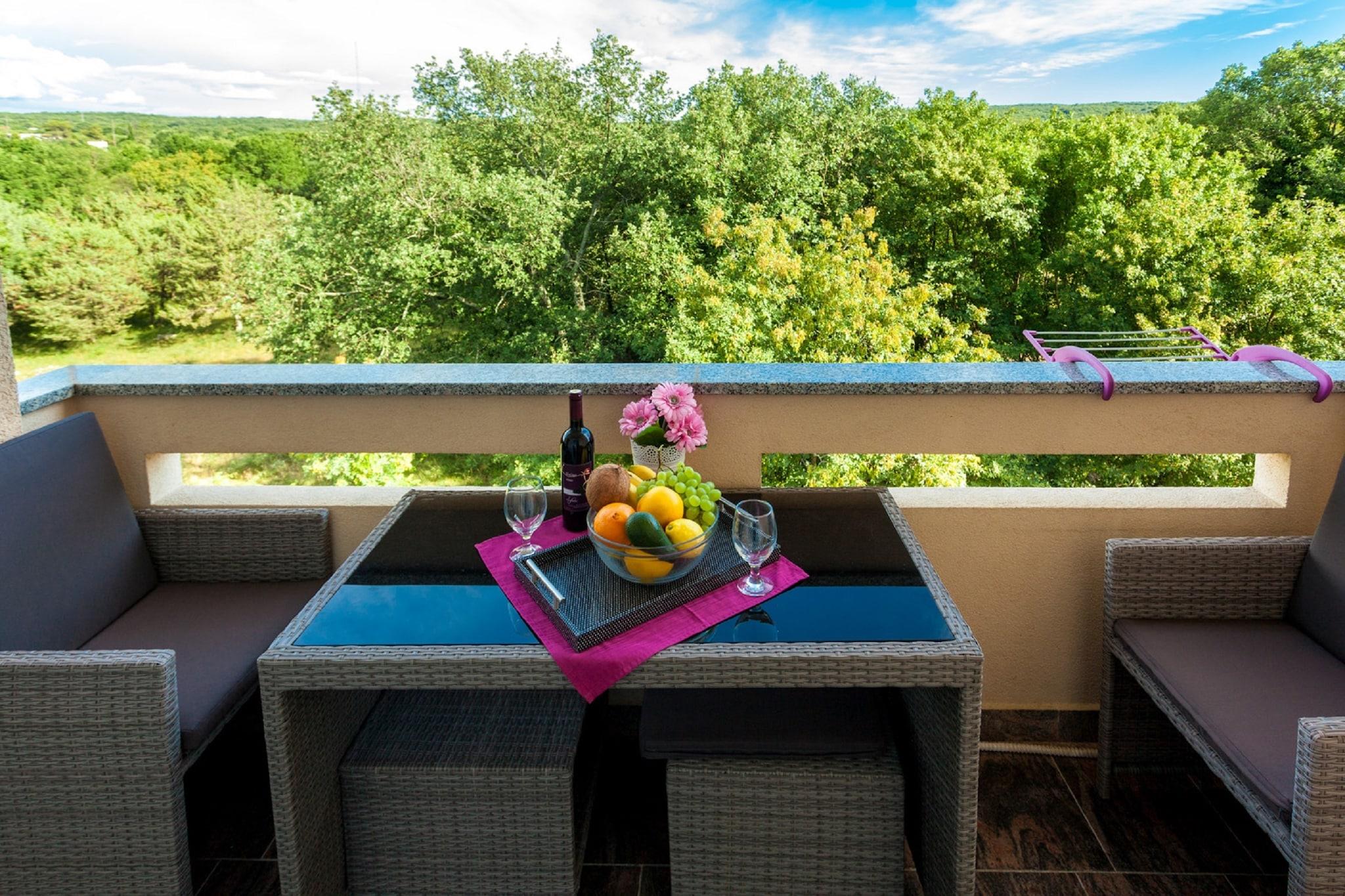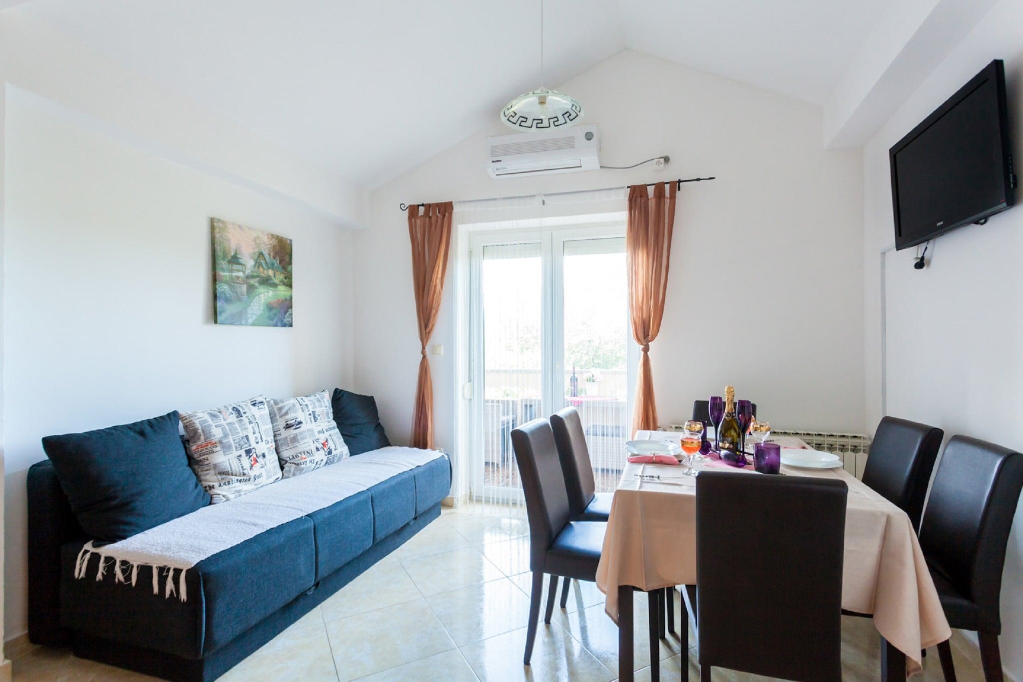 Denne rummelige lejlighed ligger i en smuk skov-oase i Malinska på øen Krk. Indkvartering er moderne møbleret. Det har stor balkon hvor du kan nyde i en fantastisk solopgang. Huset ligger 2 km fra bymidten, 1,5 km fra havet, 500 m fra butikker og restauranter. Krk er en meget speciel ø, det er en egen verden, unik på grund af sin ro og ren luft og let at komme til via Krk-broen, som forbinder øen med fastlandet. Krk har også sin egen lufthavn, ca. 30 km fra Rijeka. Cyklister og vandrere vil nyde netværket af markerede stier, der fører direkte til havet. Krk er kendt som en "gastronomisk paradis". På dit feriehus kan du smage to af de lokale produkter: syltetøj fremstillet af figner fra gården samt ekstra jomfruoliven fremstillet af de lokale olivendyrkere.
