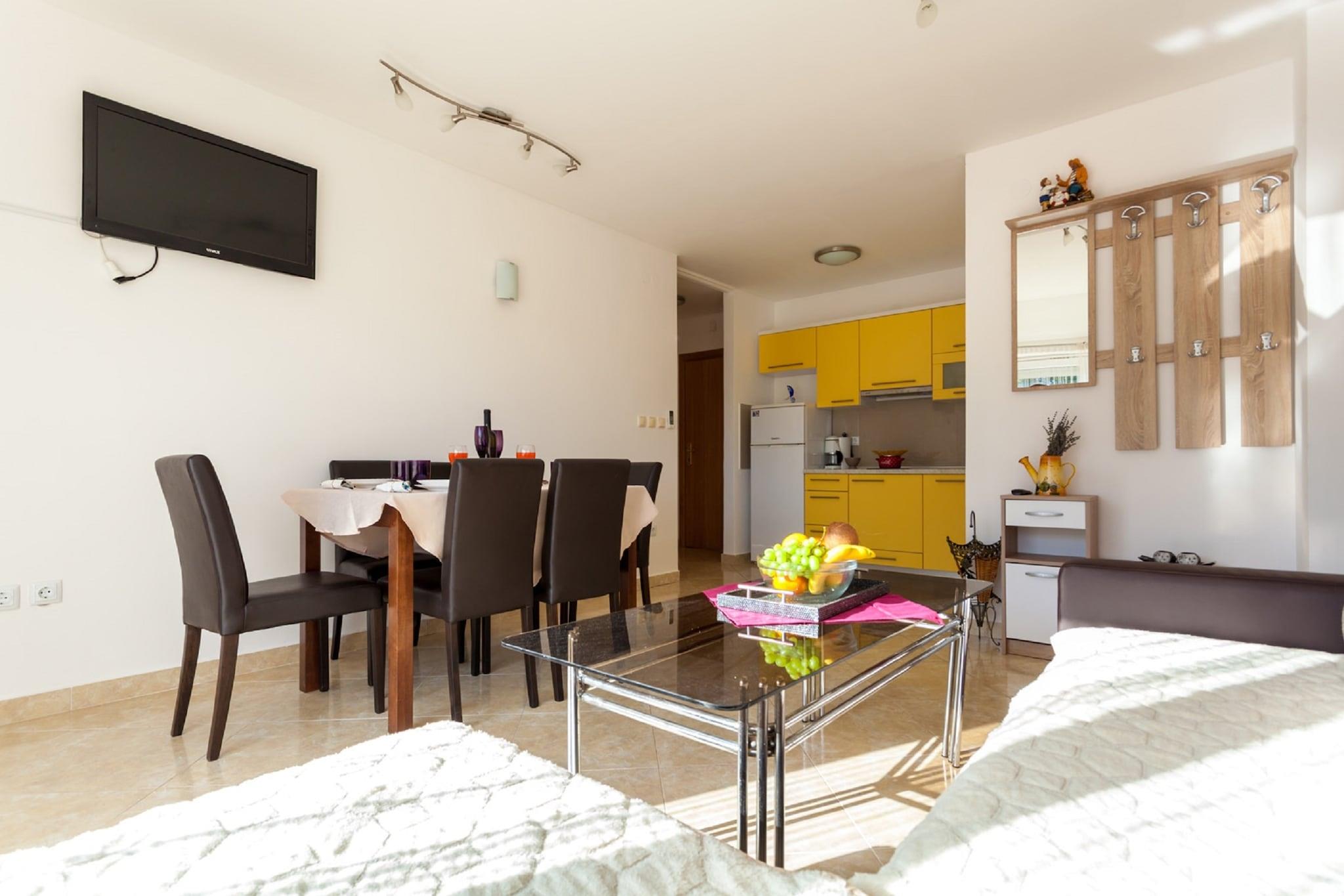 Denne komfortable lejlighed ligger i en smuk skov-oase i Malinska på øen Krk. Indkvartering er moderne møbleret. Det har stor terrasse hvor du kan nyde i en fantastisk solopgang. Huset ligger 2 km fra bymidten, 1,5 km fra havet, 500 m fra butikker og restauranter. Krk er en meget speciel ø, det er en egen verden, unik på grund af sin ro og ren luft og let at komme til via Krk-broen, som forbinder øen med fastlandet. Krk har også sin egen lufthavn, ca. 30 km fra Rijeka. Cyklister og vandrere vil nyde netværket af markerede stier, der fører direkte til havet. Krk er kendt som en "gastronomisk paradis". På dit feriehus kan du smage to af de lokale produkter: syltetøj fremstillet af figner fra gården samt ekstra jomfruoliven fremstillet af de lokale olivendyrkere.