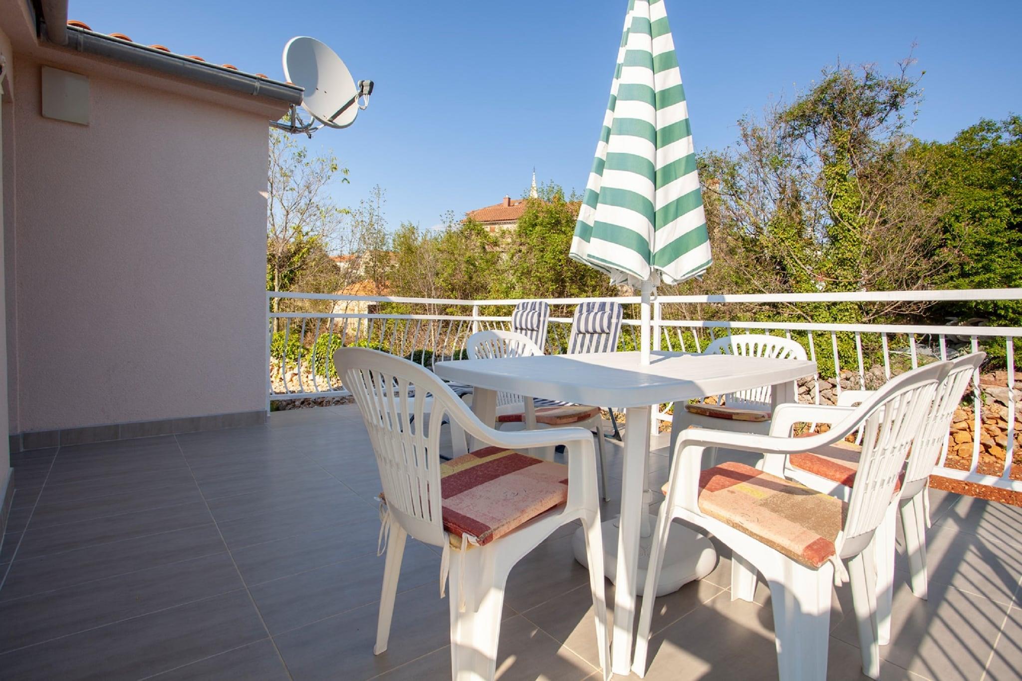 Denne dejlige huslejlighed med overdækket terrasse ligger i Malinska på øen Krk. Din indkvartering tilbyder komfort, herunder rummelig soveværelse og badeværelse, køkken, opholdsstue og aircondition. Der er gratis parkeringsplads og grill til brug. Krk er en meget speciel ø, den er en unik egenskab på grund af sin ro og ren luft og er let at komme til via Krk-broen, som forbinder øen med fastlandet. Krk har også sin egen lufthavn, ca. 30 km fra Rijeka. Cyklister og vandrere vil nyde netværket af mærkede stier, der fører direkte til havet. Krk er kendt som et "gastronomisk paradis".