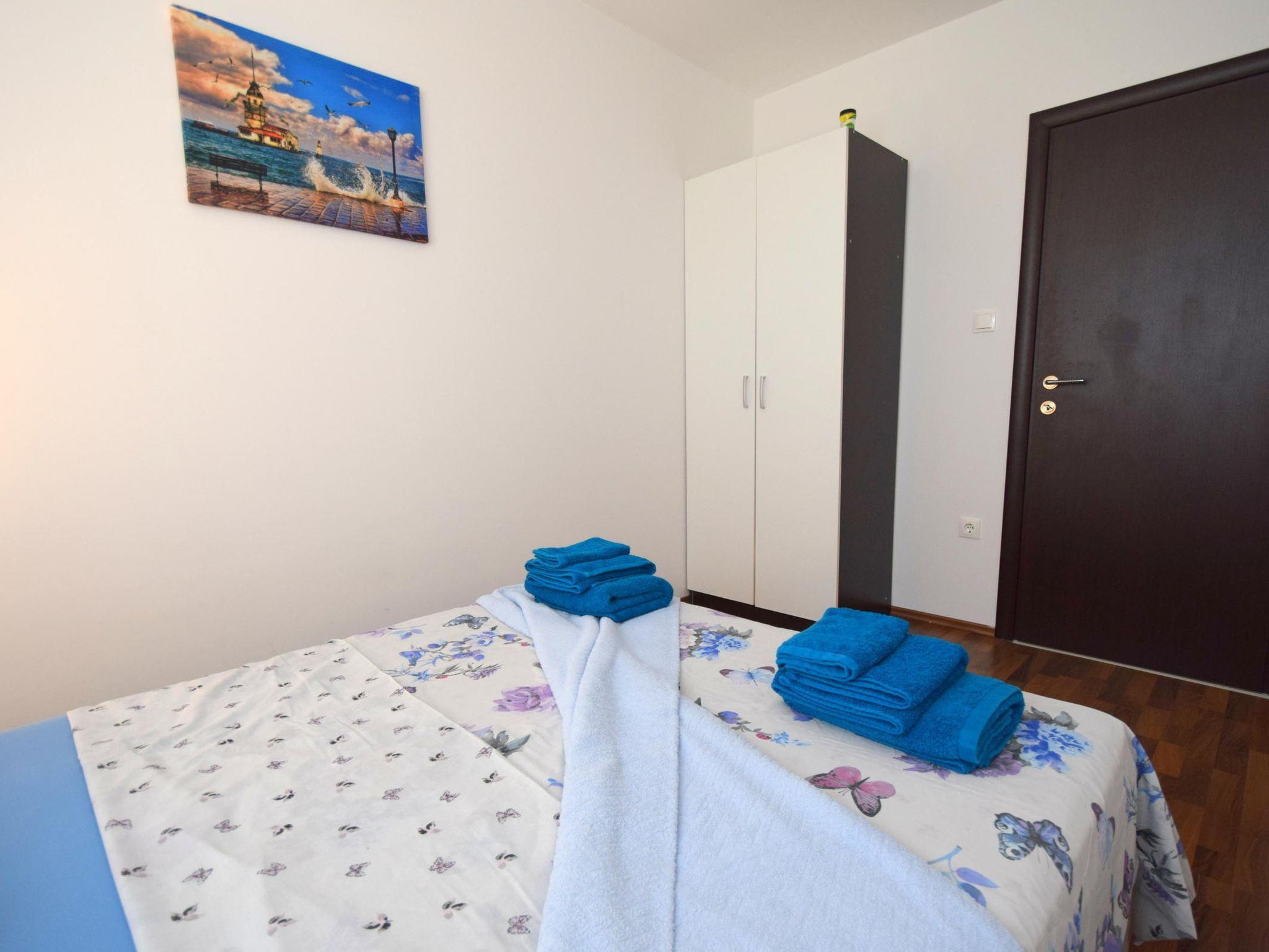 Ferienwohnung bietet Platz für 4 Gäste. Die Betten sind in Schlafzimmern, die es 2 gibt, innerhalb einer Gesamtfläche von 67m2, angeordnet. Die Gäste haben eine eigene Terrasse zur Verfügung, auf der sie in warmen Sommernächten genießen können. IM PREIS INBEGRIFFEN: Kurtaxe, Endreinigung, Klimatisierung, Parkplatz, Internet, Föhn. VERBINDLICHE ZUSÄTZLICHE KOSTEN: Aufzahlung für Kurzaufenthalte (prozentualer Zuschlag pro Nächtigungsanzahl: 30% - 1, 20% - 2, 10% - 3). Die Verfügbarkeit zusätzlicher Dienstleistungen in Ihrem reservierten Termin und die Preise derselben (falls nicht aufgeführt) müssen im Voraus überprüft werden. Zusätzliche Dienstleistungen die in der Zahlungsaufforderung nicht aufgeführt sind werden direkt beim Vermieter bezahlt, angenommen der Gast nutzt auch diese.