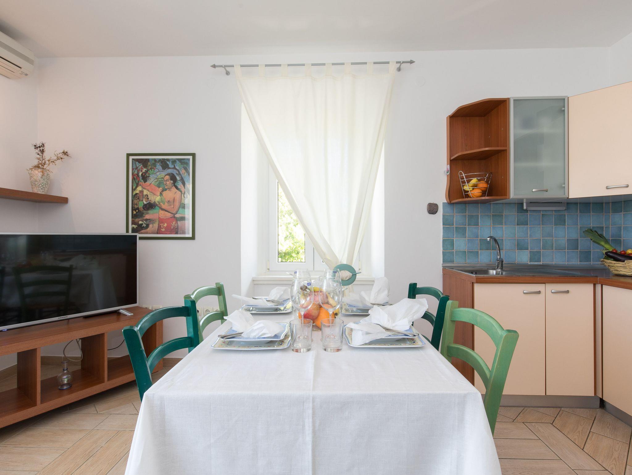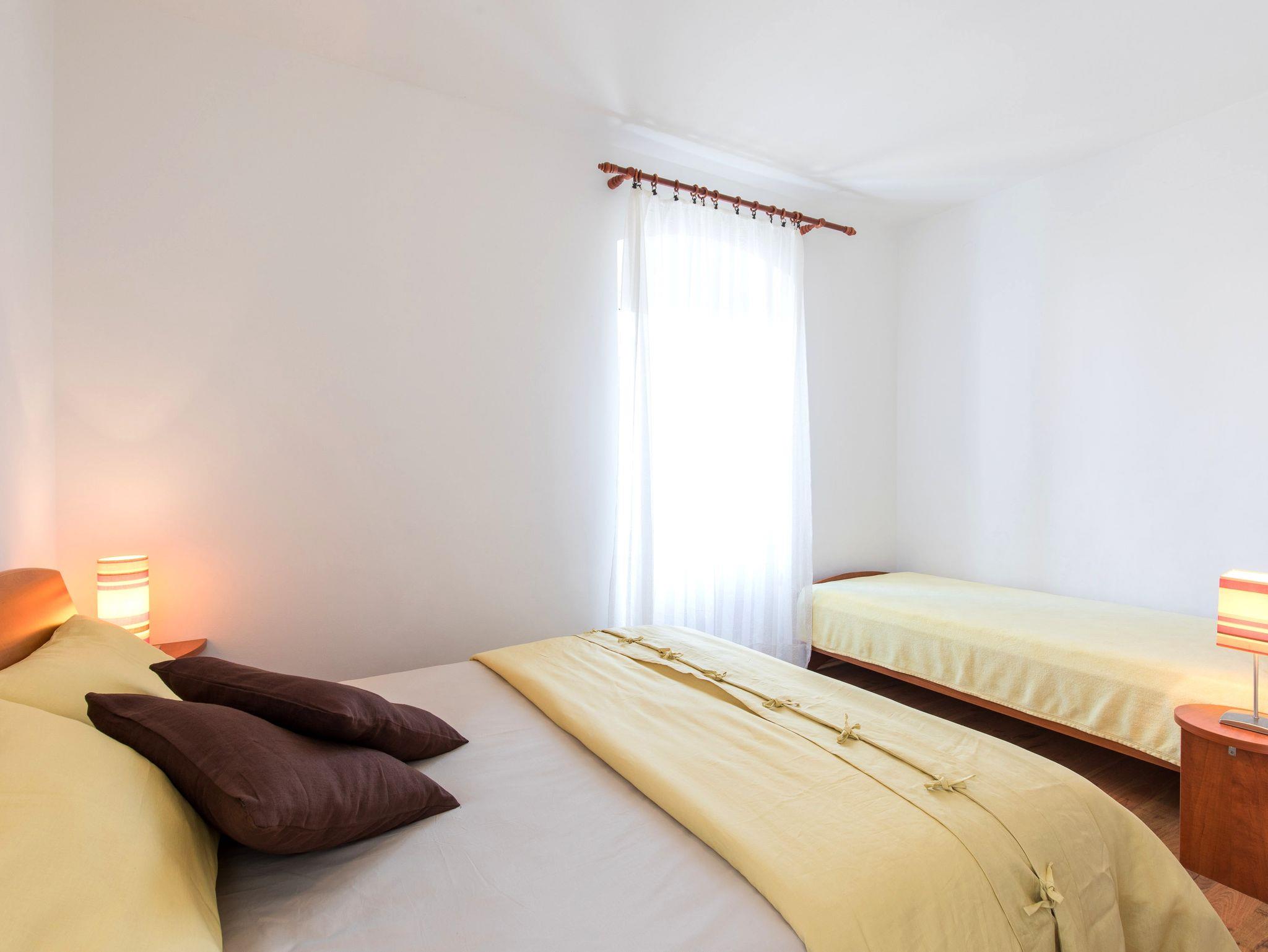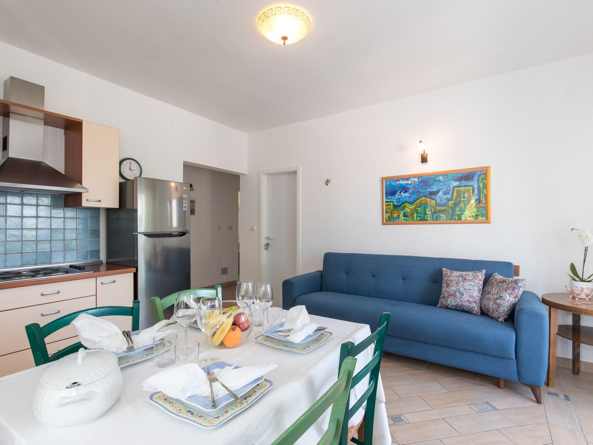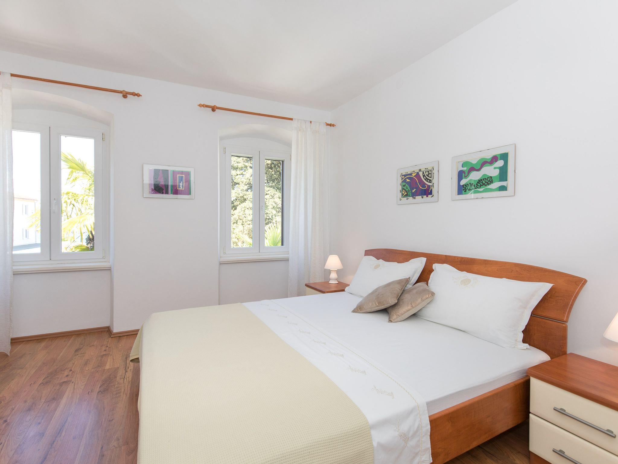 Ferienwohnung bietet Platz für 4 Gäste. Die Betten sind in Schlafzimmern, die es 2 gibt, innerhalb einer Gesamtfläche von 70m2, angeordnet. Die Gäste haben einen eigenen Balkon zur Verfügung, auf der sie in warmen Sommernächten genießen können. Das Apartment bietet Meerblick. In der Unterkunftseinheit besteht die Möglichkeit des Mitbringens von Haustieren gegen Aufpreis. IM PREIS INBEGRIFFEN: Kurtaxe, Endreinigung, Klimatisierung, Parkplatz, Internet. VERBINDLICHE ZUSÄTZLICHE KOSTEN: Aufzahlung für Kurzaufenthalte (prozentualer Zuschlag pro Nächtigungsanzahl: 30% - 1, 20% - 2, 10% - 3). UNVERBINDLICHE ZUSÄTZLICHE KOSTEN: Haustiere (10,00 € pro Nacht). Die Verfügbarkeit zusätzlicher Dienstleistungen in Ihrem reservierten Termin und die Preise derselben (falls nicht aufgeführt) müssen im Voraus überprüft werden. Zusätzliche Dienstleistungen die in der Zahlungsaufforderung nicht aufgeführt sind werden direkt beim Vermieter bezahlt, angenommen der Gast nutzt auch diese.