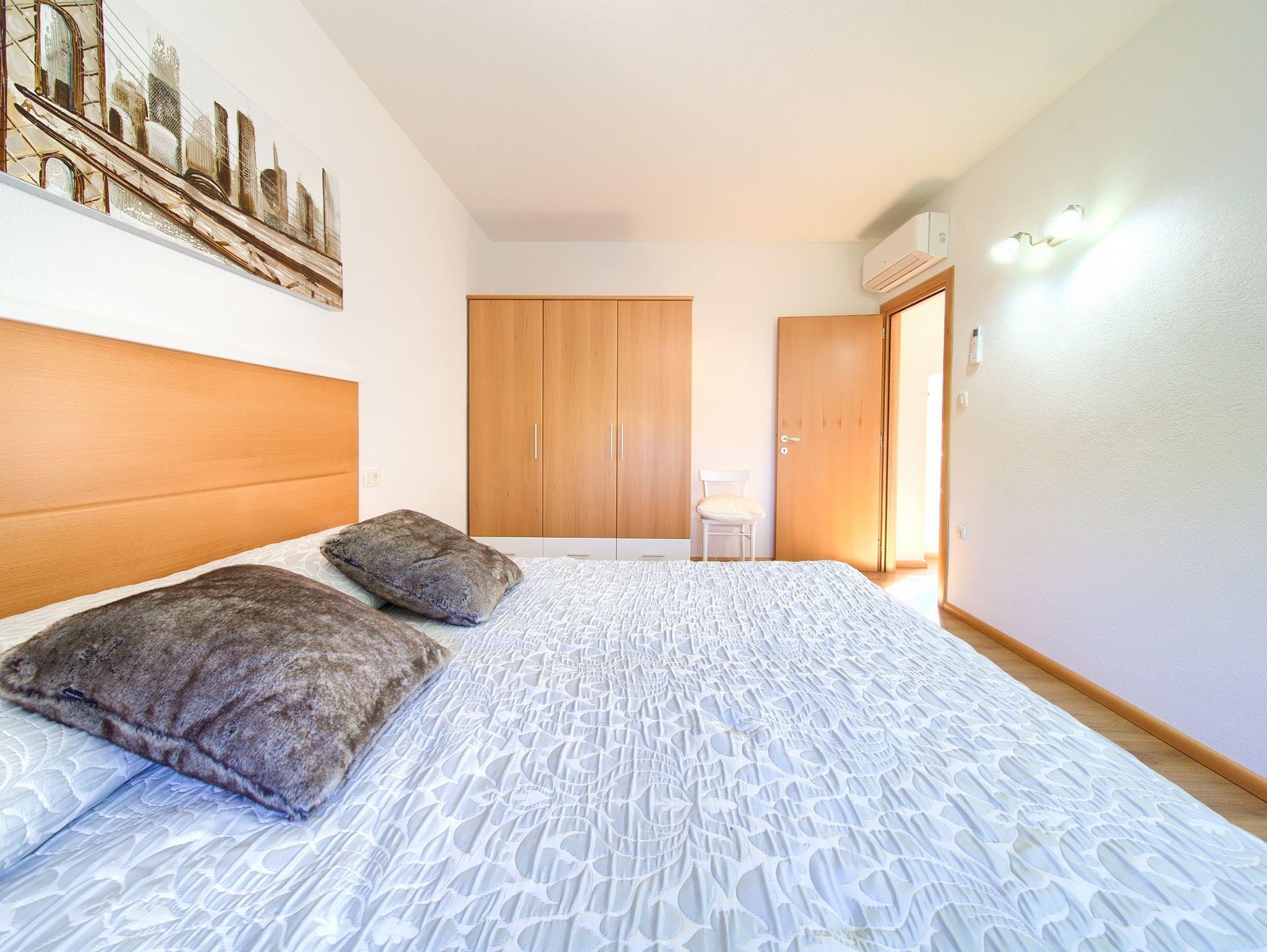Haus bietet Platz für 5 Gäste. Die Betten sind in Schlafzimmern, die es 2 gibt, und in Wohnzimmer, innerhalb einer Gesamtfläche von 81m2, angeordnet. Die Gäste haben eine eigene Terrasse zur Verfügung, auf der sie in warmen Sommernächten genießen können. IM PREIS INBEGRIFFEN: Kurtaxe, Endreinigung, Klimatisierung, Parkplatz, Internet. VERBINDLICHE ZUSÄTZLICHE KOSTEN: Aufzahlung für Kurzaufenthalte (prozentualer Zuschlag pro Nächtigungsanzahl: 30% - 1, 20% - 2, 10% - 3). Die Verfügbarkeit zusätzlicher Dienstleistungen in Ihrem reservierten Termin und die Preise derselben (falls nicht aufgeführt) müssen im Voraus überprüft werden. Zusätzliche Dienstleistungen die in der Zahlungsaufforderung nicht aufgeführt sind werden direkt beim Vermieter bezahlt, angenommen der Gast nutzt auch diese.