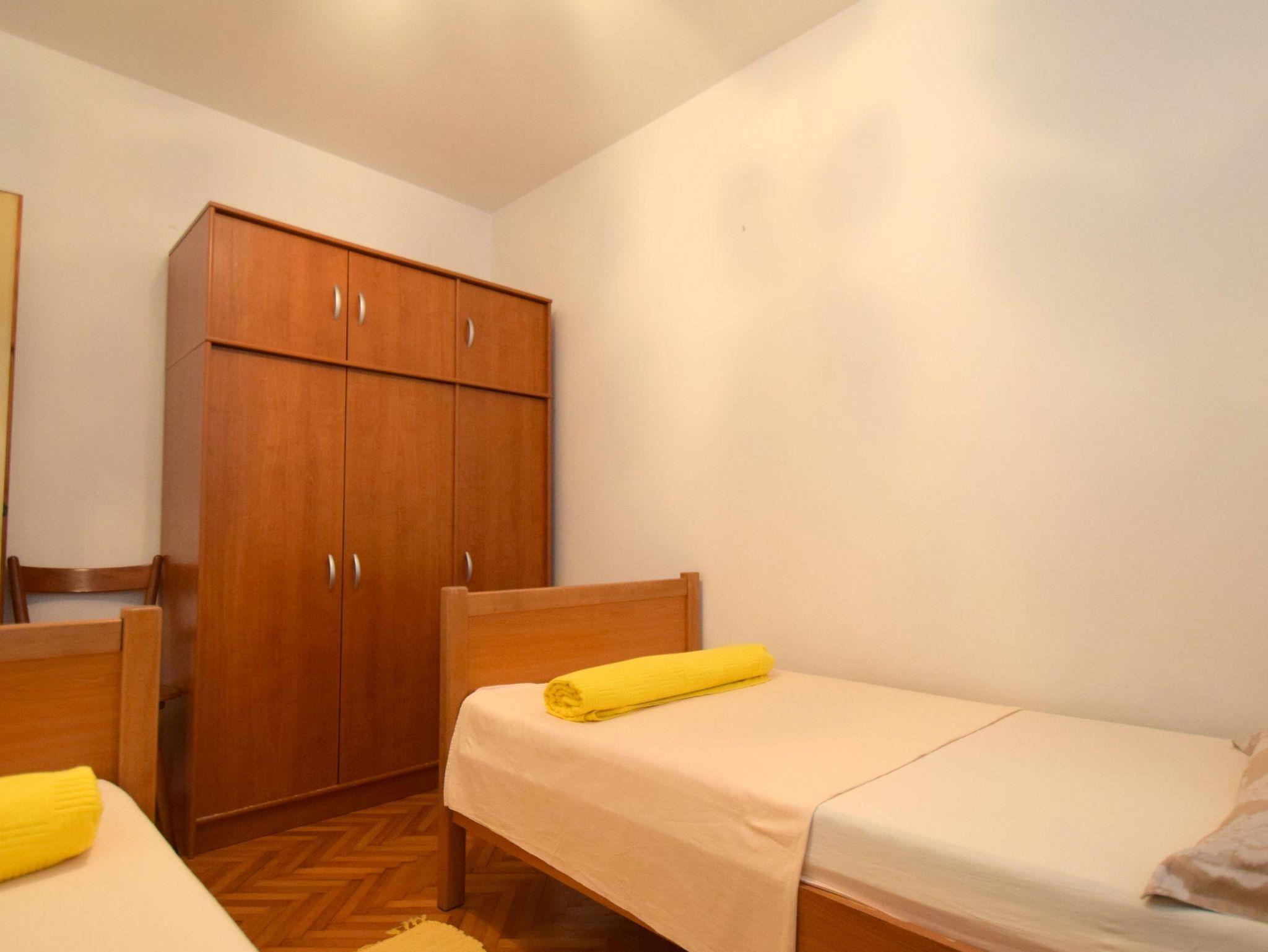 Ferienwohnung bietet Platz für 4 Gäste. Die Betten sind in Schlafzimmern, die es 2 gibt, innerhalb einer Gesamtfläche von 60m2, angeordnet. Die Gäste haben eine eigene Terrasse zur Verfügung, auf der sie in warmen Sommernächten genießen können. Es ist erlaubt, Speisen auf dem Gemeinschafts-Grill vorzubereiten. IM PREIS INBEGRIFFEN: Kurtaxe, Endreinigung, Klimatisierung, Parkplatz, Internet. VERBINDLICHE ZUSÄTZLICHE KOSTEN: Aufzahlung für Kurzaufenthalte (prozentualer Zuschlag pro Nächtigungsanzahl: 30% - 1, 20% - 2, 10% - 3). Die Verfügbarkeit zusätzlicher Dienstleistungen in Ihrem reservierten Termin und die Preise derselben (falls nicht aufgeführt) müssen im Voraus überprüft werden. Zusätzliche Dienstleistungen die in der Zahlungsaufforderung nicht aufgeführt sind werden direkt beim Vermieter bezahlt, angenommen der Gast nutzt auch diese.