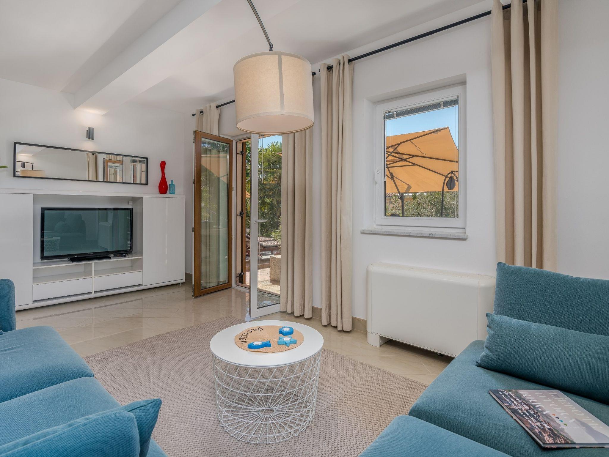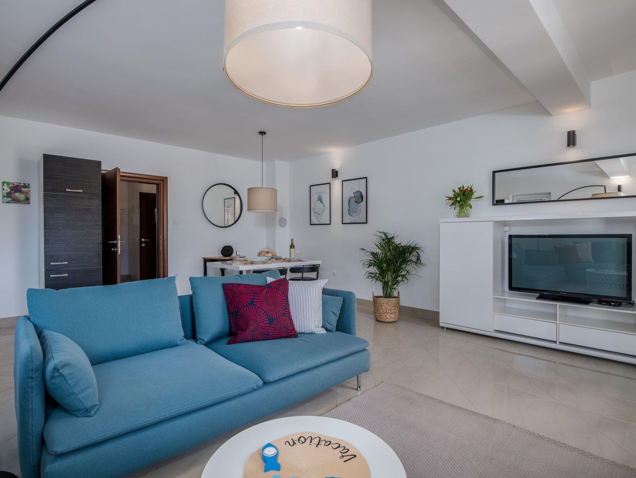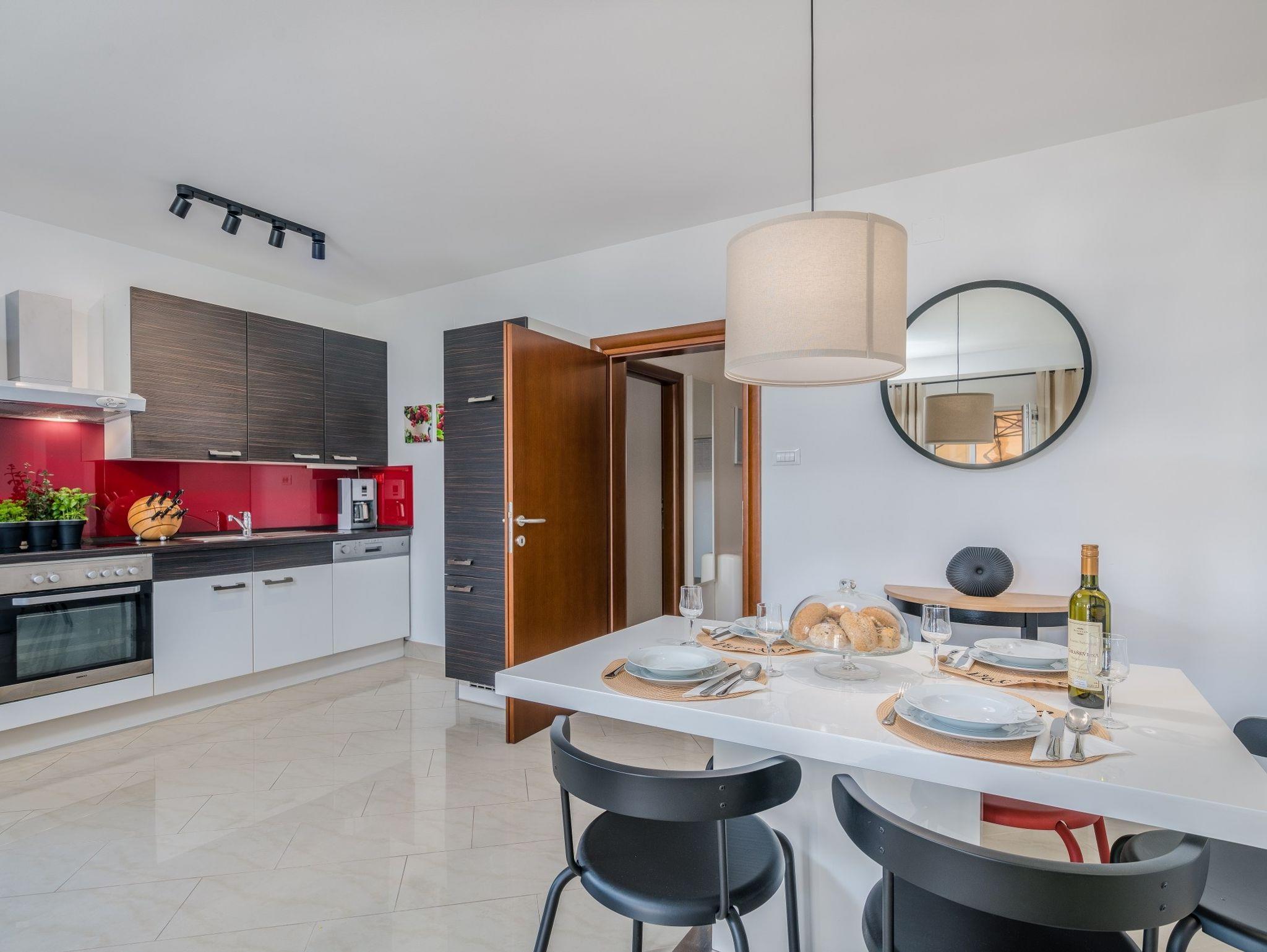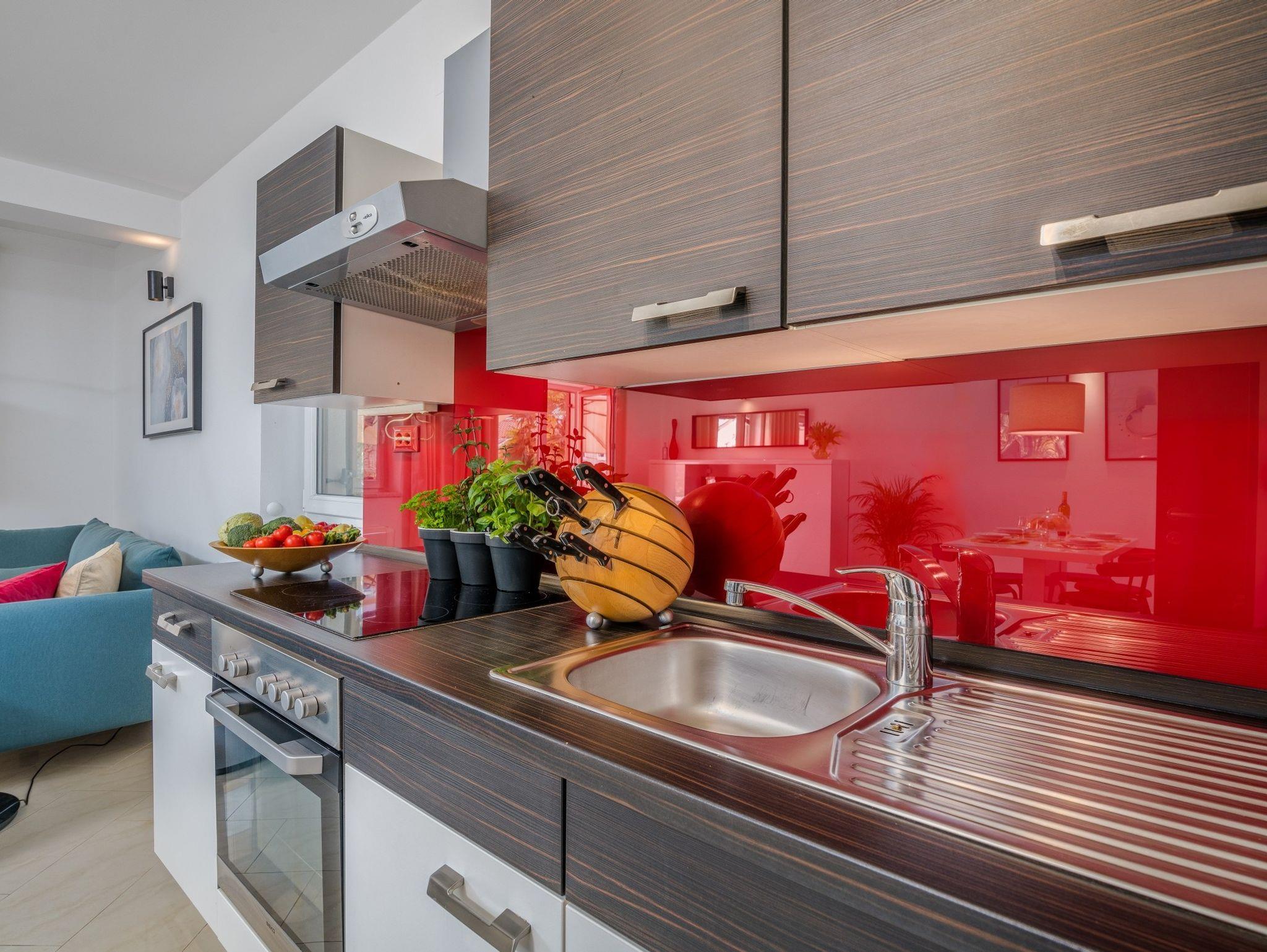 Ferienwohnung bietet Platz für 4 Gäste. Die Betten sind in Schlafzimmern, die es 2 gibt, innerhalb einer Gesamtfläche von 75m2, angeordnet. Die Gäste haben eine eigene Terrasse zur Verfügung, auf der sie in warmen Sommernächten genießen können. Das Apartment bietet Meerblick. Es ist erlaubt, Speisen auf dem Gemeinschafts-Grill vorzubereiten. In der gebuchten Unterkunftseinheit zahlt man am Ort ein Depositum ( der Preis ist an der Internetseite angeführt ). IM PREIS INBEGRIFFEN: Kurtaxe, Endreinigung, Klimatisierung, Zentralheizung, Parkplatz, Internet, Bügeleisen, Bügelbrett, Föhn. VERBINDLICHE ZUSÄTZLICHE KOSTEN: Kaution (200,00 € Einmalzahlung), Aufzahlung für Kurzaufenthalte (prozentualer Zuschlag pro Nächtigungsanzahl: 30% - 1, 20% - 2, 10% - 3). Die Verfügbarkeit zusätzlicher Dienstleistungen in Ihrem reservierten Termin und die Preise derselben (falls nicht aufgeführt) müssen im Voraus überprüft werden. Zusätzliche Dienstleistungen die in der Zahlungsaufforderung nicht aufgeführt sind werden direkt beim Vermieter bezahlt, angenommen der Gast nutzt auch diese.