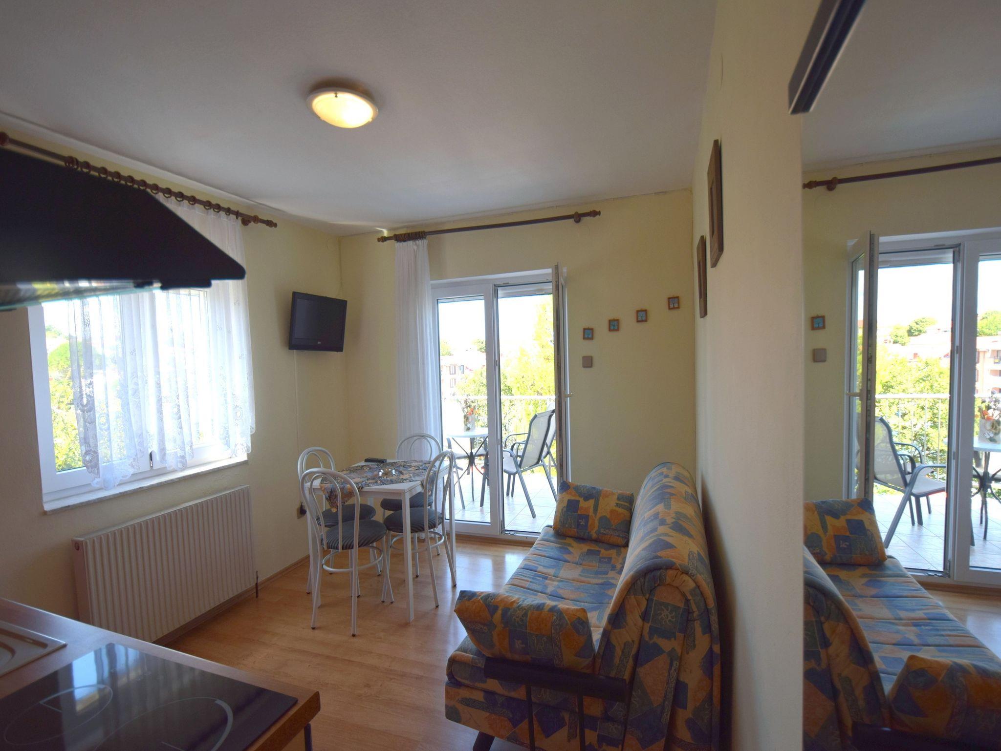 Ferienwohnung bietet Platz für 3 Gäste. Die Betten sind in Schlafzimmern, die es 1 gibt, und in Wohnzimmer, innerhalb einer Gesamtfläche von 30m2, angeordnet. Die Gäste haben einen eigenen Balkon zur Verfügung, auf der sie in warmen Sommernächten genießen können. Das Apartment bietet Meerblick. IM PREIS INBEGRIFFEN: Kurtaxe, Endreinigung, Klimatisierung, Parkplatz, Internet. VERBINDLICHE ZUSÄTZLICHE KOSTEN: Aufzahlung für Kurzaufenthalte (prozentualer Zuschlag pro Nächtigungsanzahl: 30% - 1, 20% - 2, 10% - 3). Die Verfügbarkeit zusätzlicher Dienstleistungen in Ihrem reservierten Termin und die Preise derselben (falls nicht aufgeführt) müssen im Voraus überprüft werden. Zusätzliche Dienstleistungen die in der Zahlungsaufforderung nicht aufgeführt sind werden direkt beim Vermieter bezahlt, angenommen der Gast nutzt auch diese.