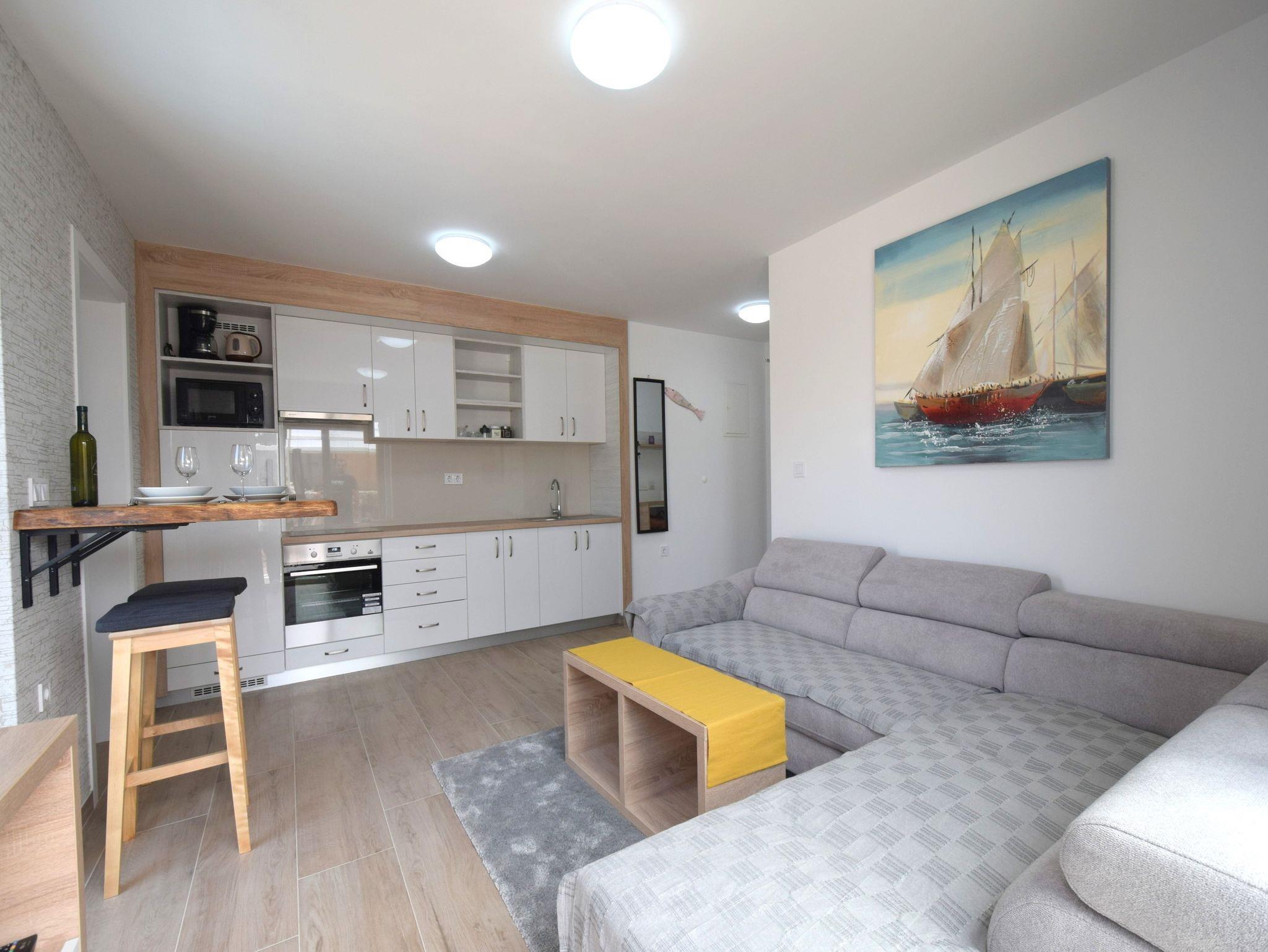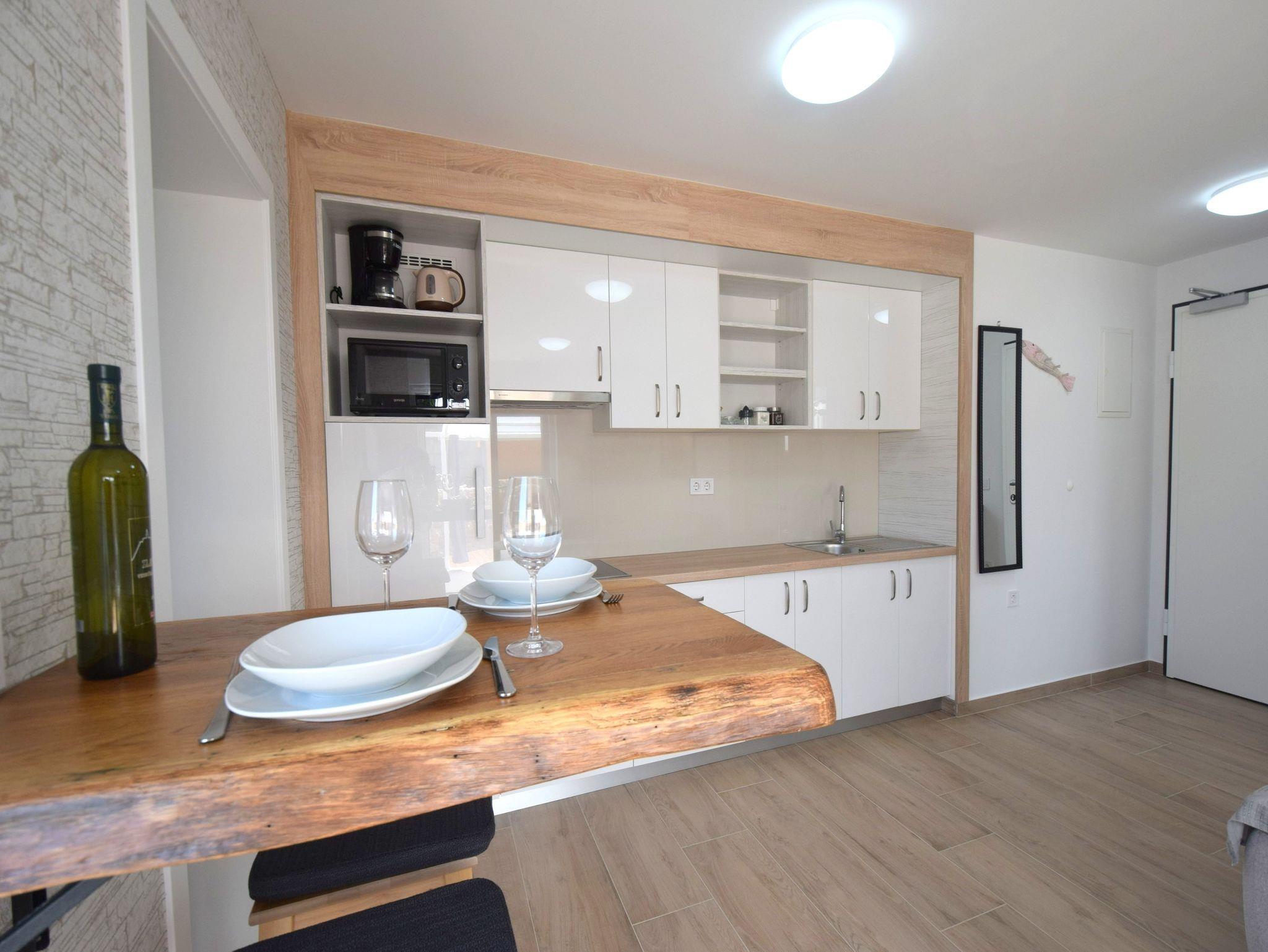 Ferienwohnung bietet Platz für 3 Gäste. Die Betten sind in Schlafzimmern, die es 1 gibt, und in Wohnzimmer, innerhalb einer Gesamtfläche von 35m2, angeordnet. Die Gäste haben eine eigene Terrasse zur Verfügung, auf der sie in warmen Sommernächten genießen können. Für vollen Genuss und Entspannung gibt es einen privaten Grill für Gäste dieser Unterkunft. IM PREIS INBEGRIFFEN: Kurtaxe, Endreinigung, Klimatisierung, Parkplatz, Internet, Bügeleisen, Bügelbrett, Föhn. VERBINDLICHE ZUSÄTZLICHE KOSTEN: Aufzahlung für Kurzaufenthalte (prozentualer Zuschlag pro Nächtigungsanzahl: 30% - 1, 20% - 2, 10% - 3). Die Verfügbarkeit zusätzlicher Dienstleistungen in Ihrem reservierten Termin und die Preise derselben (falls nicht aufgeführt) müssen im Voraus überprüft werden. Zusätzliche Dienstleistungen die in der Zahlungsaufforderung nicht aufgeführt sind werden direkt beim Vermieter bezahlt, angenommen der Gast nutzt auch diese.