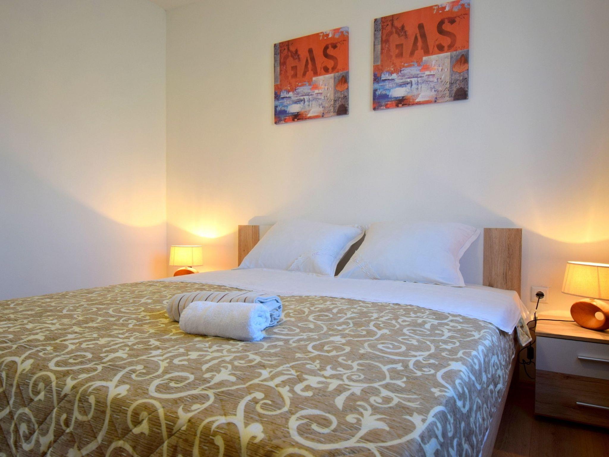 Ferienwohnung bietet Platz für 5 Gäste. Die Betten sind in Schlafzimmern, die es 2 gibt, und in Wohnzimmer, innerhalb einer Gesamtfläche von 70m2, angeordnet. Die Gäste haben einen eigenen Balkon zur Verfügung, auf der sie in warmen Sommernächten genießen können. Das Apartment bietet Meerblick. Es ist erlaubt, Speisen auf dem Gemeinschafts-Grill vorzubereiten. In der Unterkunftseinheit besteht die Möglichkeit des Mitbringens von Haustieren gegen Aufpreis. IM PREIS INBEGRIFFEN: Kurtaxe, Endreinigung, Klimatisierung, Parkplatz, Internet, Bügeleisen, Föhn. VERBINDLICHE ZUSÄTZLICHE KOSTEN: Aufzahlung für Kurzaufenthalte (prozentualer Zuschlag pro Nächtigungsanzahl: 30% - 1, 20% - 2, 10% - 3). UNVERBINDLICHE ZUSÄTZLICHE KOSTEN: Haustiere (15,00 € pro Nacht). Die Verfügbarkeit zusätzlicher Dienstleistungen in Ihrem reservierten Termin und die Preise derselben (falls nicht aufgeführt) müssen im Voraus überprüft werden. Zusätzliche Dienstleistungen die in der Zahlungsaufforderung nicht aufgeführt sind werden direkt beim Vermieter bezahlt, angenommen der Gast nutzt auch diese.