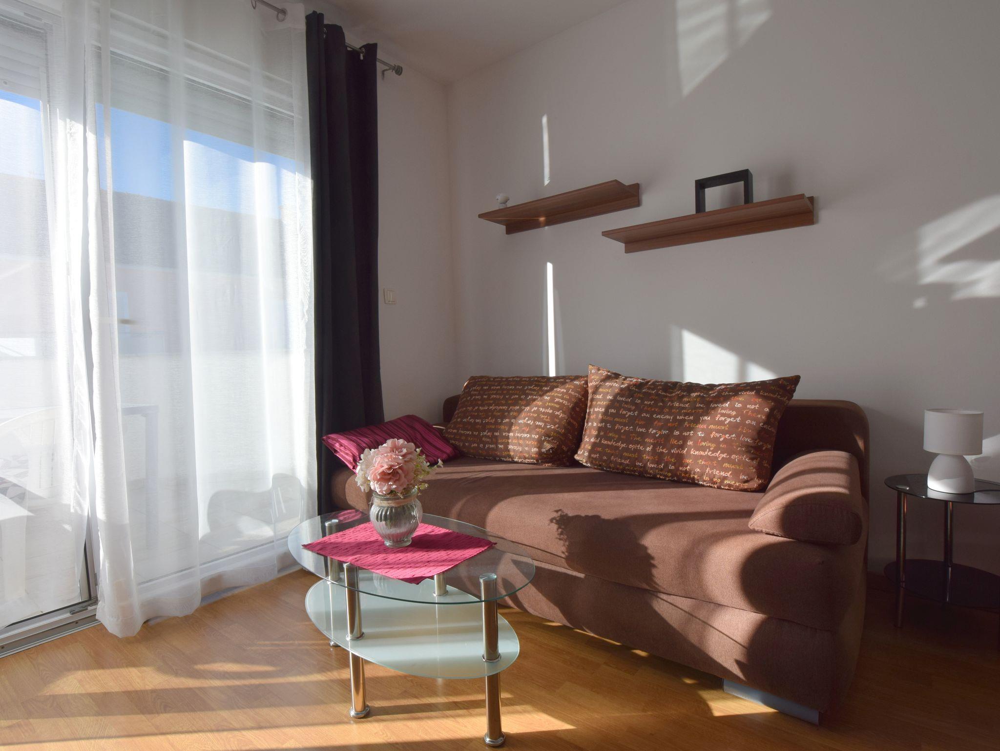 Ferienwohnung bietet Platz für 4 Gäste. Die Betten sind in Schlafzimmern, die es 2 gibt, innerhalb einer Gesamtfläche von 61m2, angeordnet. Die Gäste haben einen eigenen Balkon zur Verfügung, auf der sie in warmen Sommernächten genießen können. IM PREIS INBEGRIFFEN: Kurtaxe, Endreinigung, Klimatisierung, Parkplatz, Internet. VERBINDLICHE ZUSÄTZLICHE KOSTEN: Aufzahlung für Kurzaufenthalte (prozentualer Zuschlag pro Nächtigungsanzahl: 30% - 1, 20% - 2, 10% - 3). Die Verfügbarkeit zusätzlicher Dienstleistungen in Ihrem reservierten Termin und die Preise derselben (falls nicht aufgeführt) müssen im Voraus überprüft werden. Zusätzliche Dienstleistungen die in der Zahlungsaufforderung nicht aufgeführt sind werden direkt beim Vermieter bezahlt, angenommen der Gast nutzt auch diese.