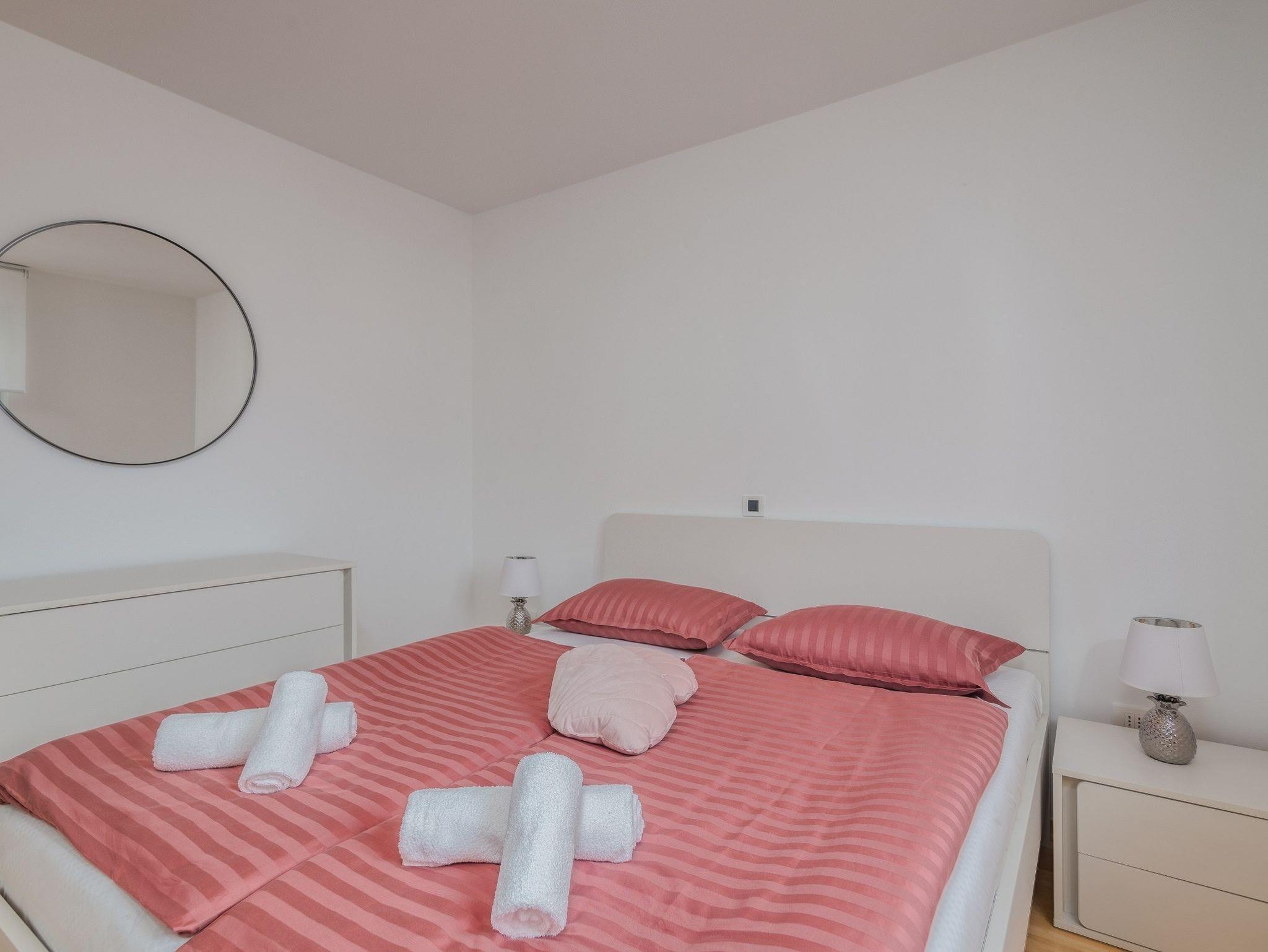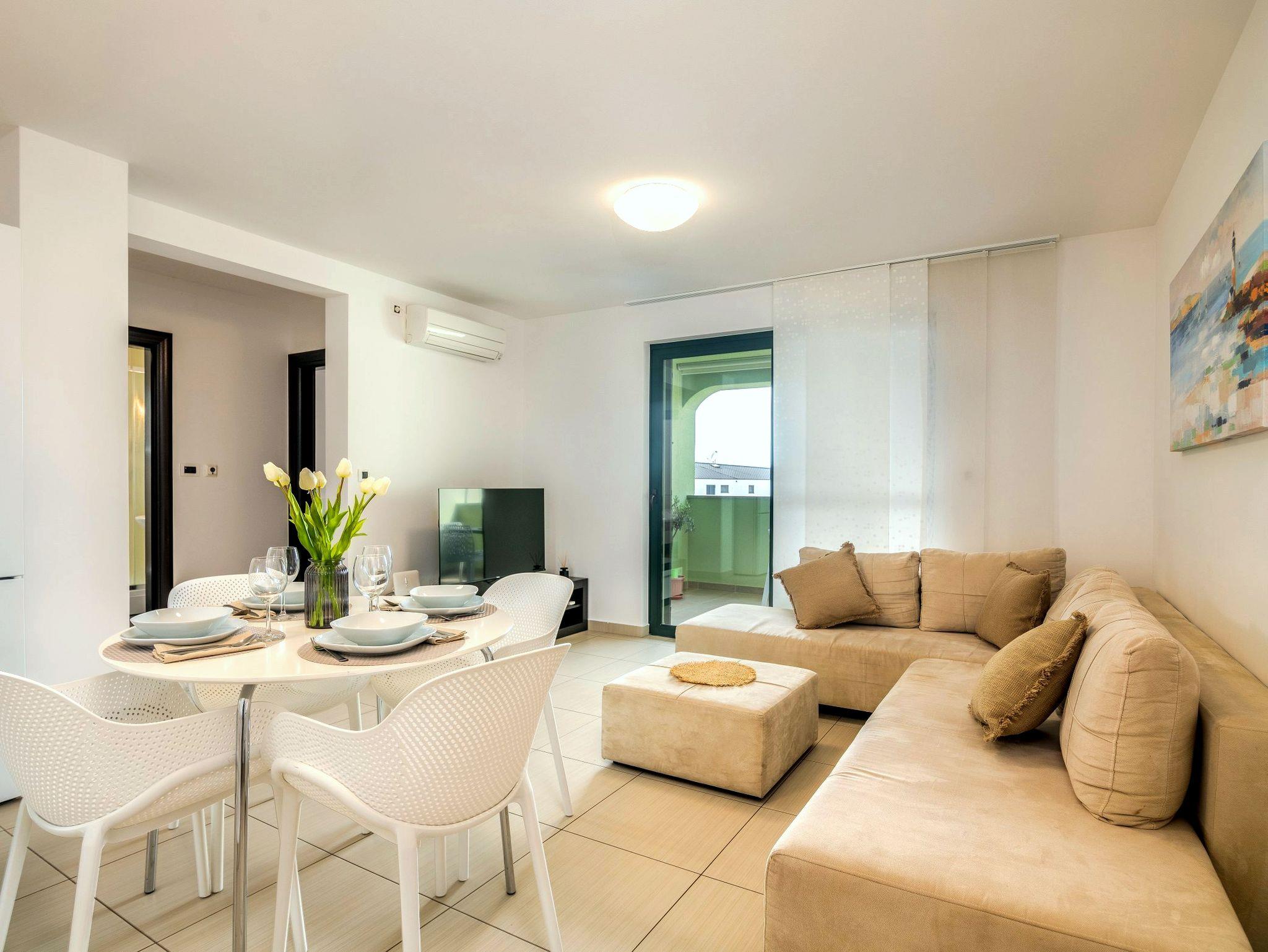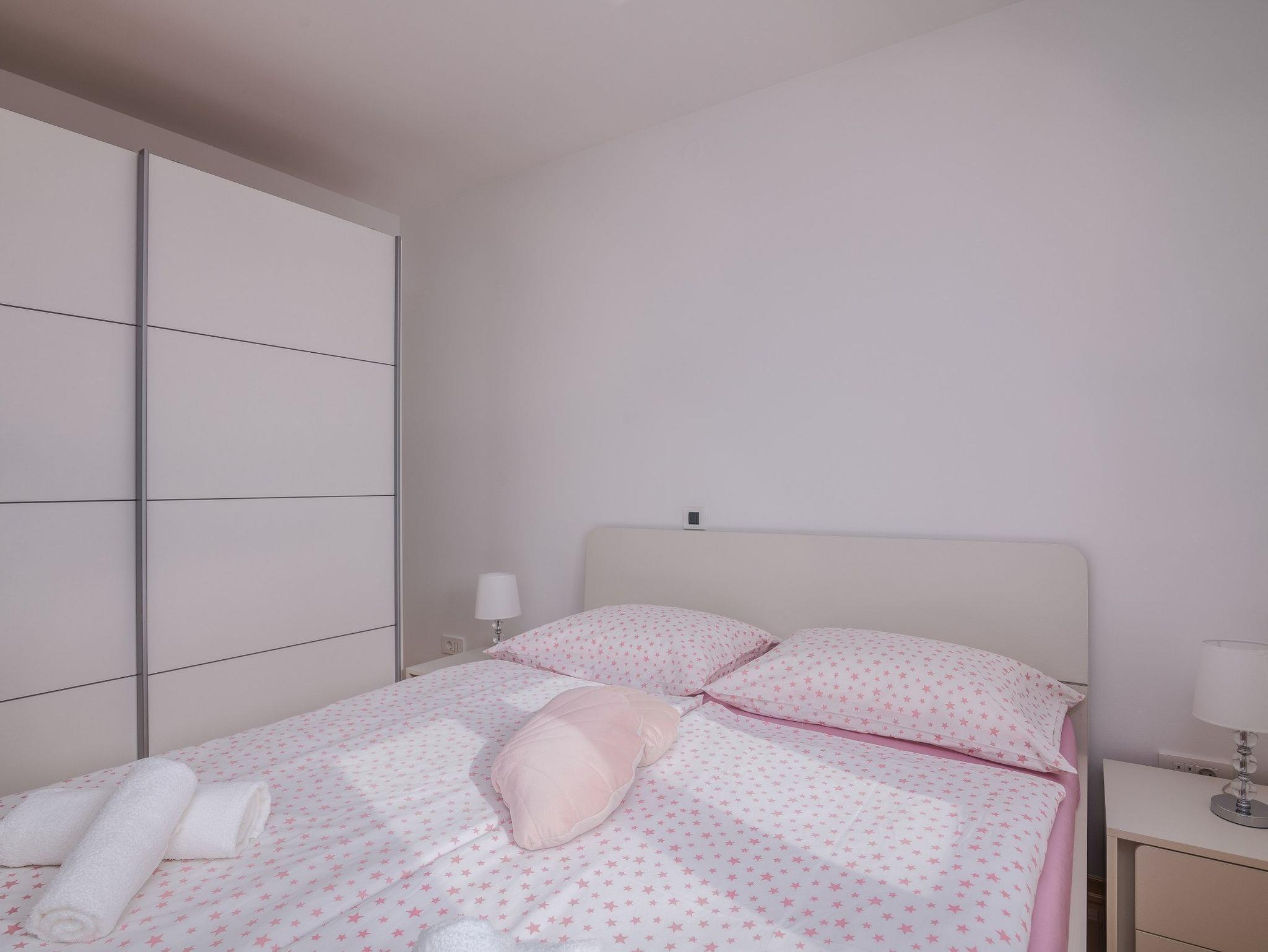Ferienwohnung bietet Platz für 4 Gäste. Die Betten sind in Schlafzimmern, die es 2 gibt, innerhalb einer Gesamtfläche von 54m2, angeordnet. Die Gäste haben einen eigenen Balkon zur Verfügung, auf der sie in warmen Sommernächten genießen können. Das Apartment bietet Meerblick. IM PREIS INBEGRIFFEN: Kurtaxe, Endreinigung, Klimatisierung, Parkplatz, Internet, Bügeleisen, Bügelbrett, Föhn. Die Verfügbarkeit zusätzlicher Dienstleistungen in Ihrem reservierten Termin und die Preise derselben (falls nicht aufgeführt) müssen im Voraus überprüft werden. Zusätzliche Dienstleistungen die in der Zahlungsaufforderung nicht aufgeführt sind werden direkt beim Vermieter bezahlt, angenommen der Gast nutzt auch diese.