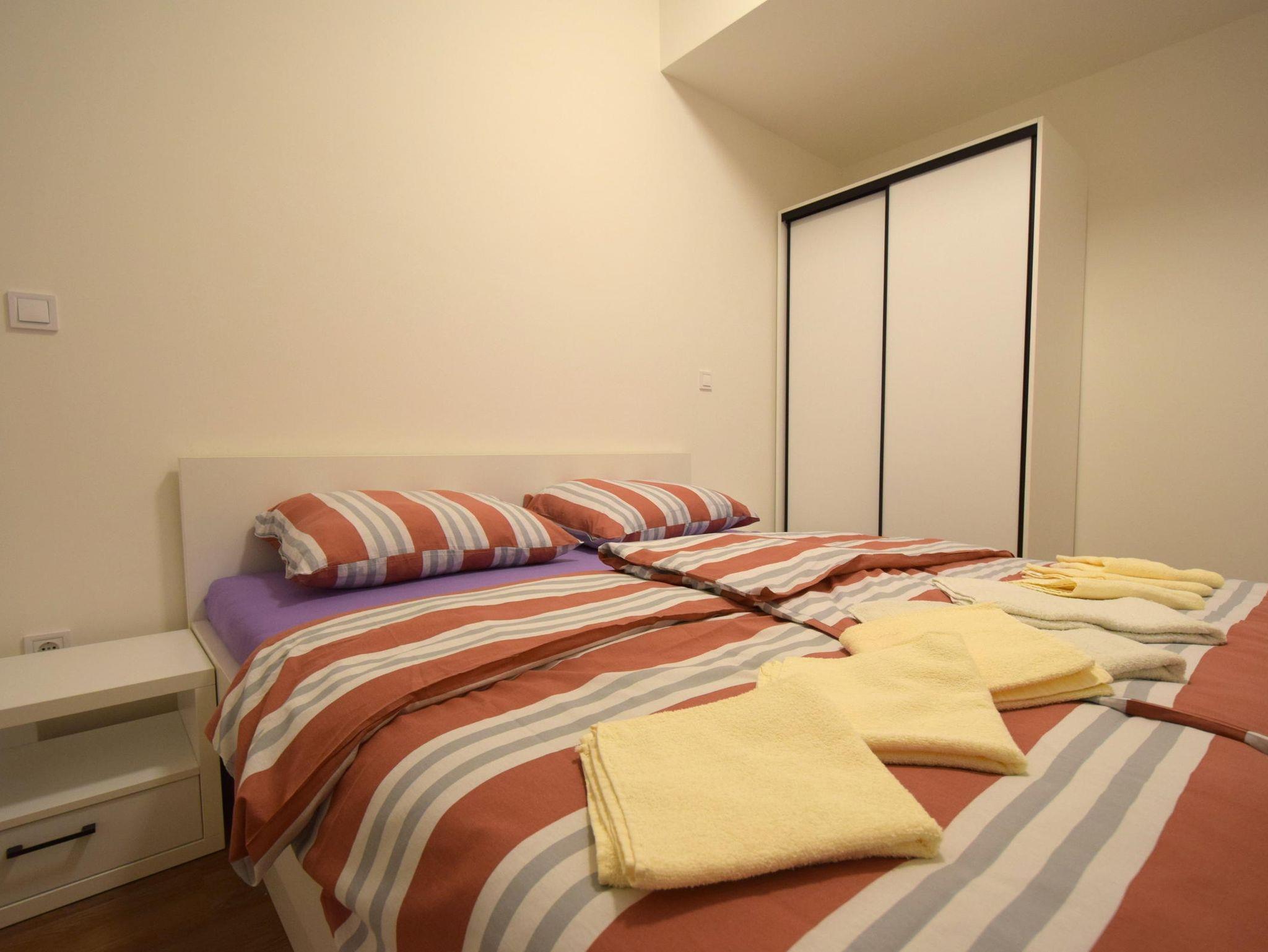 Ferienwohnung bietet Platz für 6 Gäste. Die Betten sind in Schlafzimmern, die es 3 gibt, und in Wohnzimmer, innerhalb einer Gesamtfläche von 71m2, angeordnet. Die Gäste haben eine eigene Terrasse zur Verfügung, auf der sie in warmen Sommernächten genießen können. IM PREIS INBEGRIFFEN: Kurtaxe, Endreinigung, Klimatisierung, Parkplatz, Internet. VERBINDLICHE ZUSÄTZLICHE KOSTEN: Aufzahlung für Kurzaufenthalte (prozentualer Zuschlag pro Nächtigungsanzahl: 30% - 1, 20% - 2, 10% - 3). Die Verfügbarkeit zusätzlicher Dienstleistungen in Ihrem reservierten Termin und die Preise derselben (falls nicht aufgeführt) müssen im Voraus überprüft werden. Zusätzliche Dienstleistungen die in der Zahlungsaufforderung nicht aufgeführt sind werden direkt beim Vermieter bezahlt, angenommen der Gast nutzt auch diese.