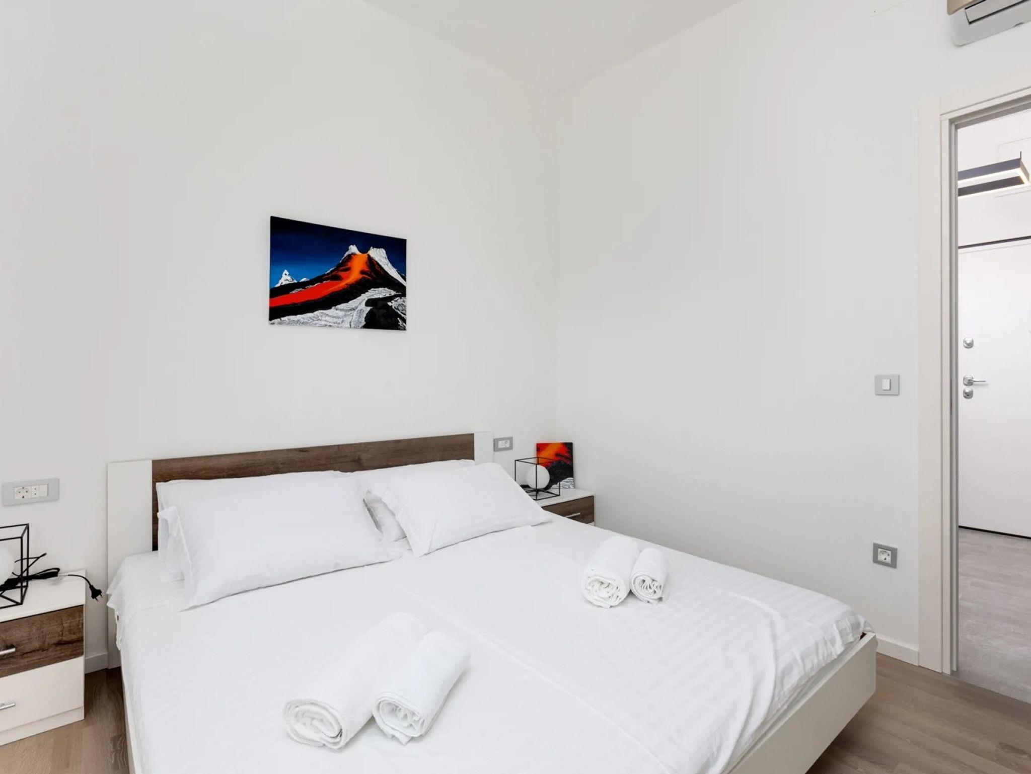 Ferienwohnung bietet Platz für 4 Gäste. Die Betten sind in Schlafzimmern, die es 2 gibt, innerhalb einer Gesamtfläche von 63m2, angeordnet. Die Gäste haben eine eigene Terrasse zur Verfügung, auf der sie in warmen Sommernächten genießen können. IM PREIS INBEGRIFFEN: Kurtaxe, Endreinigung, Klimatisierung, Parkplatz, Internet, Kinderbett, Föhn. VERBINDLICHE ZUSÄTZLICHE KOSTEN: Aufzahlung für Kurzaufenthalte (prozentualer Zuschlag pro Nächtigungsanzahl: 30% - 1, 20% - 2, 10% - 3). Die Verfügbarkeit zusätzlicher Dienstleistungen in Ihrem reservierten Termin und die Preise derselben (falls nicht aufgeführt) müssen im Voraus überprüft werden. Zusätzliche Dienstleistungen die in der Zahlungsaufforderung nicht aufgeführt sind werden direkt beim Vermieter bezahlt, angenommen der Gast nutzt auch diese.