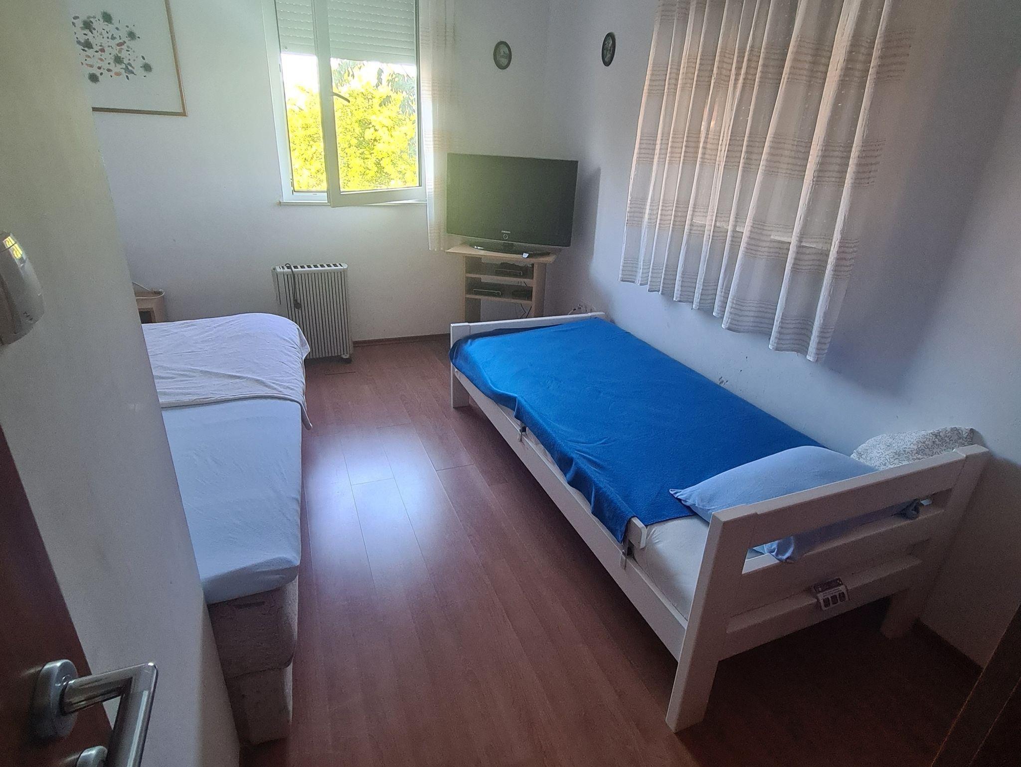 Ferienwohnung bietet Platz für 6 Gäste. Die Betten sind in Schlafzimmern, die es 2 gibt, und in Wohnzimmer, innerhalb einer Gesamtfläche von 51m2, angeordnet. Die Gäste haben eine eigene Terrasse zur Verfügung, auf der sie in warmen Sommernächten genießen können. Es ist erlaubt, Speisen auf dem Gemeinschafts-Grill vorzubereiten. IM PREIS INBEGRIFFEN: Kurtaxe, Endreinigung, Klimatisierung, Parkplatz, Internet, Kinderbett. VERBINDLICHE ZUSÄTZLICHE KOSTEN: Aufzahlung für Kurzaufenthalte (prozentualer Zuschlag pro Nächtigungsanzahl: 30% - 1, 20% - 2, 10% - 3). Die Verfügbarkeit zusätzlicher Dienstleistungen in Ihrem reservierten Termin und die Preise derselben (falls nicht aufgeführt) müssen im Voraus überprüft werden. Zusätzliche Dienstleistungen die in der Zahlungsaufforderung nicht aufgeführt sind werden direkt beim Vermieter bezahlt, angenommen der Gast nutzt auch diese.