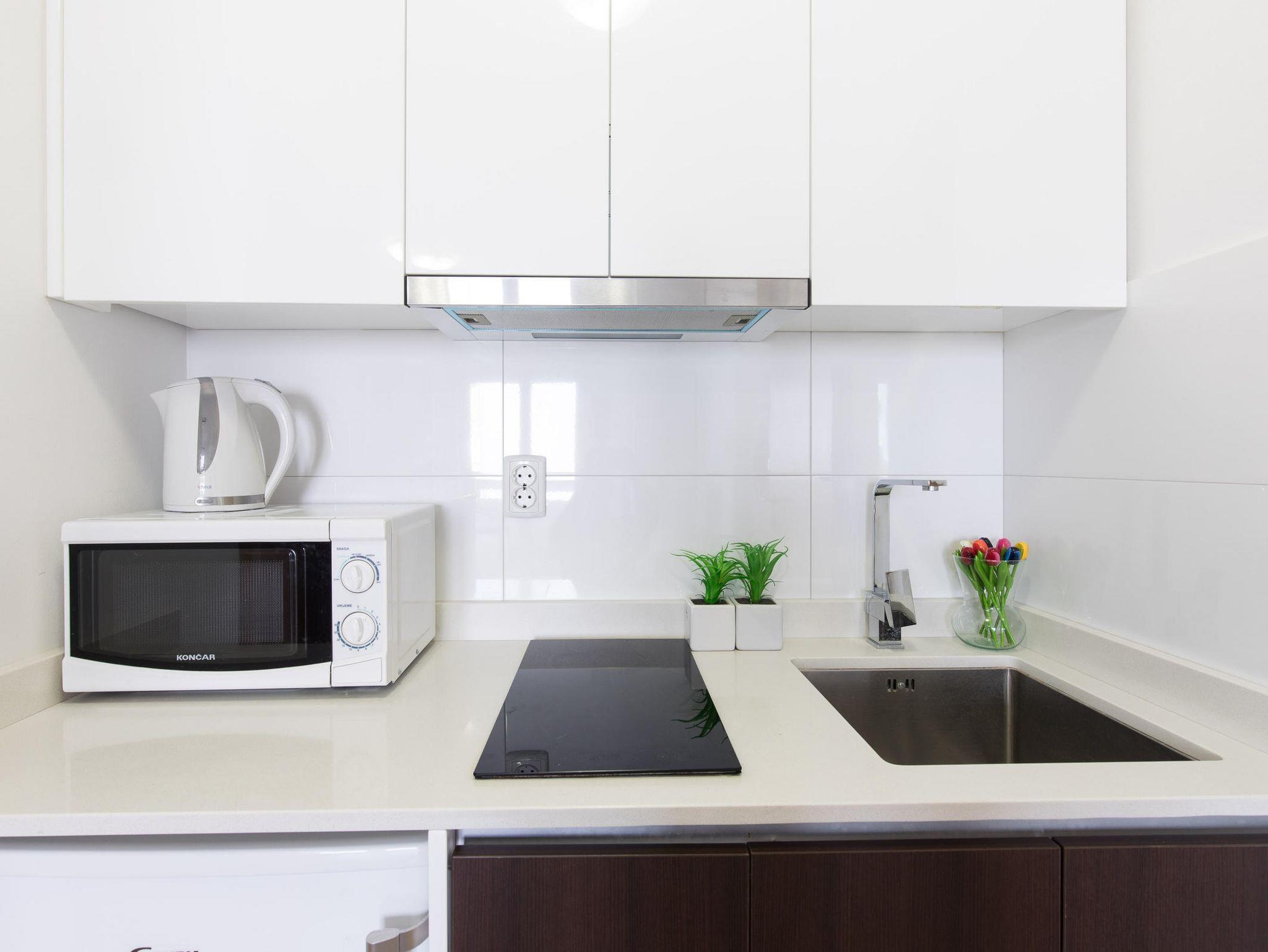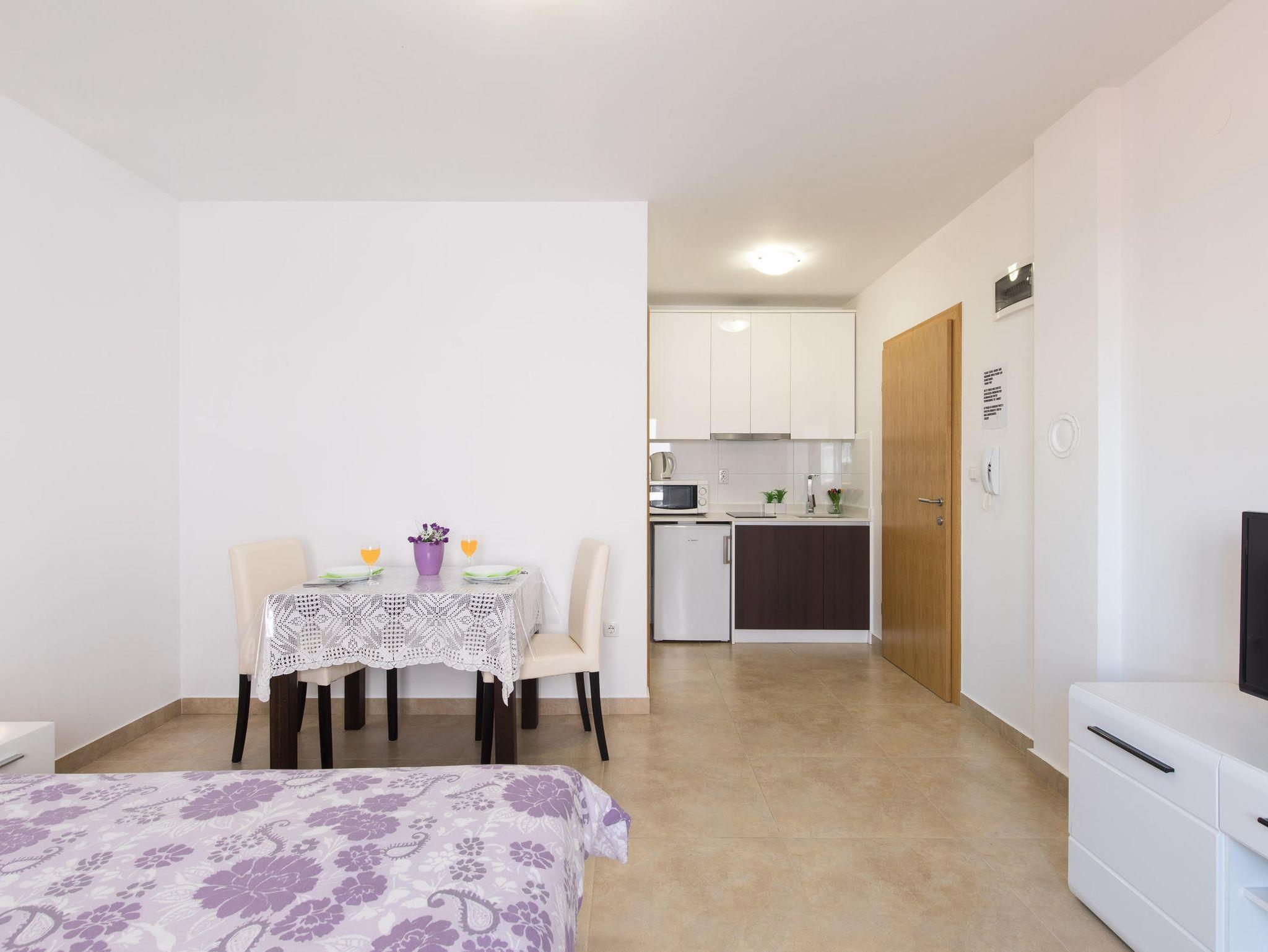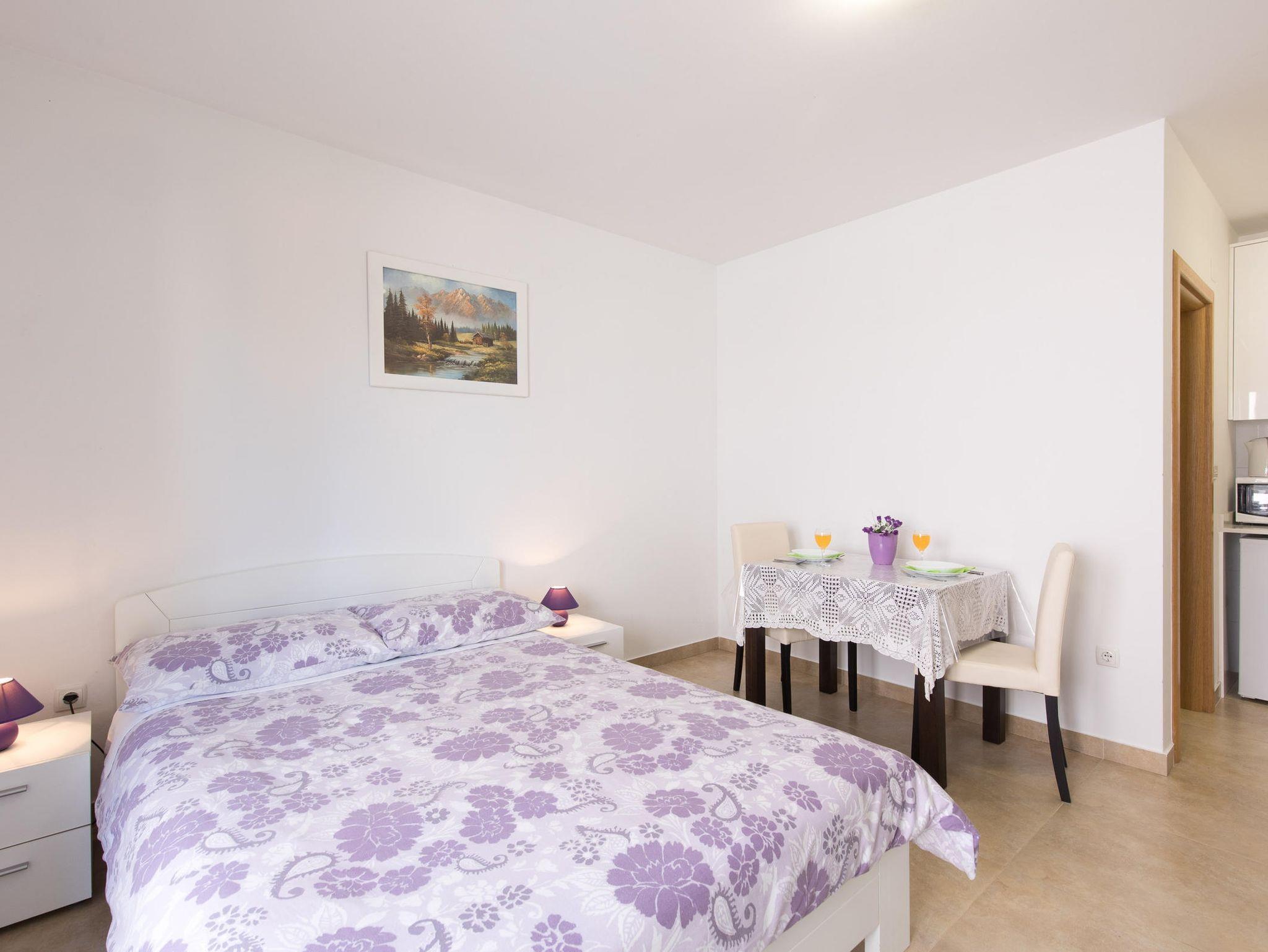 Studio bietet Platz für 2 Gäste. Die Betten sind in Schlafzimmern, die es 1 gibt, innerhalb einer Gesamtfläche von 25m2, angeordnet. Die Gäste haben einen eigenen Balkon zur Verfügung, auf der sie in warmen Sommernächten genießen können. Es ist erlaubt, Speisen auf dem Gemeinschafts-Grill vorzubereiten. IM PREIS INBEGRIFFEN: Kurtaxe, Endreinigung, Klimatisierung, Parkplatz, Internet. VERBINDLICHE ZUSÄTZLICHE KOSTEN: Aufzahlung für Kurzaufenthalte (prozentualer Zuschlag pro Nächtigungsanzahl: 30% - 1, 20% - 2, 10% - 3). Die Verfügbarkeit zusätzlicher Dienstleistungen in Ihrem reservierten Termin und die Preise derselben (falls nicht aufgeführt) müssen im Voraus überprüft werden. Zusätzliche Dienstleistungen die in der Zahlungsaufforderung nicht aufgeführt sind werden direkt beim Vermieter bezahlt, angenommen der Gast nutzt auch diese.