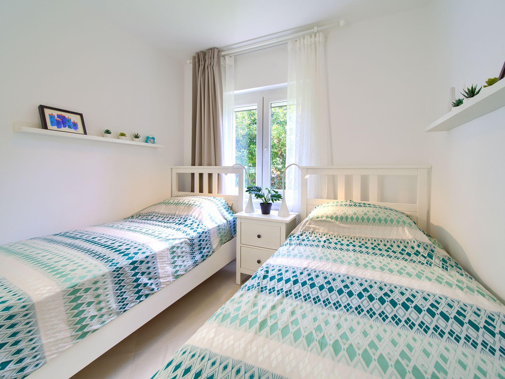 Haus bietet Platz für 4 Gäste. Die Betten sind in Schlafzimmern, die es 2 gibt, innerhalb einer Gesamtfläche von 51m2, angeordnet. Die Gäste haben eine eigene Terrasse zur Verfügung, auf der sie in warmen Sommernächten genießen können. Für vollen Genuss und Entspannung gibt es einen privaten Grill für Gäste dieser Unterkunft. In der Unterkunftseinheit besteht die Möglichkeit des Mitbringens von Haustieren gegen Aufpreis. IM PREIS INBEGRIFFEN: Kurtaxe, Endreinigung, Klimatisierung, Parkplatz, Internet. VERBINDLICHE ZUSÄTZLICHE KOSTEN: Aufzahlung für Kurzaufenthalte (prozentualer Zuschlag pro Nächtigungsanzahl: 30% - 1, 20% - 2, 10% - 3). UNVERBINDLICHE ZUSÄTZLICHE KOSTEN: Haustiere (10,00 € pro Nacht). Die Verfügbarkeit zusätzlicher Dienstleistungen in Ihrem reservierten Termin und die Preise derselben (falls nicht aufgeführt) müssen im Voraus überprüft werden. Zusätzliche Dienstleistungen die in der Zahlungsaufforderung nicht aufgeführt sind werden direkt beim Vermieter bezahlt, angenommen der Gast nutzt auch diese.