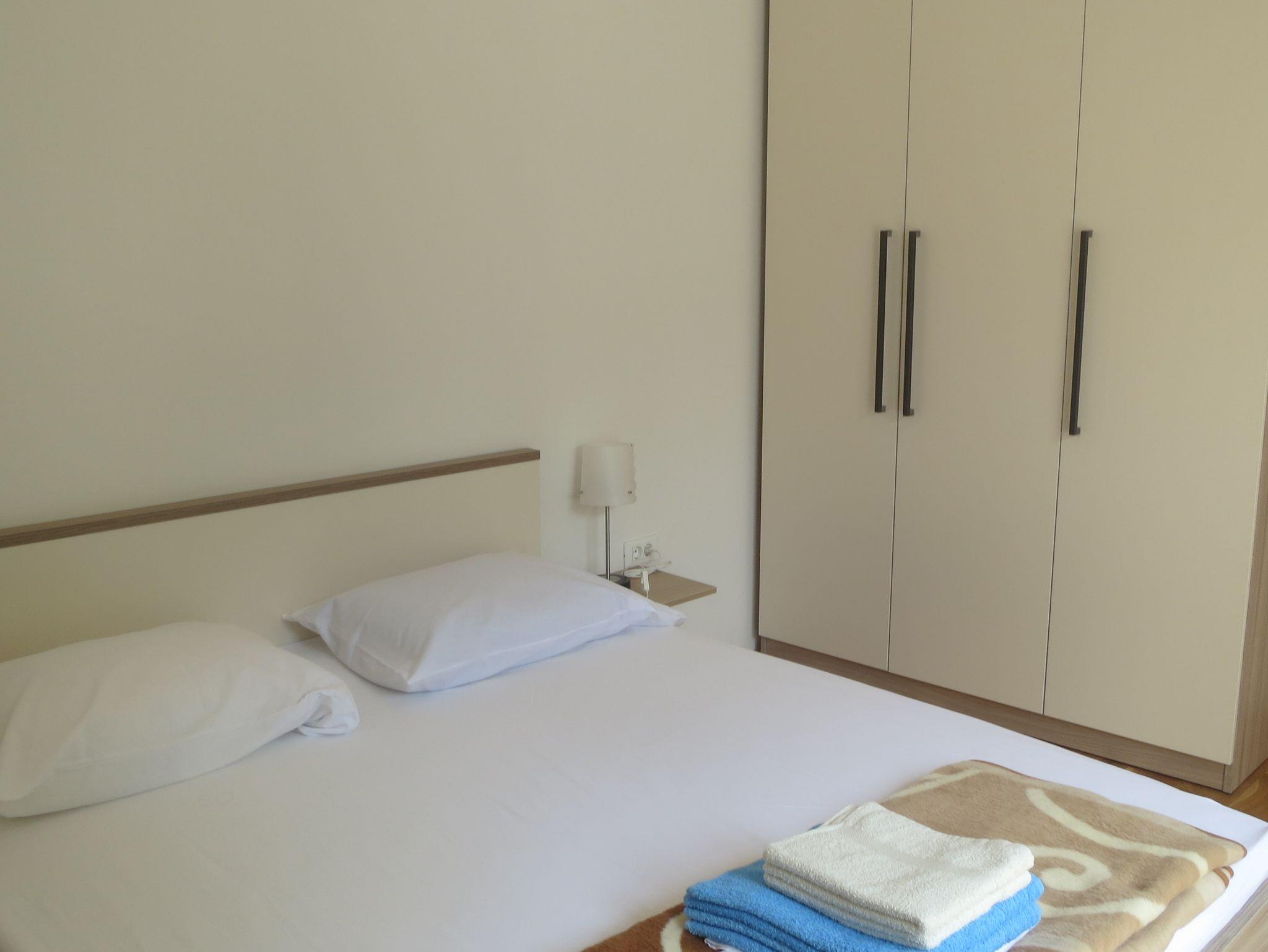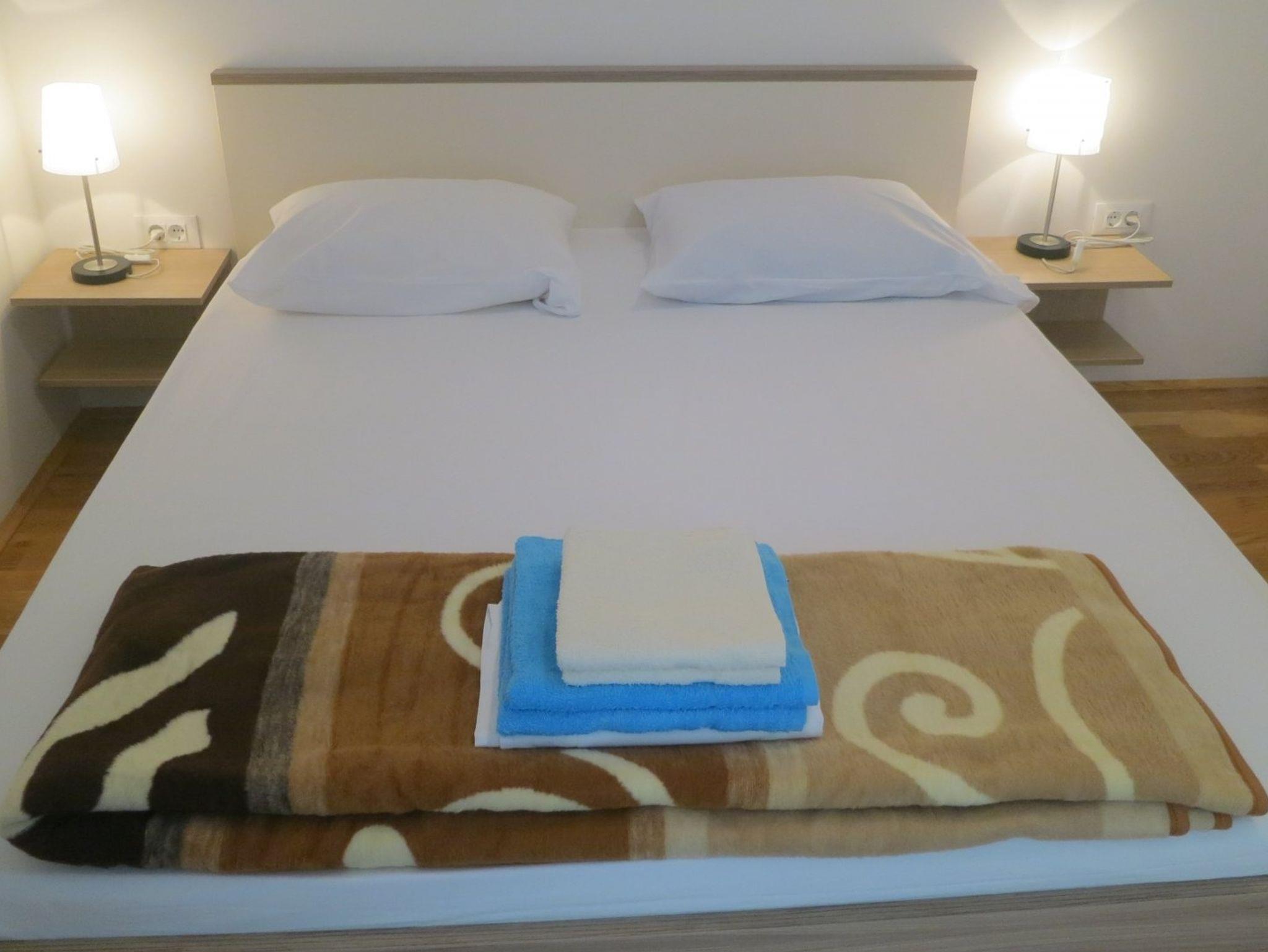 Ferienwohnung bietet Platz für 4 Gäste. Die Betten sind in Schlafzimmern, die es 2 gibt, innerhalb einer Gesamtfläche von 49m2, angeordnet. Die Gäste haben einen eigenen Balkon zur Verfügung, auf der sie in warmen Sommernächten genießen können. IM PREIS INBEGRIFFEN: Kurtaxe, Endreinigung, Klimatisierung, Parkplatz, Internet. VERBINDLICHE ZUSÄTZLICHE KOSTEN: Aufzahlung für Kurzaufenthalte (prozentualer Zuschlag pro Nächtigungsanzahl: 30% - 1, 20% - 2, 10% - 3). Die Verfügbarkeit zusätzlicher Dienstleistungen in Ihrem reservierten Termin und die Preise derselben (falls nicht aufgeführt) müssen im Voraus überprüft werden. Zusätzliche Dienstleistungen die in der Zahlungsaufforderung nicht aufgeführt sind werden direkt beim Vermieter bezahlt, angenommen der Gast nutzt auch diese.