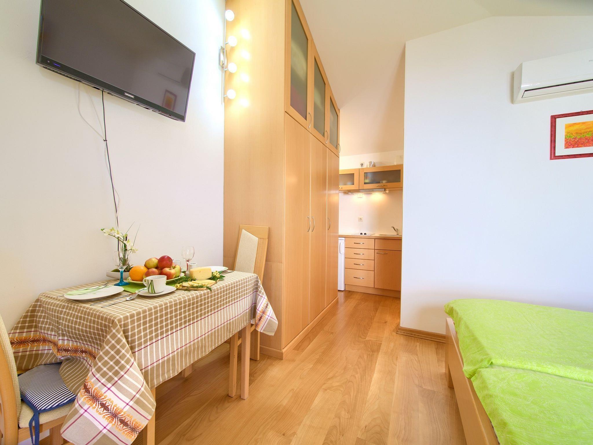 Studio bietet Platz für 2 Gäste. Die Betten sind in Schlafzimmern, die es 1 gibt, innerhalb einer Gesamtfläche von 20m2, angeordnet. Die Gäste haben eine eigene Terrasse zur Verfügung, auf der sie in warmen Sommernächten genießen können. IM PREIS INBEGRIFFEN: Kurtaxe, Endreinigung, Klimatisierung, Parkplatz, Internet. VERBINDLICHE ZUSÄTZLICHE KOSTEN: Aufzahlung für Kurzaufenthalte (prozentualer Zuschlag pro Nächtigungsanzahl: 30% - 1, 20% - 2, 10% - 3). Die Verfügbarkeit zusätzlicher Dienstleistungen in Ihrem reservierten Termin und die Preise derselben (falls nicht aufgeführt) müssen im Voraus überprüft werden. Zusätzliche Dienstleistungen die in der Zahlungsaufforderung nicht aufgeführt sind werden direkt beim Vermieter bezahlt, angenommen der Gast nutzt auch diese.