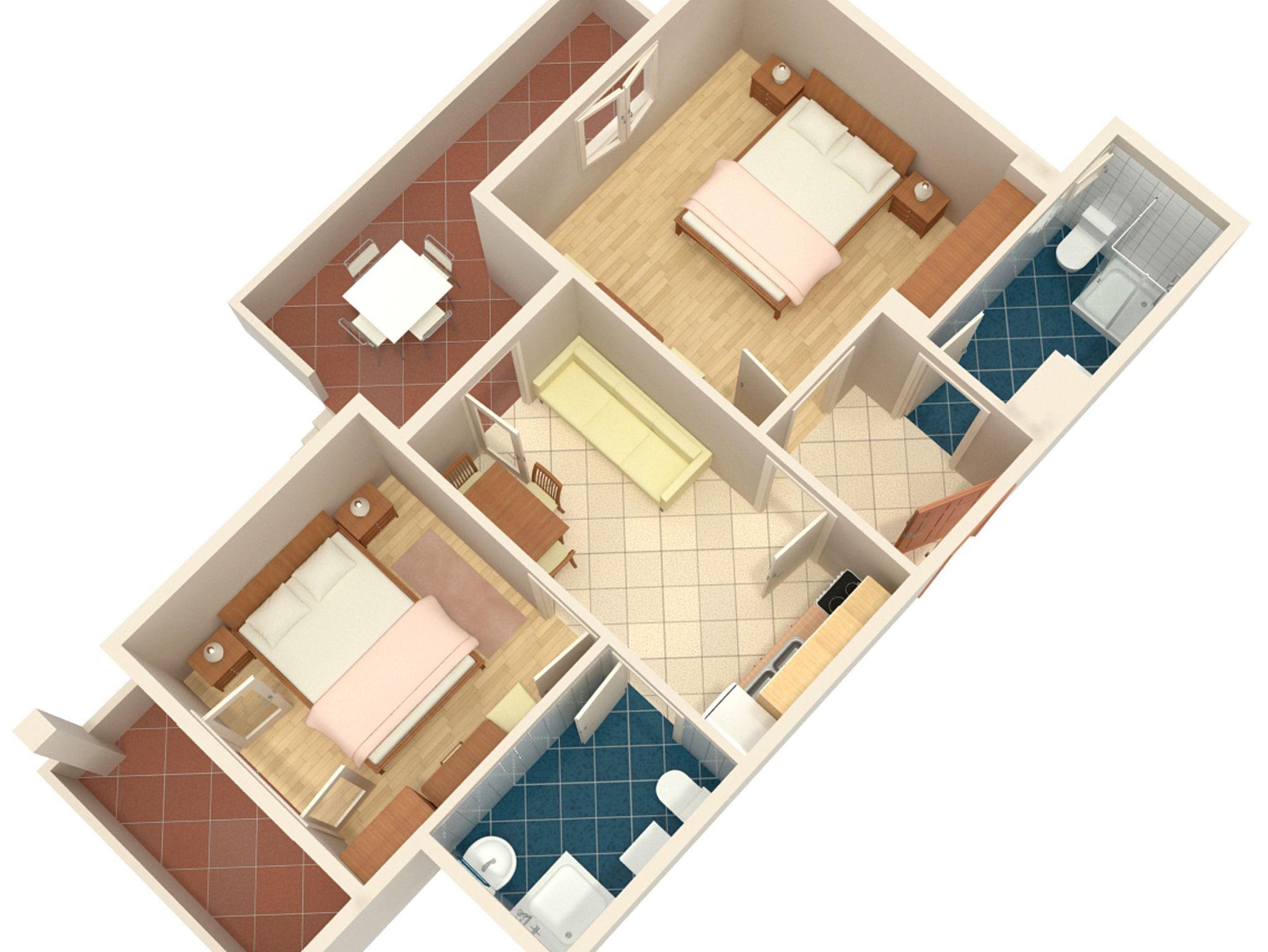 Ferienwohnung bietet Platz für 5 Gäste. Die Betten sind in Schlafzimmern, die es 2 gibt, und in Esszimmer, innerhalb einer Gesamtfläche von 40m2, angeordnet. Die Gäste haben eine eigene Terrasse zur Verfügung, auf der sie in warmen Sommernächten genießen können. IM PREIS INBEGRIFFEN: Kurtaxe, Endreinigung, Klimatisierung, Parkplatz, Internet, Kinderbett, Bügeleisen, Bügelbrett, Föhn. UNVERBINDLICHE ZUSÄTZLICHE KOSTEN: Wäschewaschen (5,00 € Waschen). Die Verfügbarkeit zusätzlicher Dienstleistungen in Ihrem reservierten Termin und die Preise derselben (falls nicht aufgeführt) müssen im Voraus überprüft werden. Zusätzliche Dienstleistungen die in der Zahlungsaufforderung nicht aufgeführt sind werden direkt beim Vermieter bezahlt, angenommen der Gast nutzt auch diese. Ermäßigung auf den Grundpreis: Gratistag 14=13 (bei einem Aufenthalt von 14 Tagen oder mehr erhalten Sie einen Gratistag für den Aufenthalt bis 31.12.26).