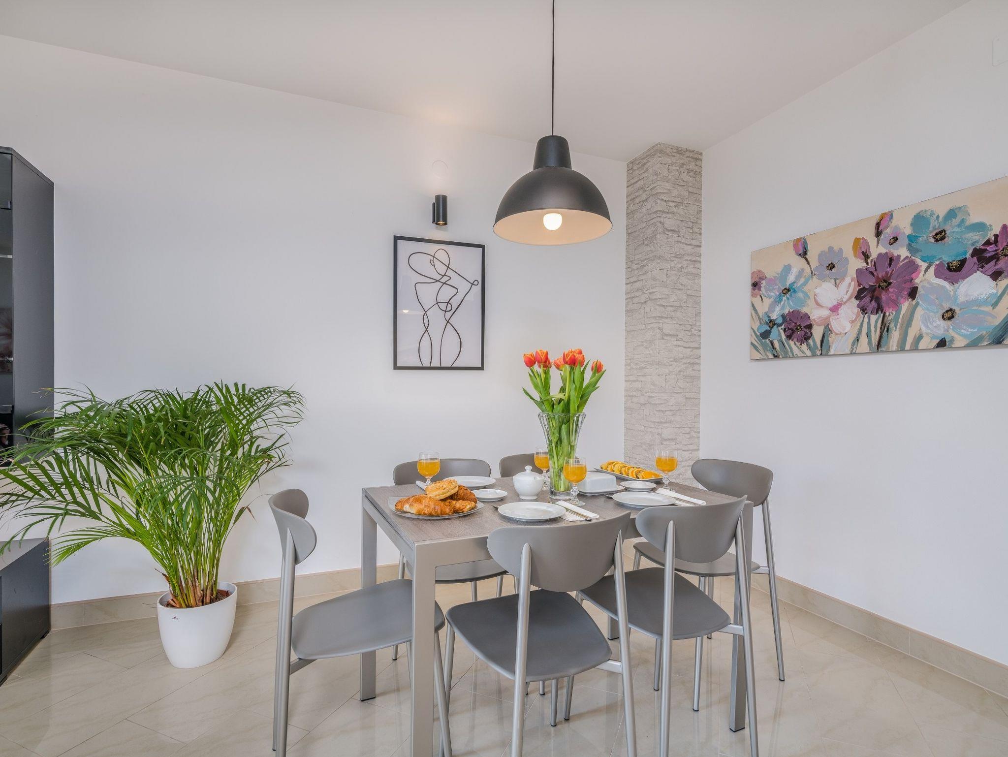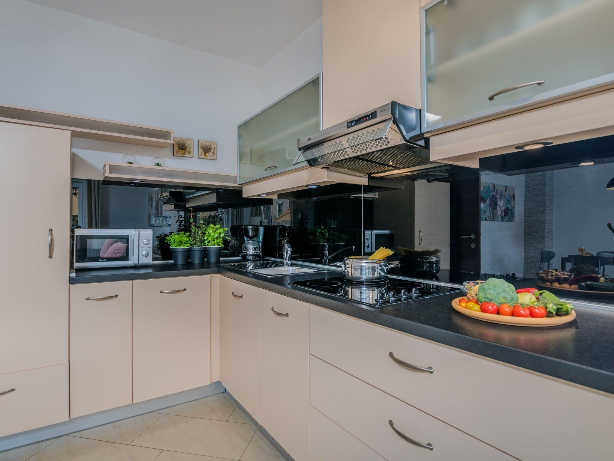 Ferienwohnung bietet Platz für 5 Gäste. Die Betten sind in Schlafzimmern, die es 2 gibt, innerhalb einer Gesamtfläche von 75m2, angeordnet. Die Gäste haben eine eigene Terrasse zur Verfügung, auf der sie in warmen Sommernächten genießen können. Es ist erlaubt, Speisen auf dem Gemeinschafts-Grill vorzubereiten. In der gebuchten Unterkunftseinheit zahlt man am Ort ein Depositum ( der Preis ist an der Internetseite angeführt ). IM PREIS INBEGRIFFEN: Kurtaxe, Endreinigung, Klimatisierung, Zentralheizung, Parkplatz, Internet, Bügeleisen, Bügelbrett, Föhn. VERBINDLICHE ZUSÄTZLICHE KOSTEN: Kaution (200,00 € Einmalzahlung), Aufzahlung für Kurzaufenthalte (prozentualer Zuschlag pro Nächtigungsanzahl: 30% - 1, 20% - 2, 10% - 3). Die Verfügbarkeit zusätzlicher Dienstleistungen in Ihrem reservierten Termin und die Preise derselben (falls nicht aufgeführt) müssen im Voraus überprüft werden. Zusätzliche Dienstleistungen die in der Zahlungsaufforderung nicht aufgeführt sind werden direkt beim Vermieter bezahlt, angenommen der Gast nutzt auch diese.