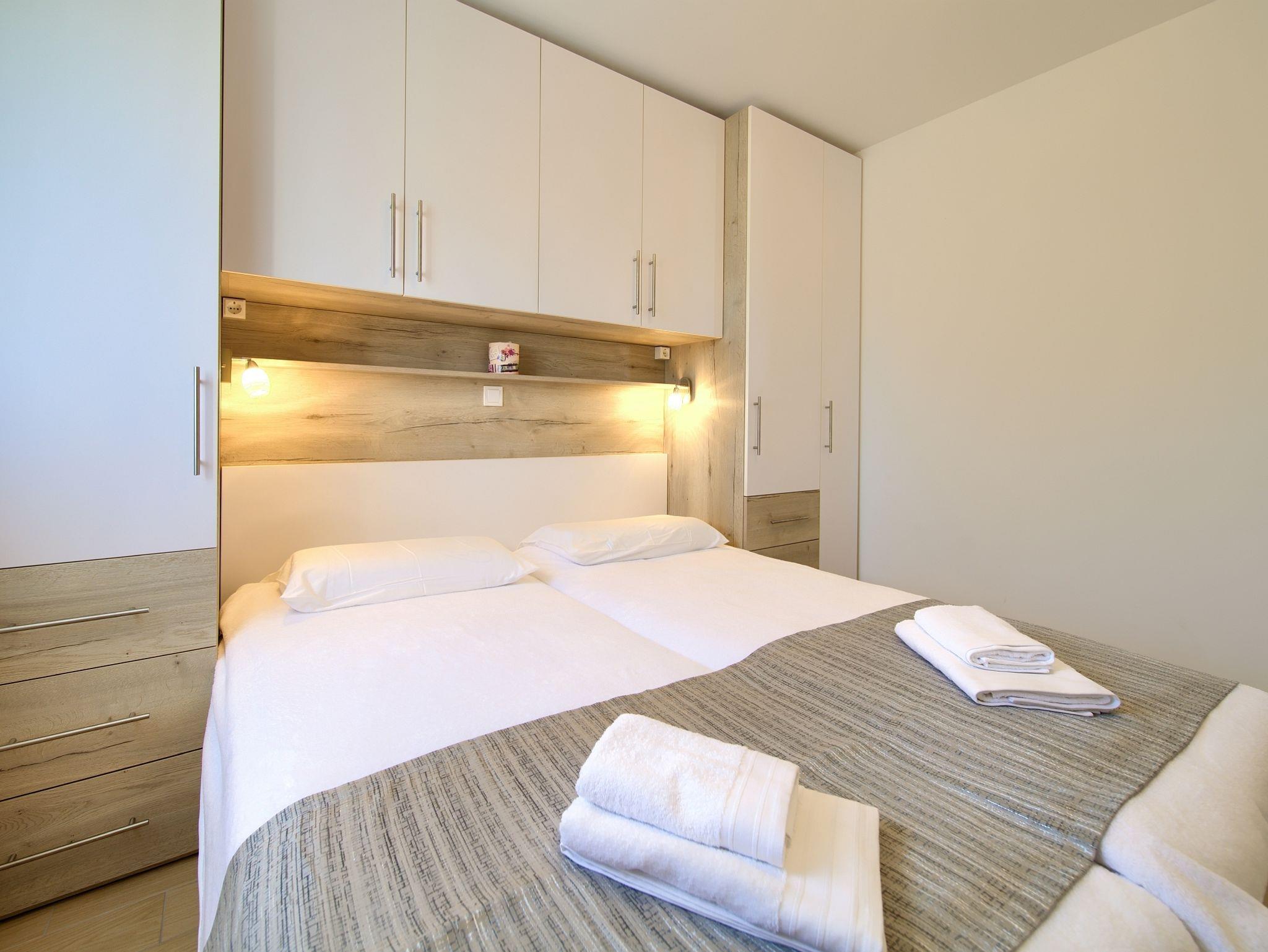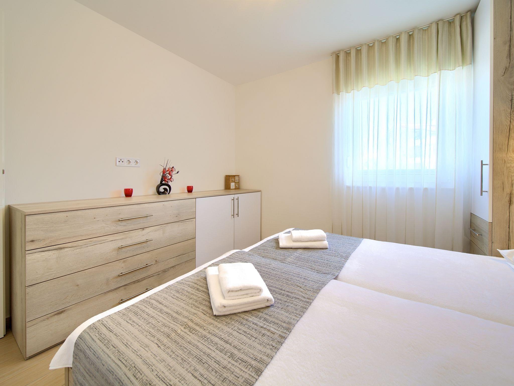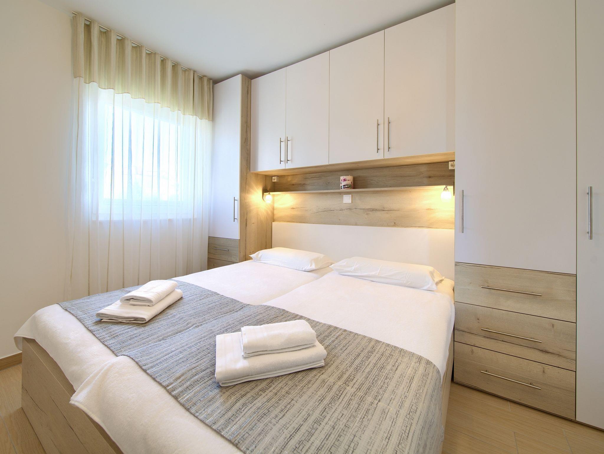 Ferienwohnung bietet Platz für 4 Gäste. Die Betten sind in Schlafzimmern, die es 2 gibt, innerhalb einer Gesamtfläche von 60m2, angeordnet. Die Gäste haben eine eigene Terrasse zur Verfügung, auf der sie in warmen Sommernächten genießen können. Das Apartment bietet Meerblick. IM PREIS INBEGRIFFEN: Kurtaxe, Endreinigung, Klimatisierung, Parkplatz, Internet. Die Verfügbarkeit zusätzlicher Dienstleistungen in Ihrem reservierten Termin und die Preise derselben (falls nicht aufgeführt) müssen im Voraus überprüft werden. Zusätzliche Dienstleistungen die in der Zahlungsaufforderung nicht aufgeführt sind werden direkt beim Vermieter bezahlt, angenommen der Gast nutzt auch diese.