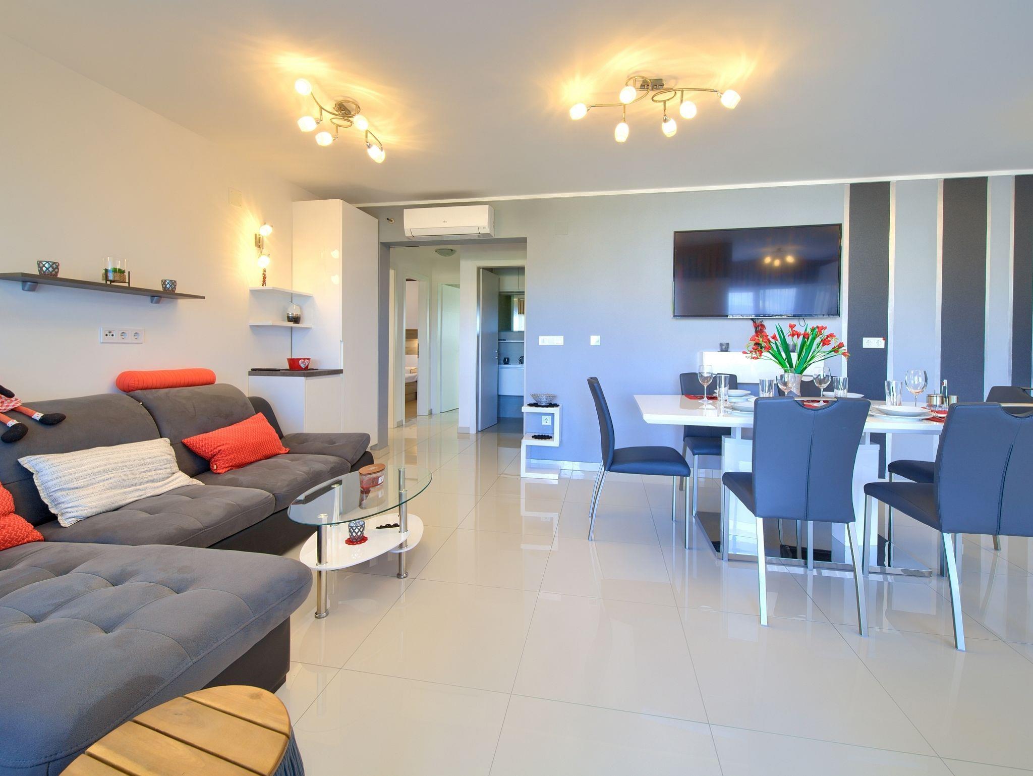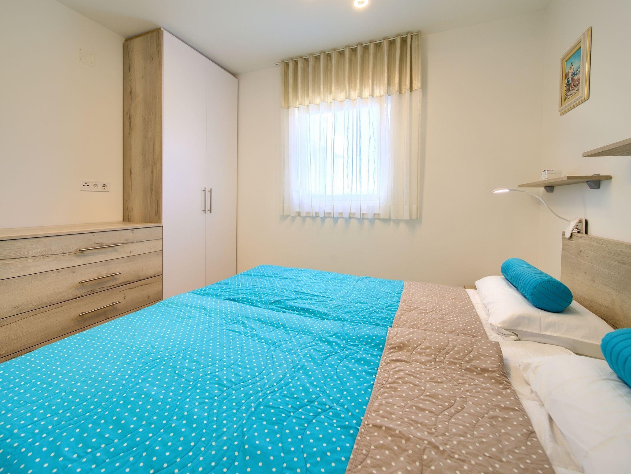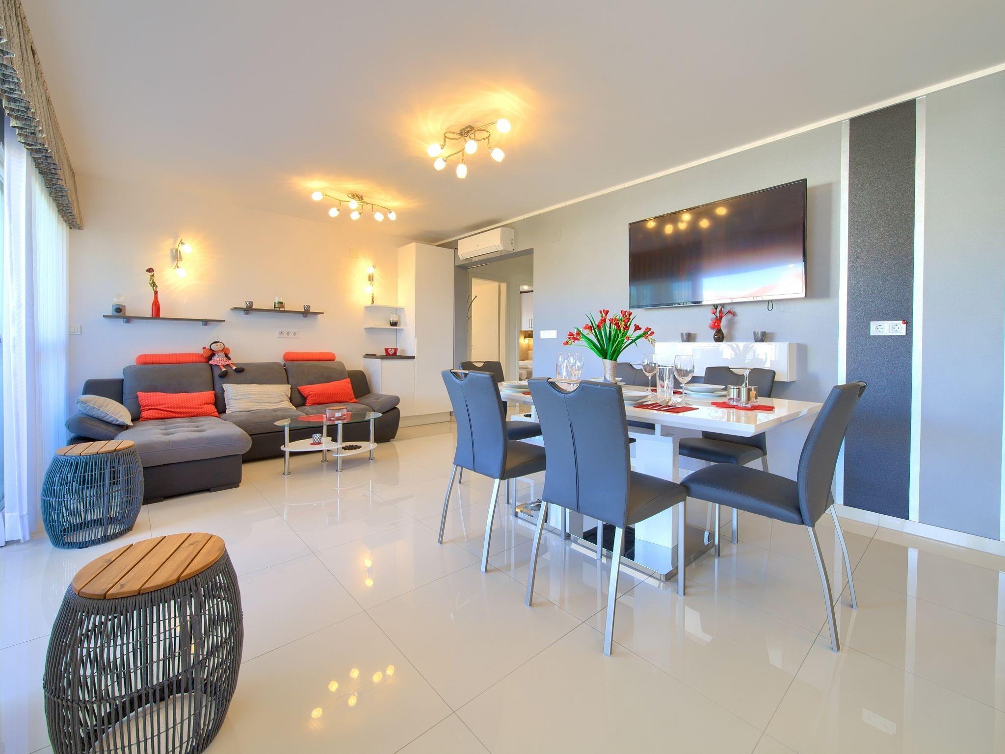 Ferienwohnung bietet Platz für 4 Gäste. Die Betten sind in Schlafzimmern, die es 2 gibt, innerhalb einer Gesamtfläche von 60m2, angeordnet. Die Gäste haben eine eigene Terrasse zur Verfügung, auf der sie in warmen Sommernächten genießen können. Das Apartment bietet Meerblick. IM PREIS INBEGRIFFEN: Kurtaxe, Endreinigung, Klimatisierung, Parkplatz, Internet. Die Verfügbarkeit zusätzlicher Dienstleistungen in Ihrem reservierten Termin und die Preise derselben (falls nicht aufgeführt) müssen im Voraus überprüft werden. Zusätzliche Dienstleistungen die in der Zahlungsaufforderung nicht aufgeführt sind werden direkt beim Vermieter bezahlt, angenommen der Gast nutzt auch diese.