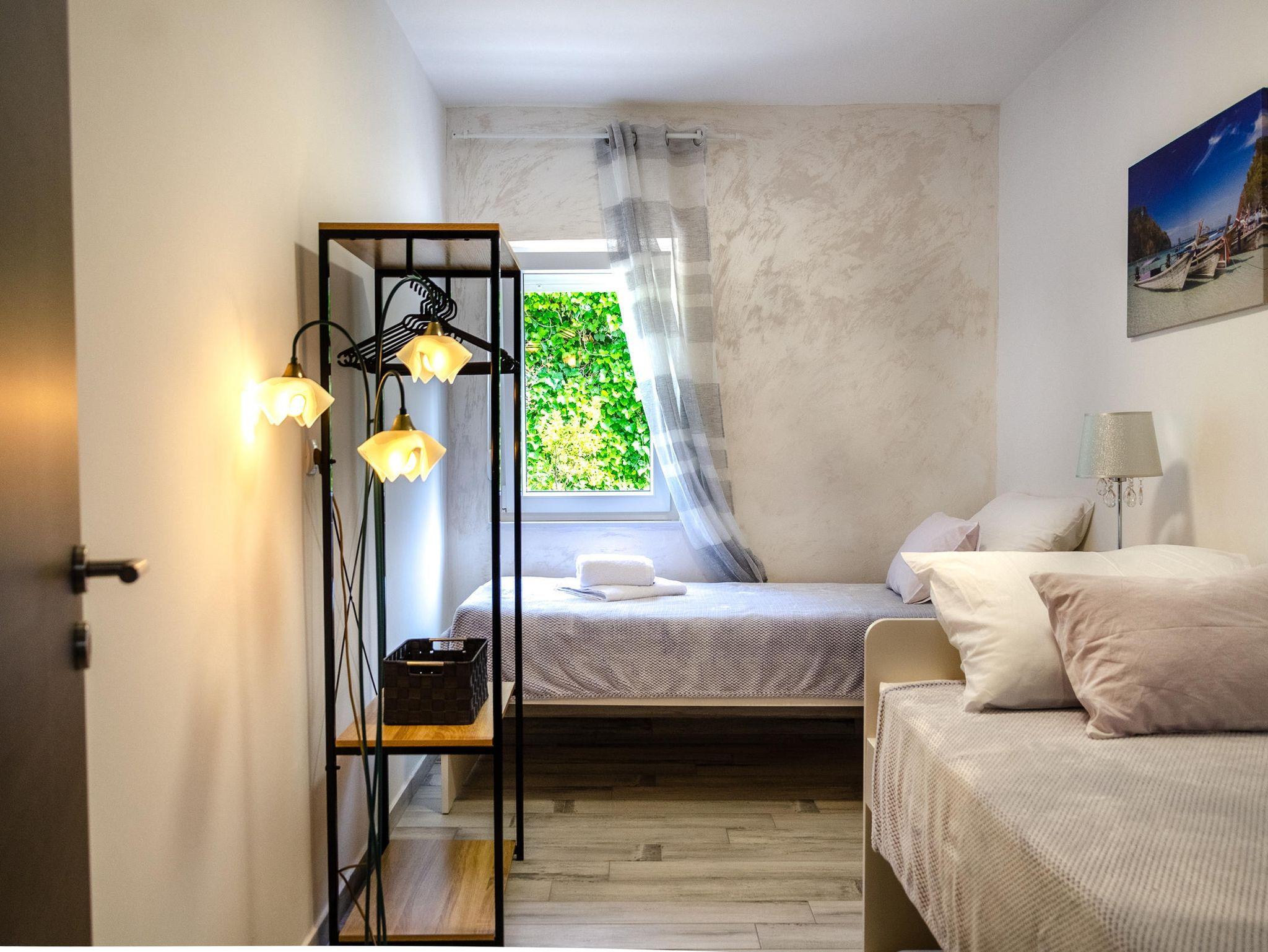 Ferienwohnung bietet Platz für 4 Gäste. Die Betten sind in Schlafzimmern, die es 2 gibt, innerhalb einer Gesamtfläche von 36m2, angeordnet. Die Gäste haben eine eigene Terrasse zur Verfügung, auf der sie in warmen Sommernächten genießen können. Für vollen Genuss und Entspannung gibt es einen privaten Grill für Gäste dieser Unterkunft. In der Unterkunftseinheit besteht die Möglichkeit des Mitbringens von Haustieren gegen Aufpreis. IM PREIS INBEGRIFFEN: Kurtaxe, Endreinigung, Klimatisierung, Parkplatz, Internet. VERBINDLICHE ZUSÄTZLICHE KOSTEN: Aufzahlung für Kurzaufenthalte (prozentualer Zuschlag pro Nächtigungsanzahl: 30% - 1, 20% - 2, 10% - 3). UNVERBINDLICHE ZUSÄTZLICHE KOSTEN: Haustiere (10,00 € pro Nacht). Die Verfügbarkeit zusätzlicher Dienstleistungen in Ihrem reservierten Termin und die Preise derselben (falls nicht aufgeführt) müssen im Voraus überprüft werden. Zusätzliche Dienstleistungen die in der Zahlungsaufforderung nicht aufgeführt sind werden direkt beim Vermieter bezahlt, angenommen der Gast nutzt auch diese.