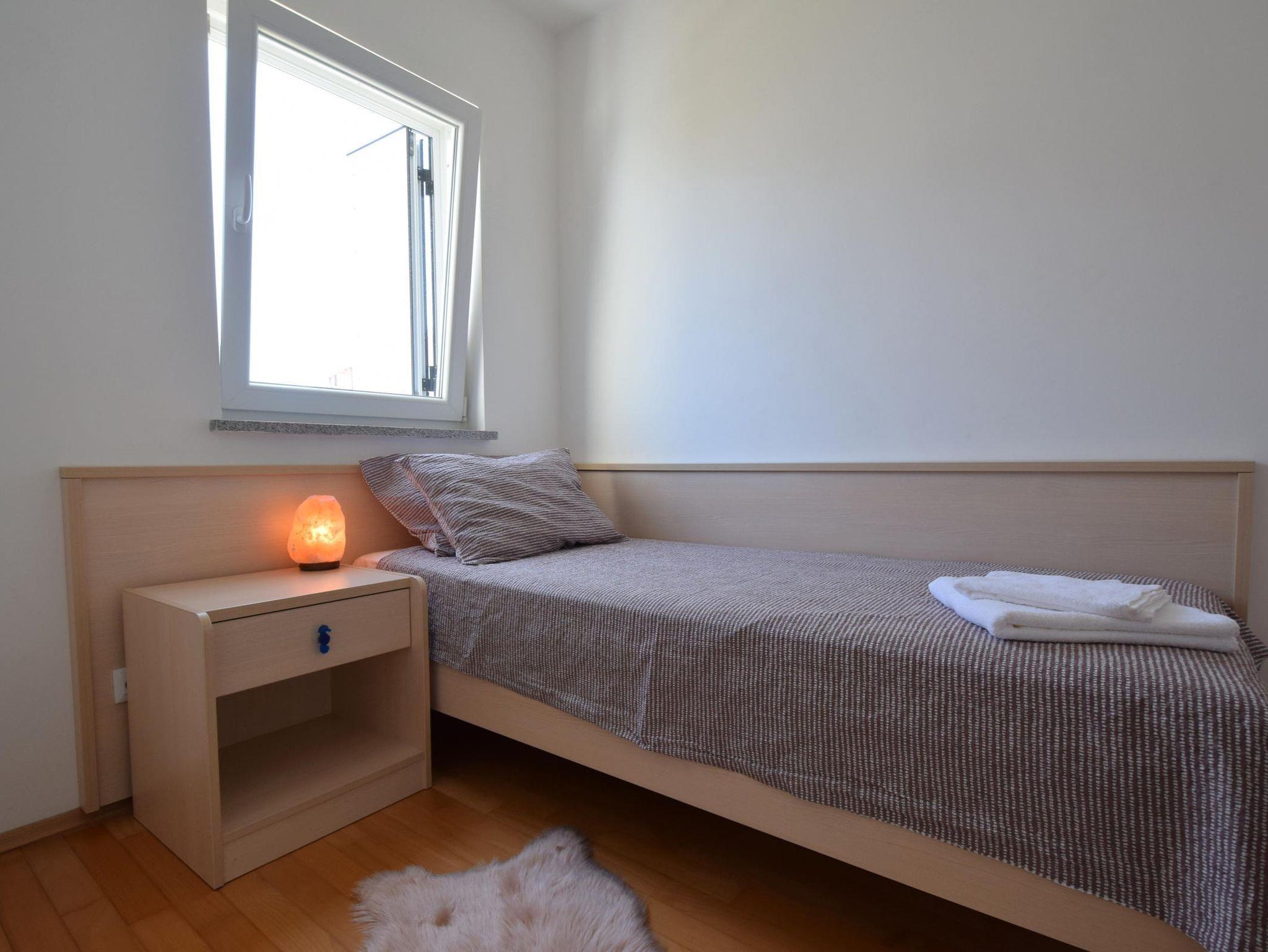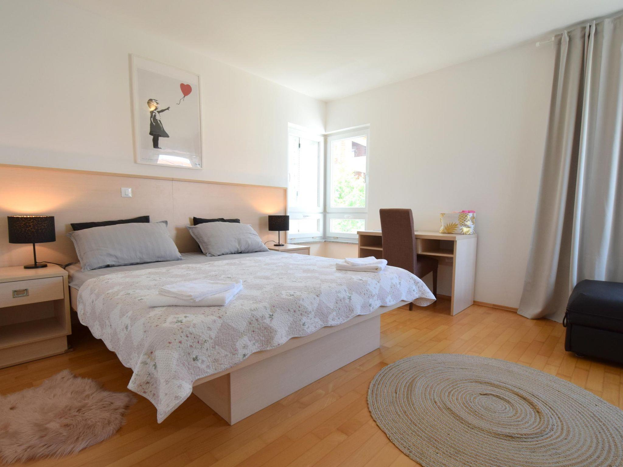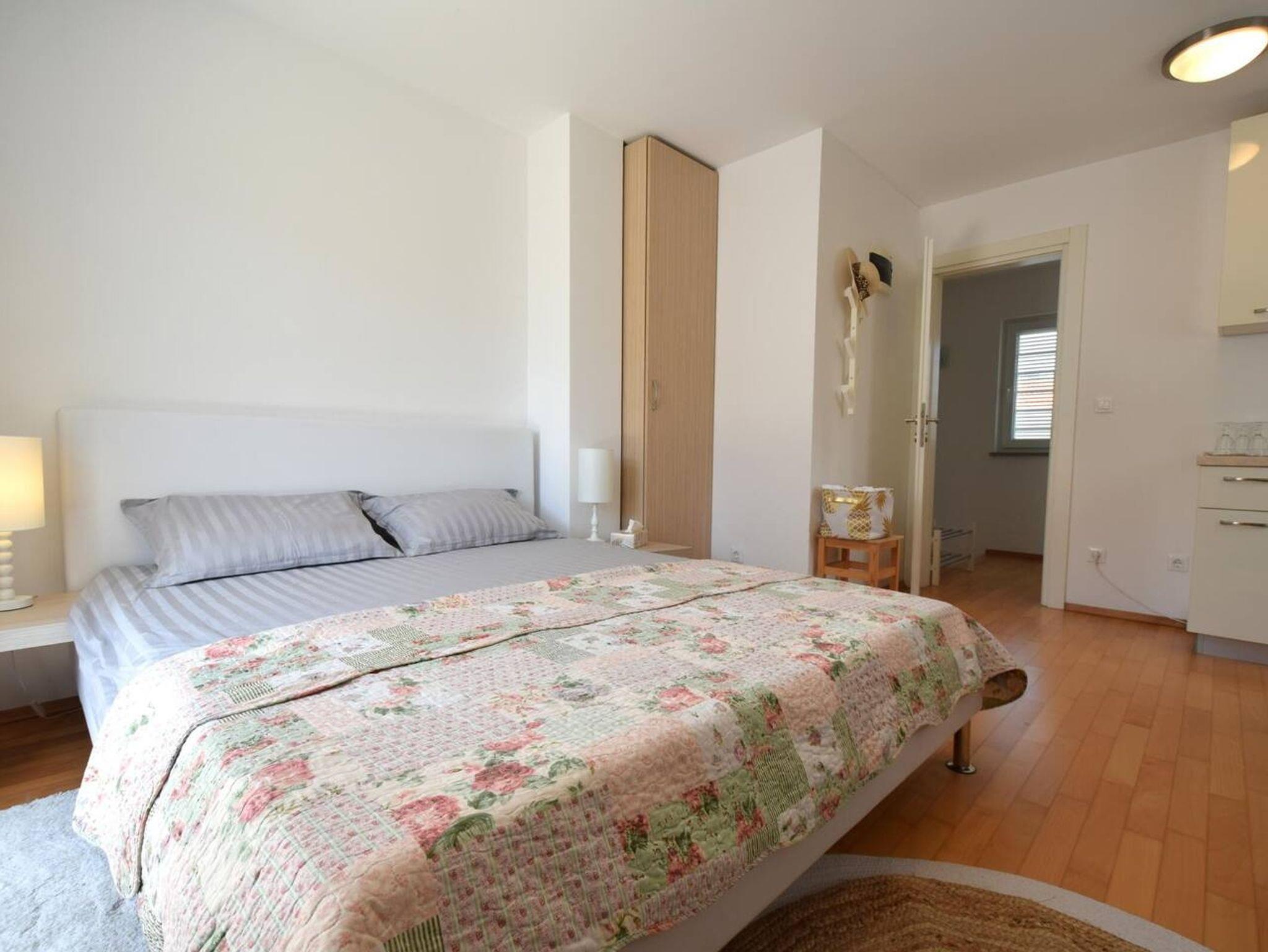 Ferienwohnung bietet Platz für 7 Gäste. Die Betten sind in Schlafzimmern, die es 3 gibt, und in Wohnzimmer, innerhalb einer Gesamtfläche von 90m2, angeordnet. Die Gäste haben eine eigene Terrasse zur Verfügung, auf der sie in warmen Sommernächten genießen können. Das Apartment bietet Meerblick. Es ist erlaubt, Speisen auf dem Gemeinschafts-Grill vorzubereiten. IM PREIS INBEGRIFFEN: Kurtaxe, Endreinigung, Klimatisierung, Parkplatz, Internet, tragbarer Grill. VERBINDLICHE ZUSÄTZLICHE KOSTEN: Aufzahlung für Kurzaufenthalte (prozentualer Zuschlag pro Nächtigungsanzahl: 30% - 1, 20% - 2, 10% - 3). Die Verfügbarkeit zusätzlicher Dienstleistungen in Ihrem reservierten Termin und die Preise derselben (falls nicht aufgeführt) müssen im Voraus überprüft werden. Zusätzliche Dienstleistungen die in der Zahlungsaufforderung nicht aufgeführt sind werden direkt beim Vermieter bezahlt, angenommen der Gast nutzt auch diese.