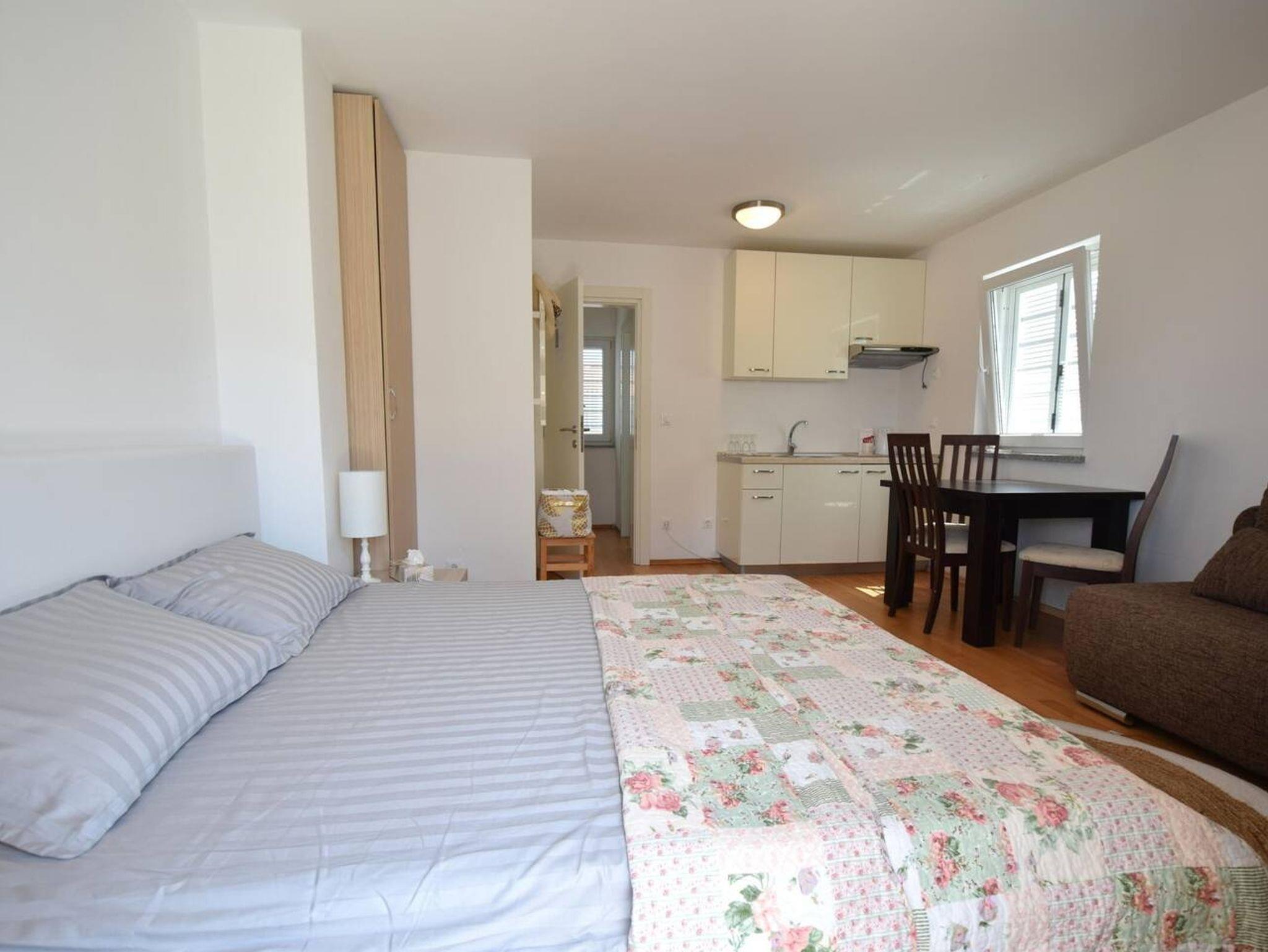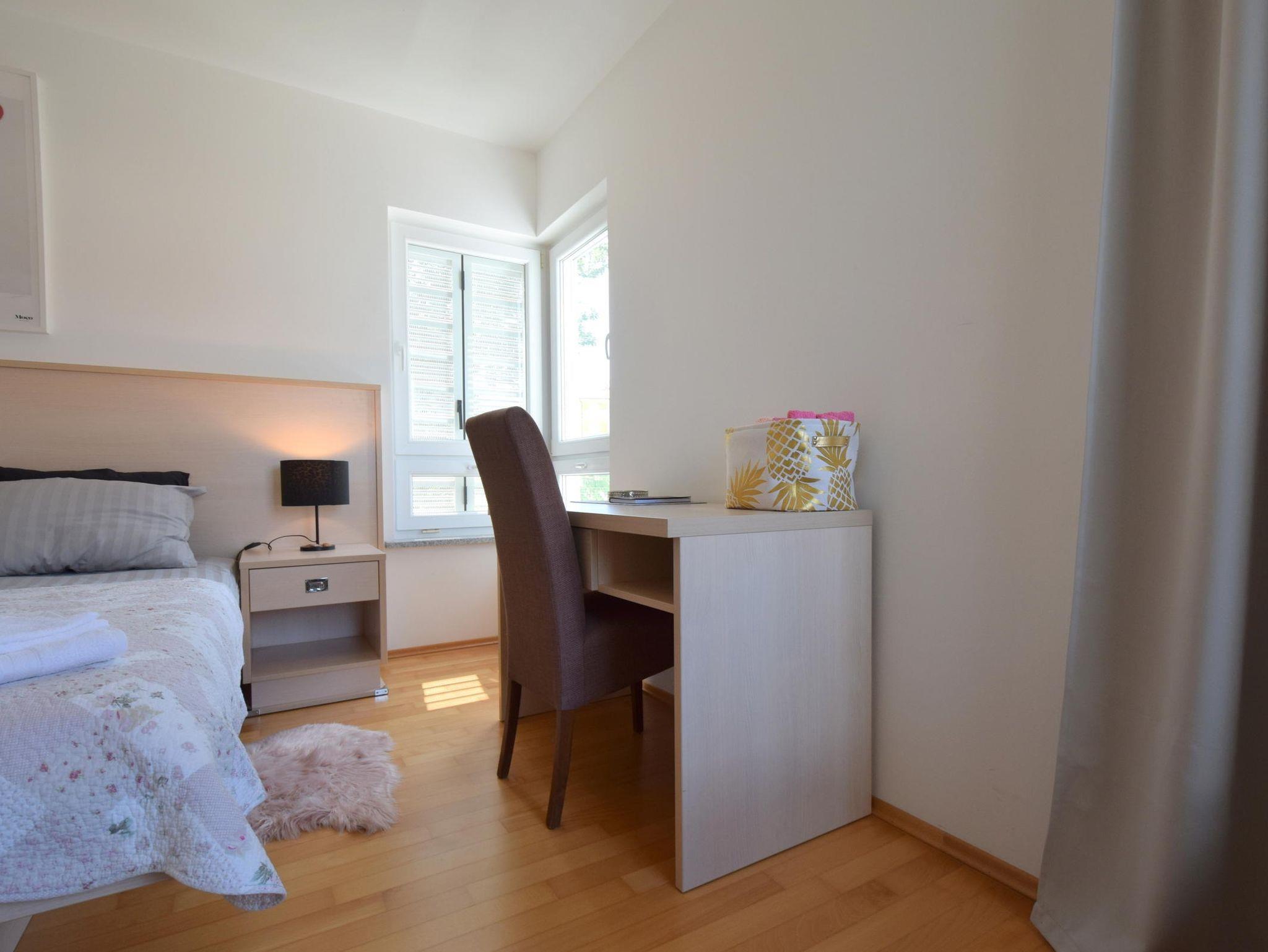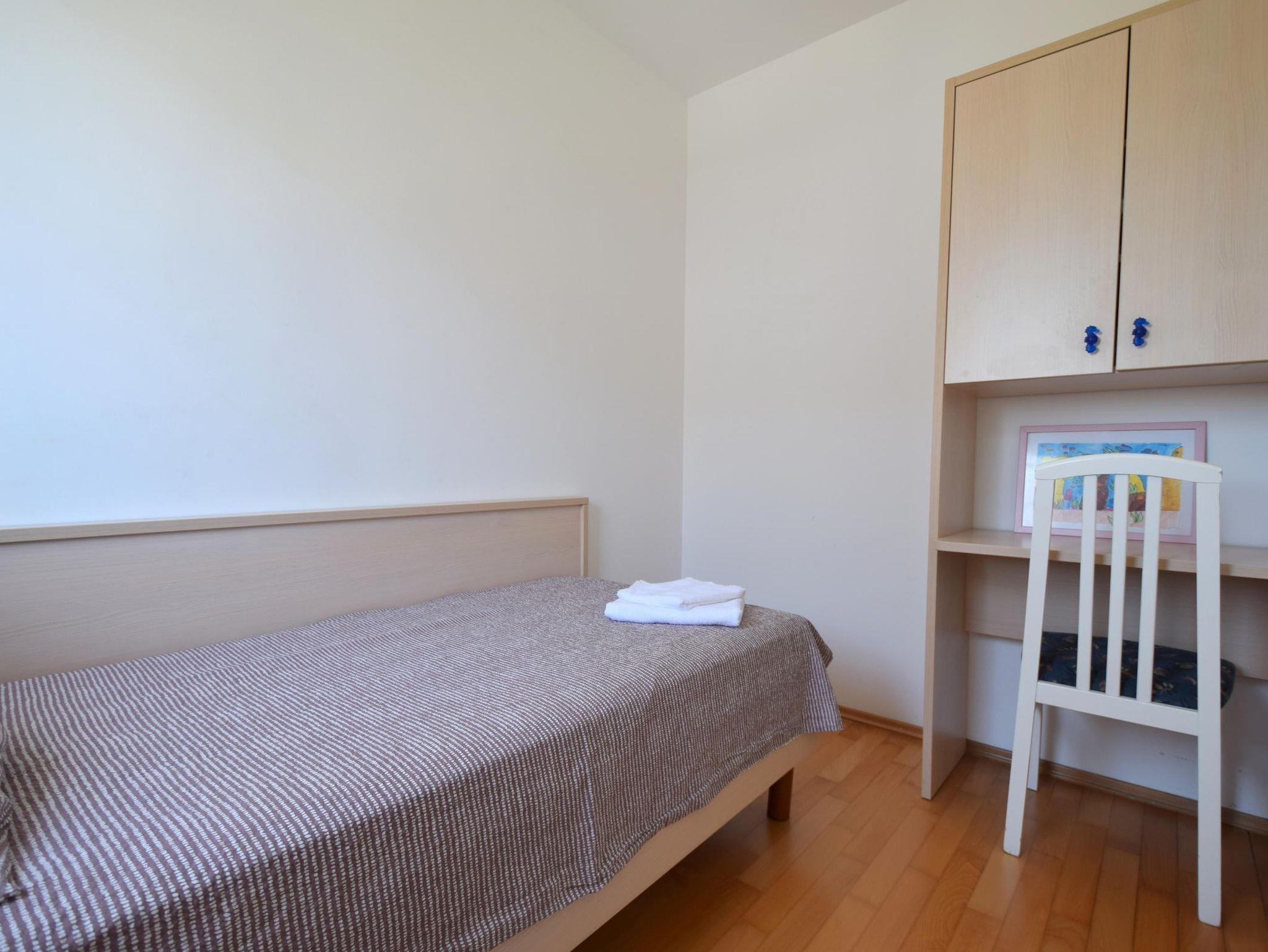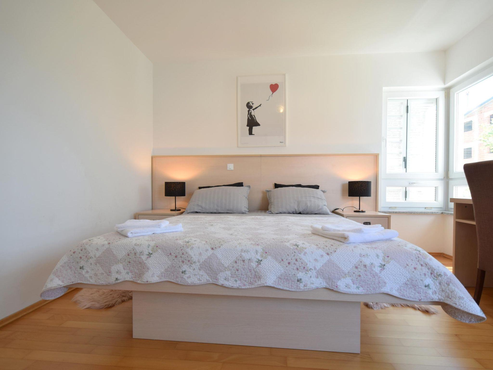 Ferienwohnung bietet Platz für 7 Gäste. Die Betten sind in Schlafzimmern, die es 3 gibt, und in Wohnzimmer, innerhalb einer Gesamtfläche von 90m2, angeordnet. Die Gäste haben eine eigene Terrasse zur Verfügung, auf der sie in warmen Sommernächten genießen können. Das Apartment bietet Meerblick. Es ist erlaubt, Speisen auf dem Gemeinschafts-Grill vorzubereiten. IM PREIS INBEGRIFFEN: Kurtaxe, Endreinigung, Klimatisierung, Parkplatz, Internet, tragbarer Grill. VERBINDLICHE ZUSÄTZLICHE KOSTEN: Aufzahlung für Kurzaufenthalte (prozentualer Zuschlag pro Nächtigungsanzahl: 30% - 1, 20% - 2, 10% - 3). Die Verfügbarkeit zusätzlicher Dienstleistungen in Ihrem reservierten Termin und die Preise derselben (falls nicht aufgeführt) müssen im Voraus überprüft werden. Zusätzliche Dienstleistungen die in der Zahlungsaufforderung nicht aufgeführt sind werden direkt beim Vermieter bezahlt, angenommen der Gast nutzt auch diese.
