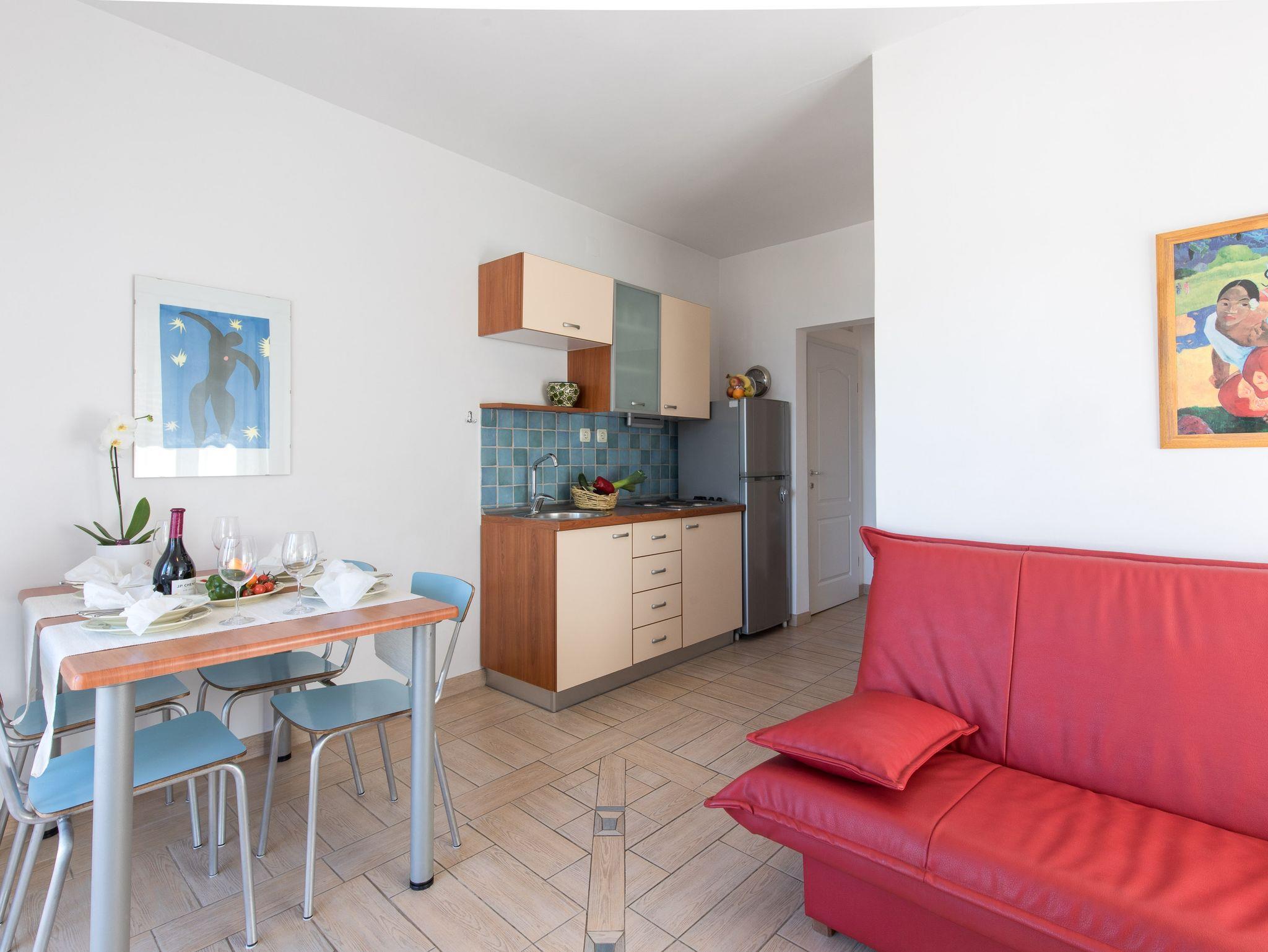 Ferienwohnung bietet Platz für 4 Gäste. Die Betten sind in Schlafzimmern, die es 2 gibt, innerhalb einer Gesamtfläche von 55m2, angeordnet. Die Gäste haben einen eigenen Balkon zur Verfügung, auf der sie in warmen Sommernächten genießen können. Das Apartment bietet Meerblick. In der Unterkunftseinheit besteht die Möglichkeit des Mitbringens von Haustieren gegen Aufpreis. IM PREIS INBEGRIFFEN: Kurtaxe, Endreinigung, Klimatisierung, Parkplatz, Internet. VERBINDLICHE ZUSÄTZLICHE KOSTEN: Aufzahlung für Kurzaufenthalte (prozentualer Zuschlag pro Nächtigungsanzahl: 30% - 1, 20% - 2, 10% - 3). UNVERBINDLICHE ZUSÄTZLICHE KOSTEN: Haustiere (10,00 € pro Nacht). Die Verfügbarkeit zusätzlicher Dienstleistungen in Ihrem reservierten Termin und die Preise derselben (falls nicht aufgeführt) müssen im Voraus überprüft werden. Zusätzliche Dienstleistungen die in der Zahlungsaufforderung nicht aufgeführt sind werden direkt beim Vermieter bezahlt, angenommen der Gast nutzt auch diese.