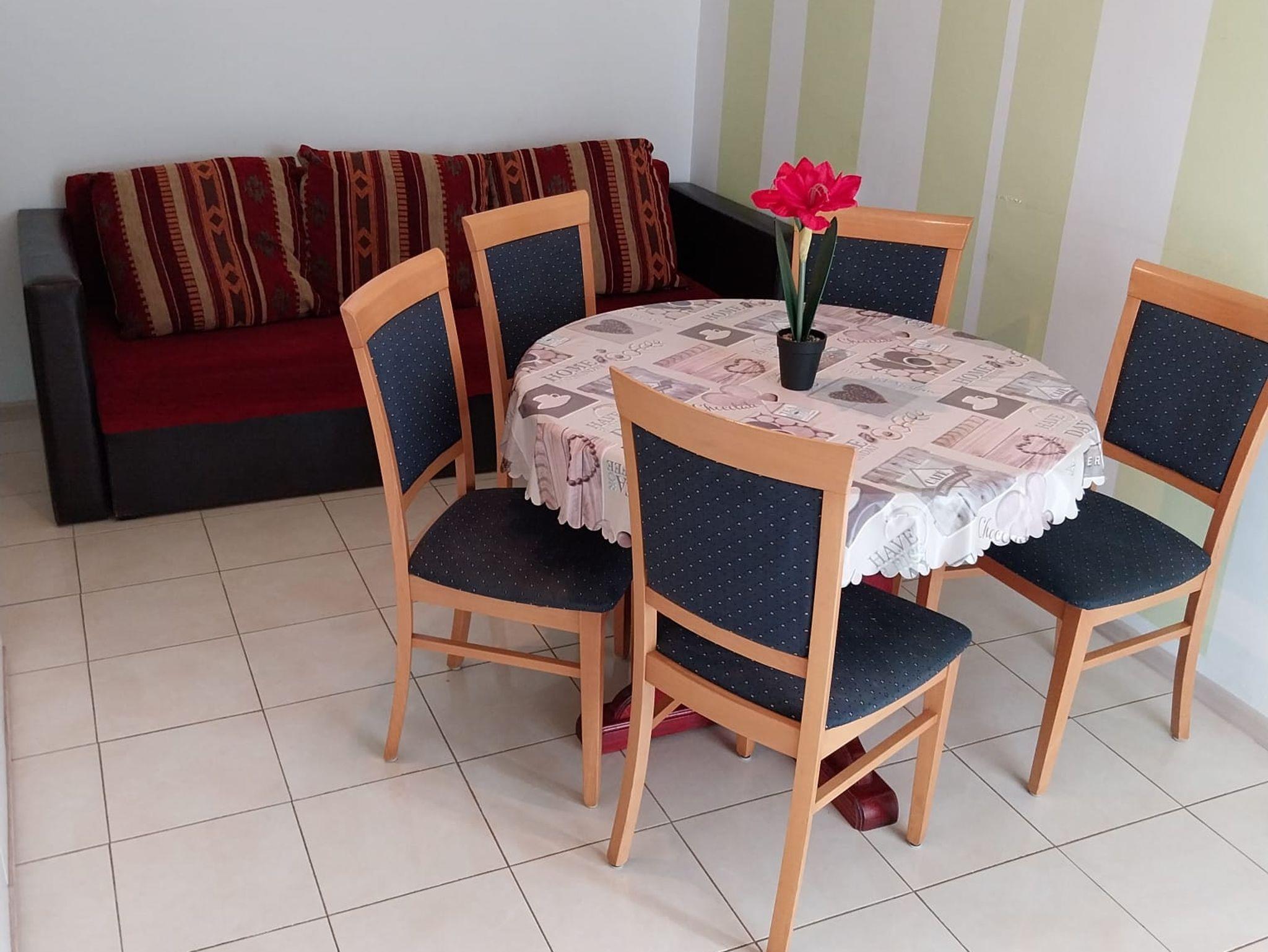Ferienwohnung bietet Platz für 6 Gäste. Die Betten sind in Schlafzimmern, die es 2 gibt, und in Wohnzimmer, innerhalb einer Gesamtfläche von 43m2, angeordnet. Die Gäste haben eine eigene Terrasse zur Verfügung, auf der sie in warmen Sommernächten genießen können. IM PREIS INBEGRIFFEN: Kurtaxe, Endreinigung, Klimatisierung, Parkplatz, Internet, Bügeleisen, Bügelbrett, Föhn. VERBINDLICHE ZUSÄTZLICHE KOSTEN: Aufzahlung für Kurzaufenthalte (prozentualer Zuschlag pro Nächtigungsanzahl: 30% - 1, 20% - 2, 10% - 3). UNVERBINDLICHE ZUSÄTZLICHE KOSTEN: Wäschewaschen (7,00 € Waschen). Die Verfügbarkeit zusätzlicher Dienstleistungen in Ihrem reservierten Termin und die Preise derselben (falls nicht aufgeführt) müssen im Voraus überprüft werden. Zusätzliche Dienstleistungen die in der Zahlungsaufforderung nicht aufgeführt sind werden direkt beim Vermieter bezahlt, angenommen der Gast nutzt auch diese. Ermäßigung auf den Grundpreis: Gratistag 14=13 (bei einem Aufenthalt von 14 Tagen oder mehr erhalten Sie einen Gratistag für den Aufenthalt bis 31.12.26).