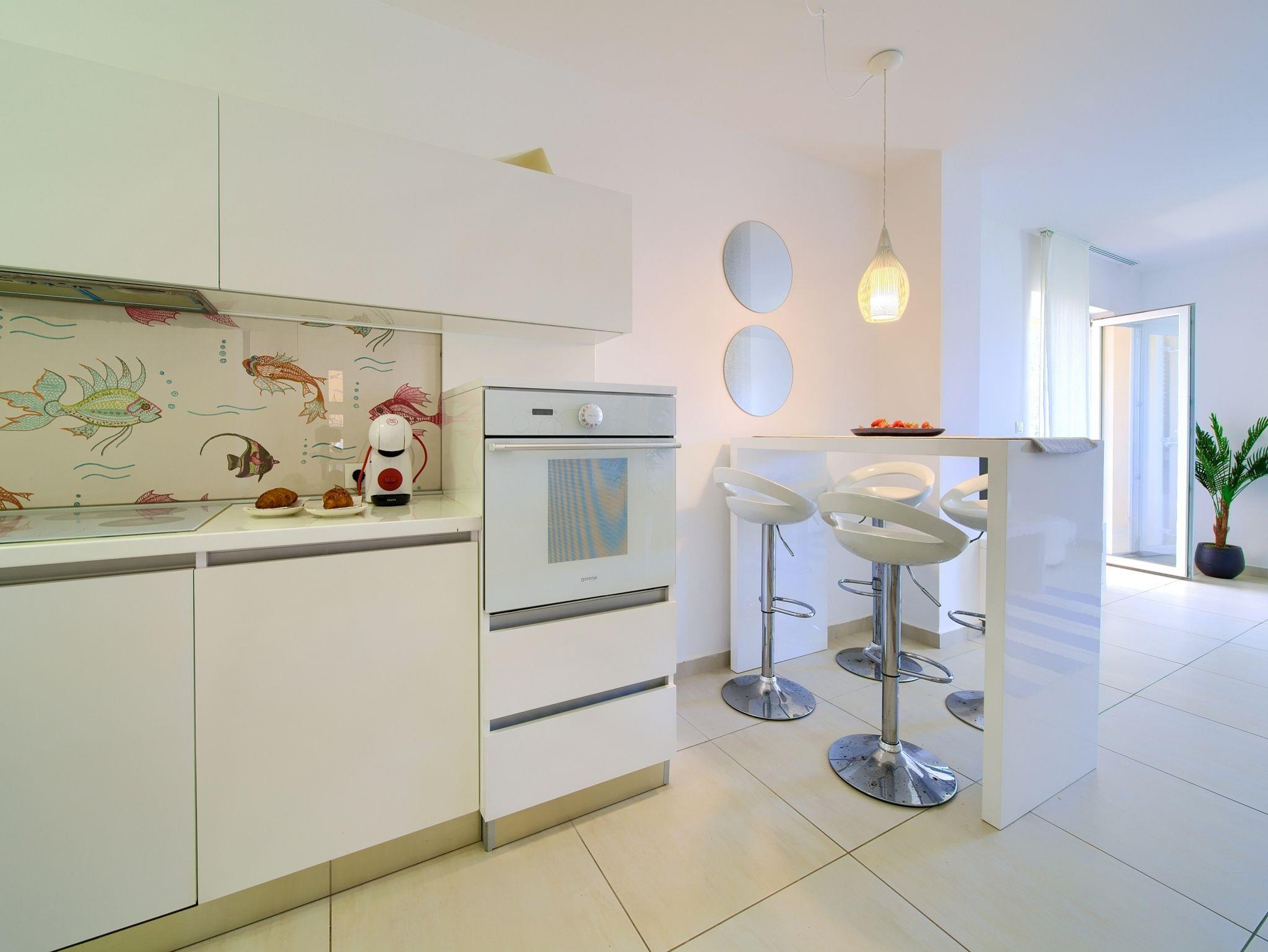 Ferienwohnung bietet Platz für 4 Gäste. Die Betten sind in Schlafzimmern, die es 2 gibt, innerhalb einer Gesamtfläche von 63m2, angeordnet. Die Gäste haben eine eigene Terrasse zur Verfügung, auf der sie in warmen Sommernächten genießen können. In der Unterkunftseinheit besteht die Möglichkeit des Mitbringens von Haustieren gegen Aufpreis. IM PREIS INBEGRIFFEN: Kurtaxe, Endreinigung, Klimatisierung, Parkplatz, Internet. VERBINDLICHE ZUSÄTZLICHE KOSTEN: Aufzahlung für Kurzaufenthalte (prozentualer Zuschlag pro Nächtigungsanzahl: 30% - 1, 20% - 2, 10% - 3). UNVERBINDLICHE ZUSÄTZLICHE KOSTEN: Haustiere (10,00 € pro Nacht). Die Verfügbarkeit zusätzlicher Dienstleistungen in Ihrem reservierten Termin und die Preise derselben (falls nicht aufgeführt) müssen im Voraus überprüft werden. Zusätzliche Dienstleistungen die in der Zahlungsaufforderung nicht aufgeführt sind werden direkt beim Vermieter bezahlt, angenommen der Gast nutzt auch diese.