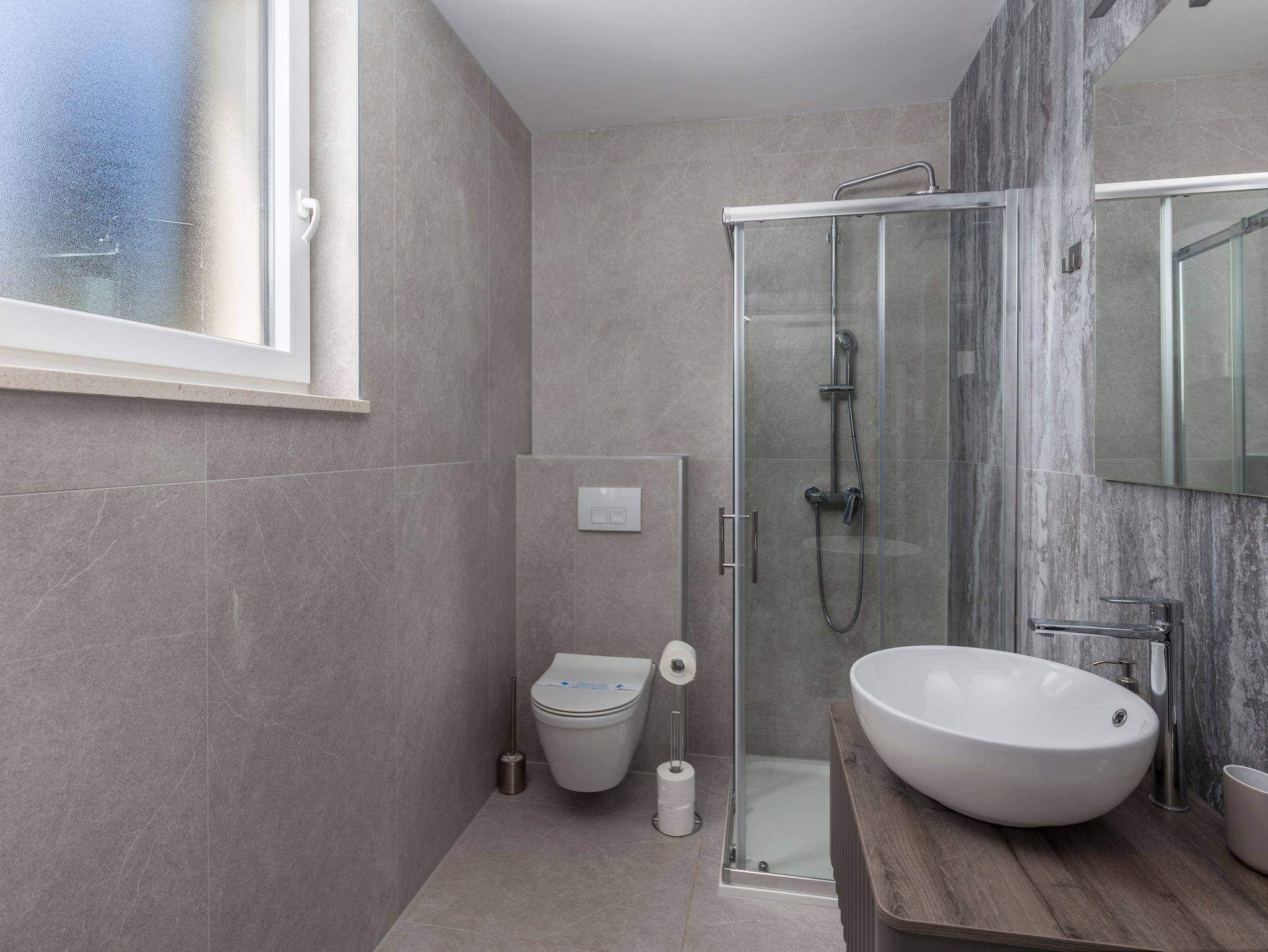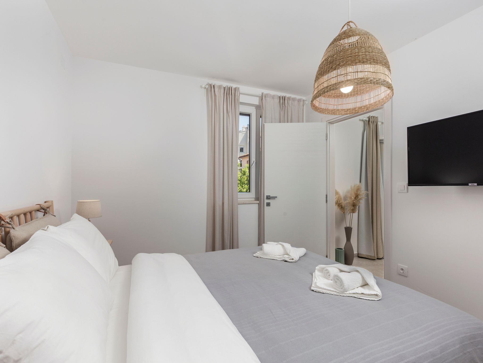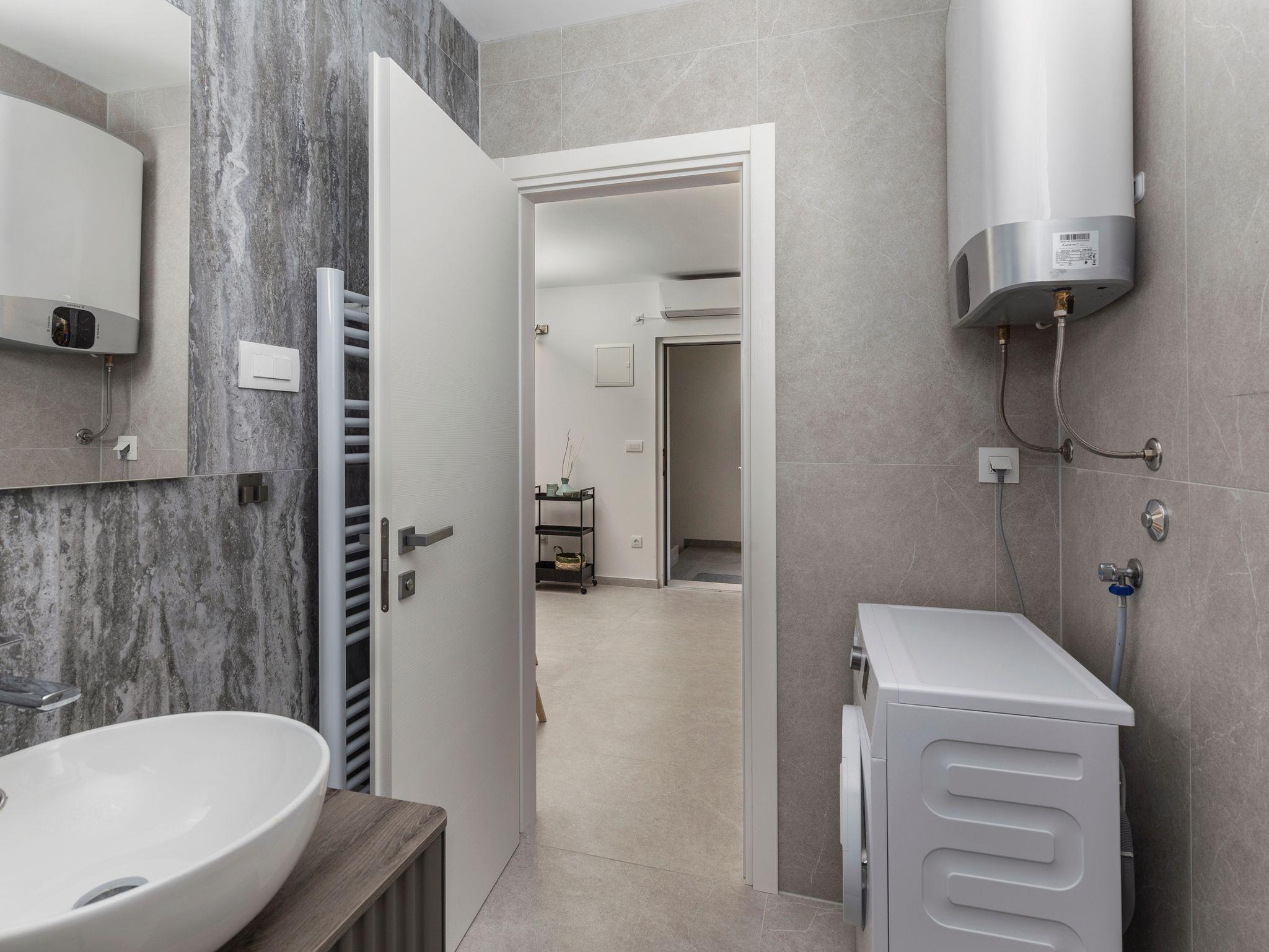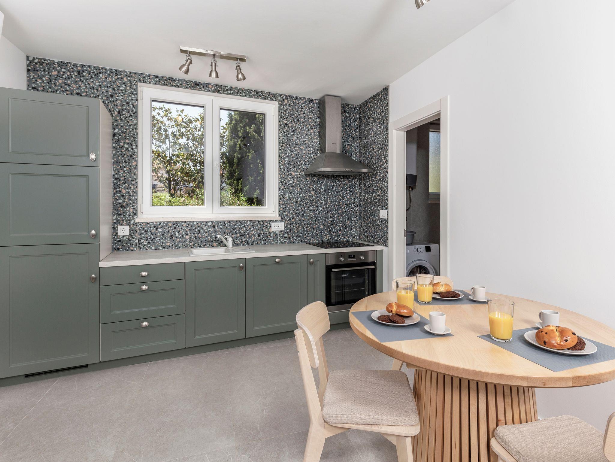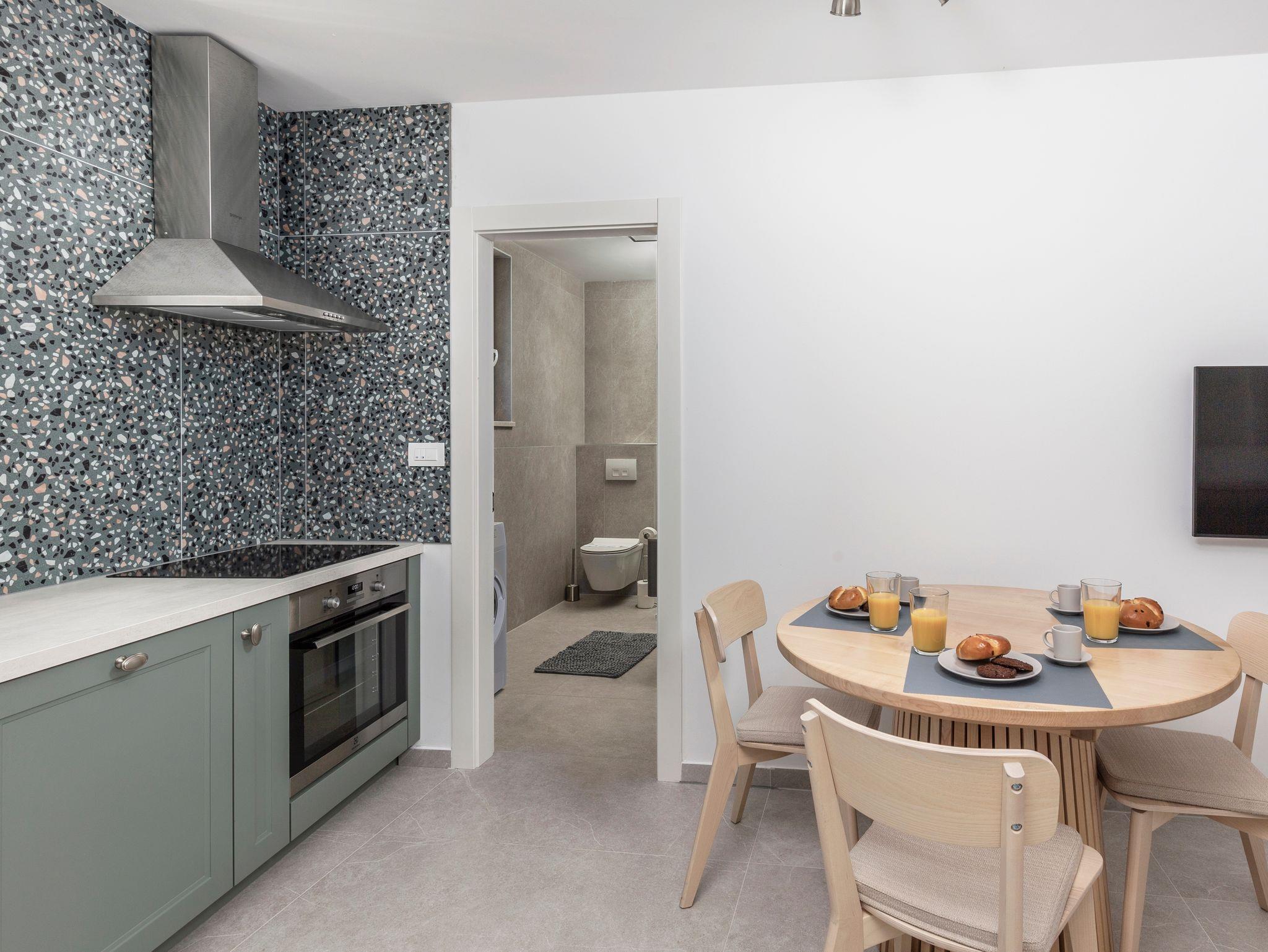 Ferienwohnung bietet Platz für 3 Gäste. Die Betten sind in Schlafzimmern, die es 1 gibt, und in Wohnzimmer, innerhalb einer Gesamtfläche von 34m2, angeordnet. Die Gäste haben eine eigene Terrasse zur Verfügung, auf der sie in warmen Sommernächten genießen können. Das Apartment bietet Meerblick. In der Unterkunftseinheit besteht die Möglichkeit des Mitbringens von Haustieren gegen Aufpreis. IM PREIS INBEGRIFFEN: Kurtaxe, Endreinigung, Klimatisierung, Parkplatz, Internet, Kinderbett, Föhn. VERBINDLICHE ZUSÄTZLICHE KOSTEN: Aufzahlung für Kurzaufenthalte (prozentualer Zuschlag pro Nächtigungsanzahl: 30% - 1, 20% - 2, 10% - 3). UNVERBINDLICHE ZUSÄTZLICHE KOSTEN: Haustiere (15,00 € pro Nacht), Zusatzbett (10,00 € pro Nacht). Die Verfügbarkeit zusätzlicher Dienstleistungen in Ihrem reservierten Termin und die Preise derselben (falls nicht aufgeführt) müssen im Voraus überprüft werden. Zusätzliche Dienstleistungen die in der Zahlungsaufforderung nicht aufgeführt sind werden direkt beim Vermieter bezahlt, angenommen der Gast nutzt auch diese.