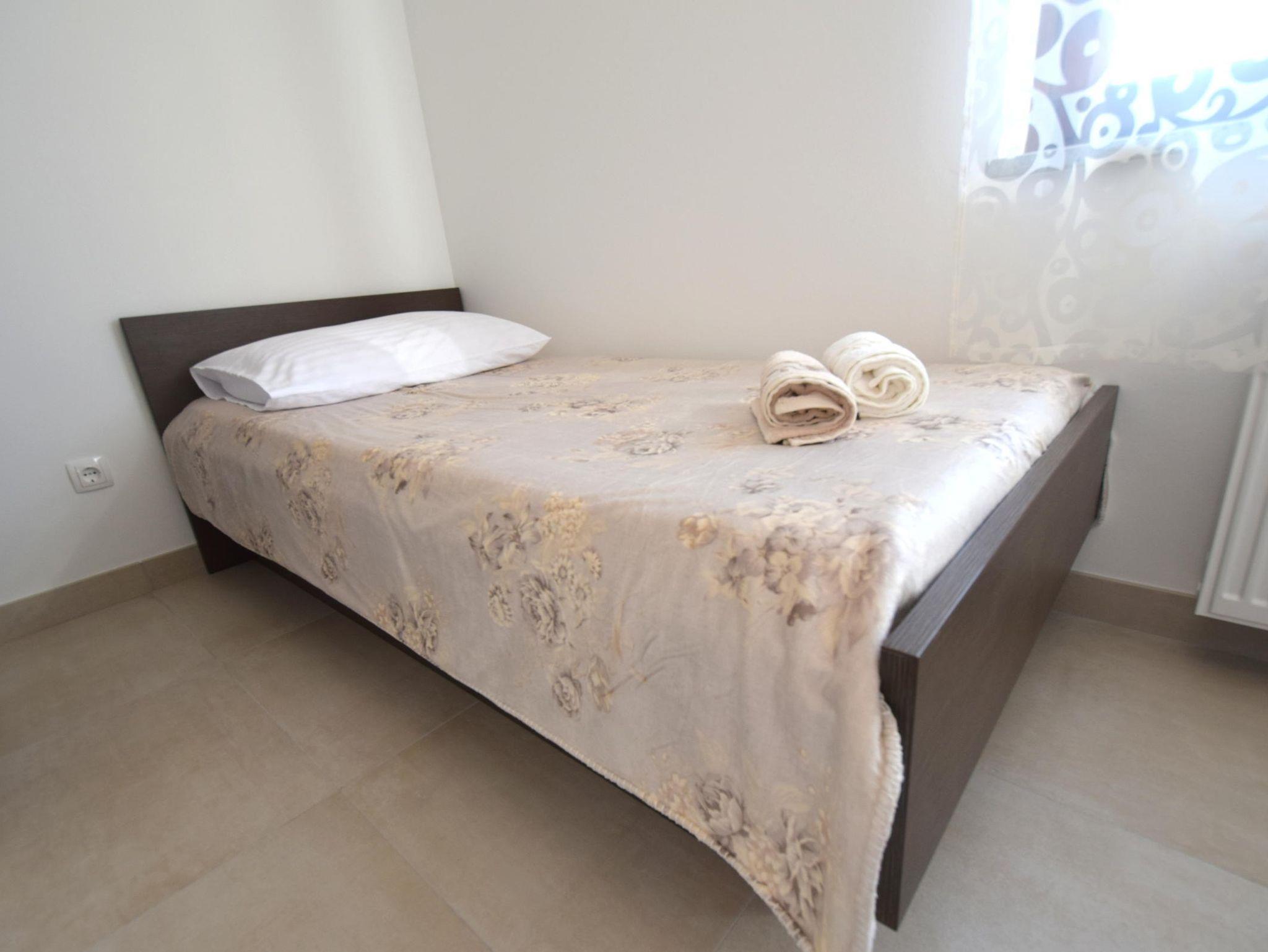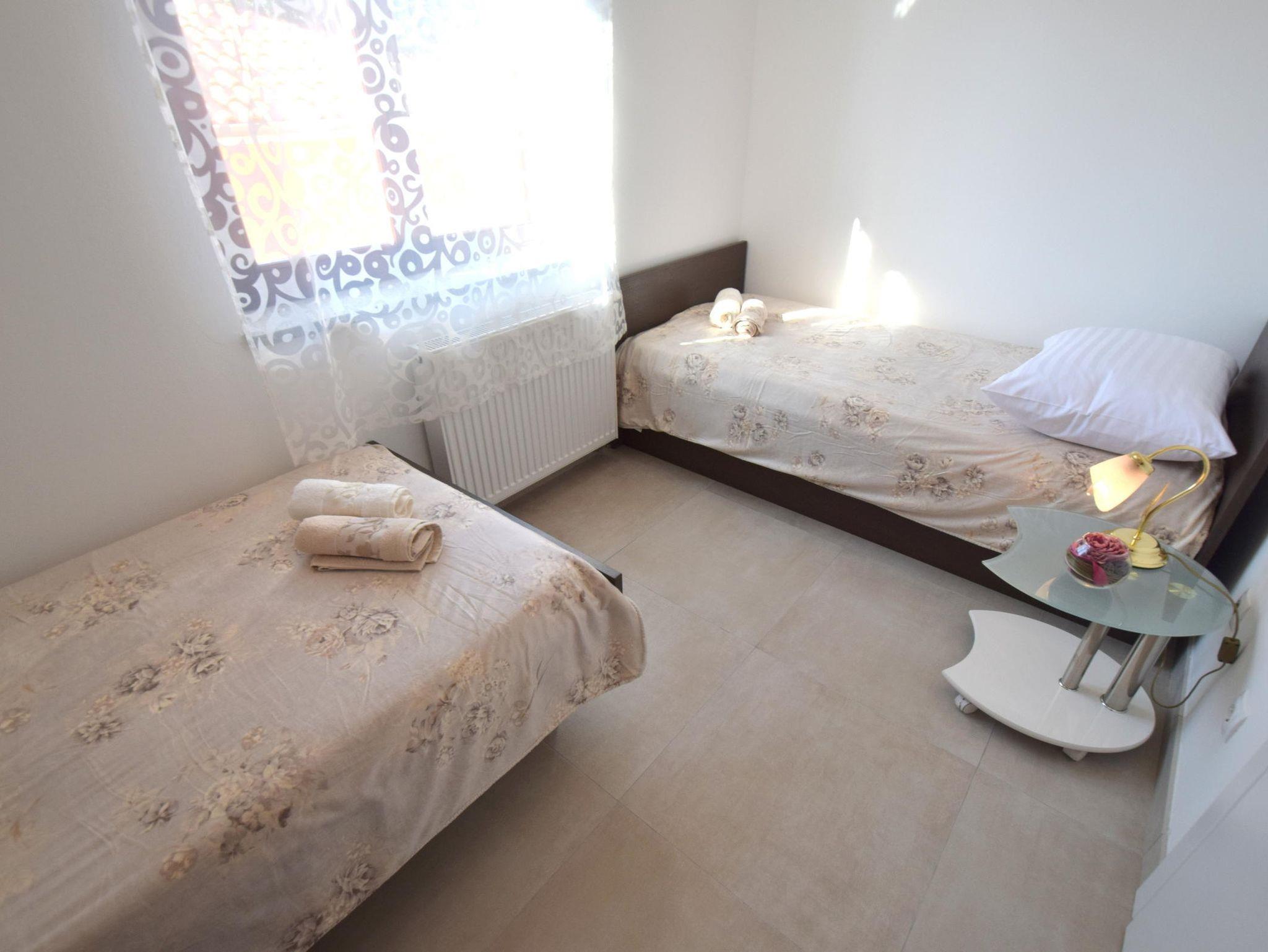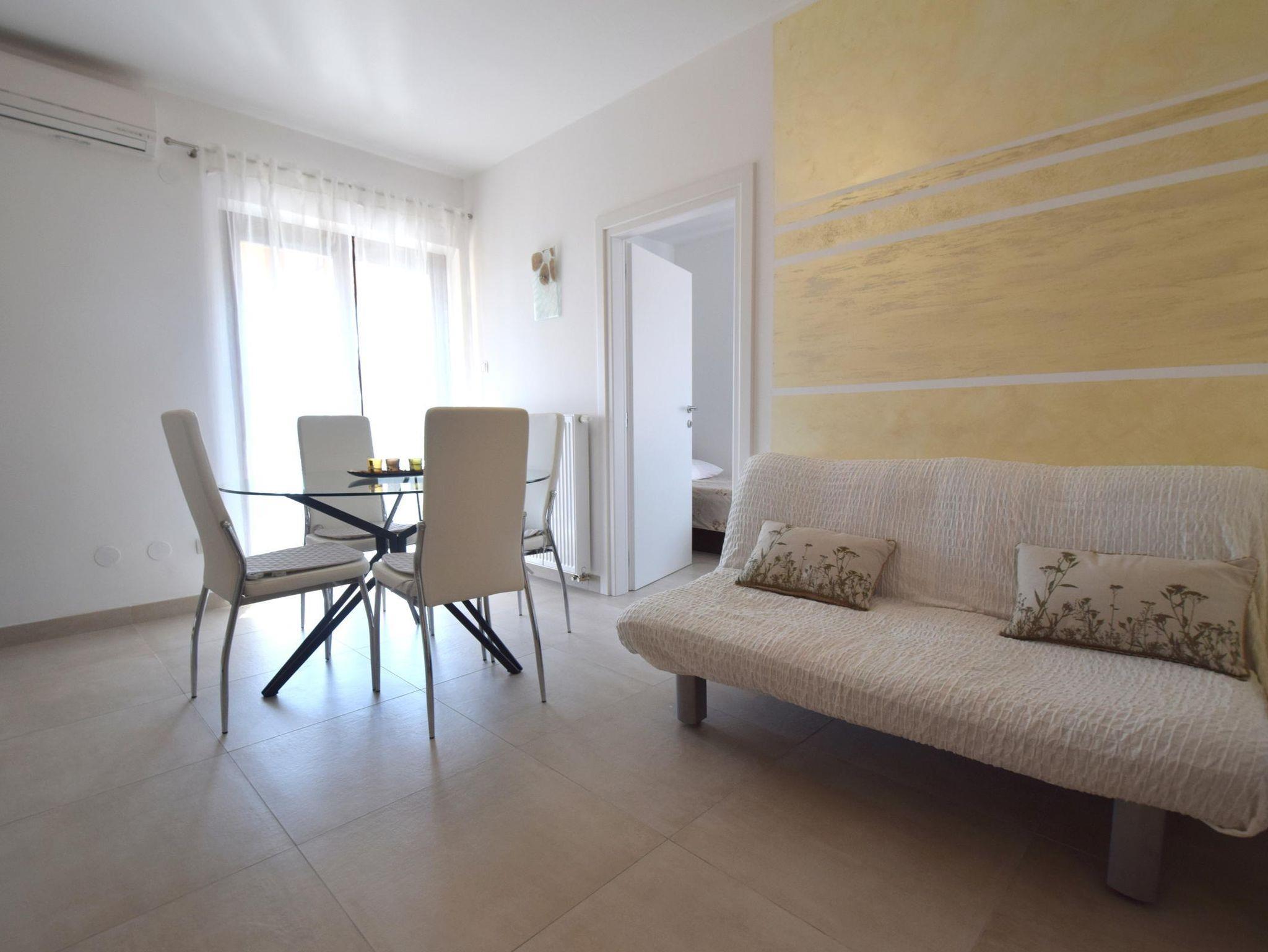 Ferienwohnung bietet Platz für 5 Gäste. Die Betten sind in Schlafzimmern, die es 2 gibt, und in Wohnzimmer, innerhalb einer Gesamtfläche von 45m2, angeordnet. Die Gäste haben eine eigene Terrasse zur Verfügung, auf der sie in warmen Sommernächten genießen können. Es ist erlaubt, Speisen auf dem Gemeinschafts-Grill vorzubereiten. IM PREIS INBEGRIFFEN: Kurtaxe, Endreinigung, Klimatisierung, Zentralheizung, Parkplatz, Internet, Kinderbett. VERBINDLICHE ZUSÄTZLICHE KOSTEN: Aufzahlung für Kurzaufenthalte (prozentualer Zuschlag pro Nächtigungsanzahl: 30% - 1, 20% - 2, 10% - 3). Die Verfügbarkeit zusätzlicher Dienstleistungen in Ihrem reservierten Termin und die Preise derselben (falls nicht aufgeführt) müssen im Voraus überprüft werden. Zusätzliche Dienstleistungen die in der Zahlungsaufforderung nicht aufgeführt sind werden direkt beim Vermieter bezahlt, angenommen der Gast nutzt auch diese.