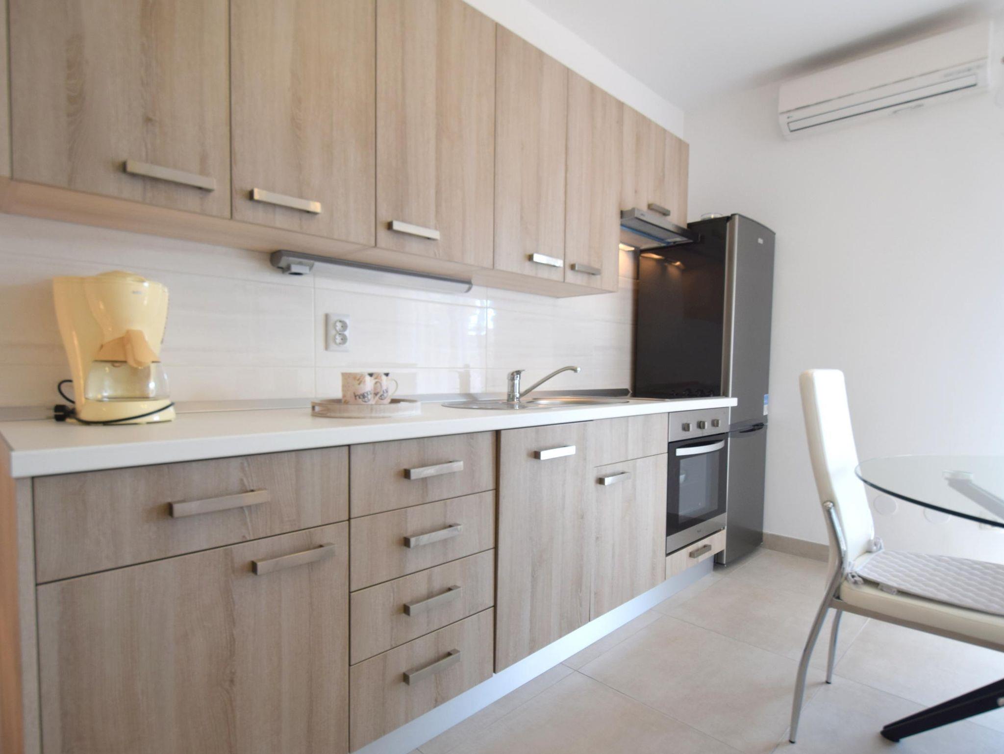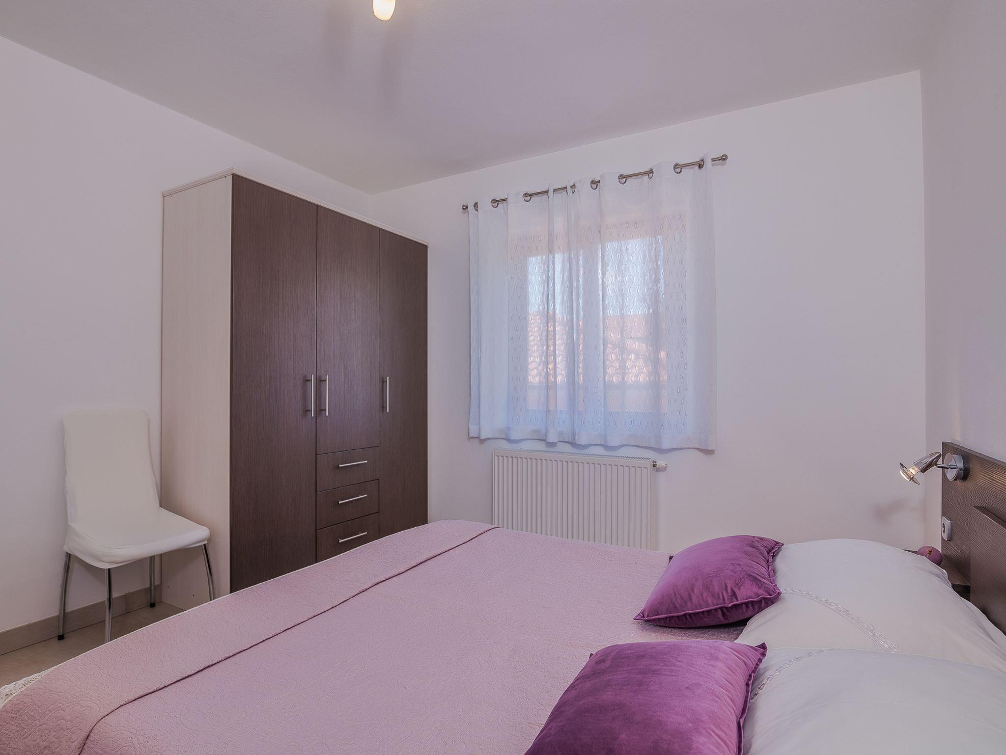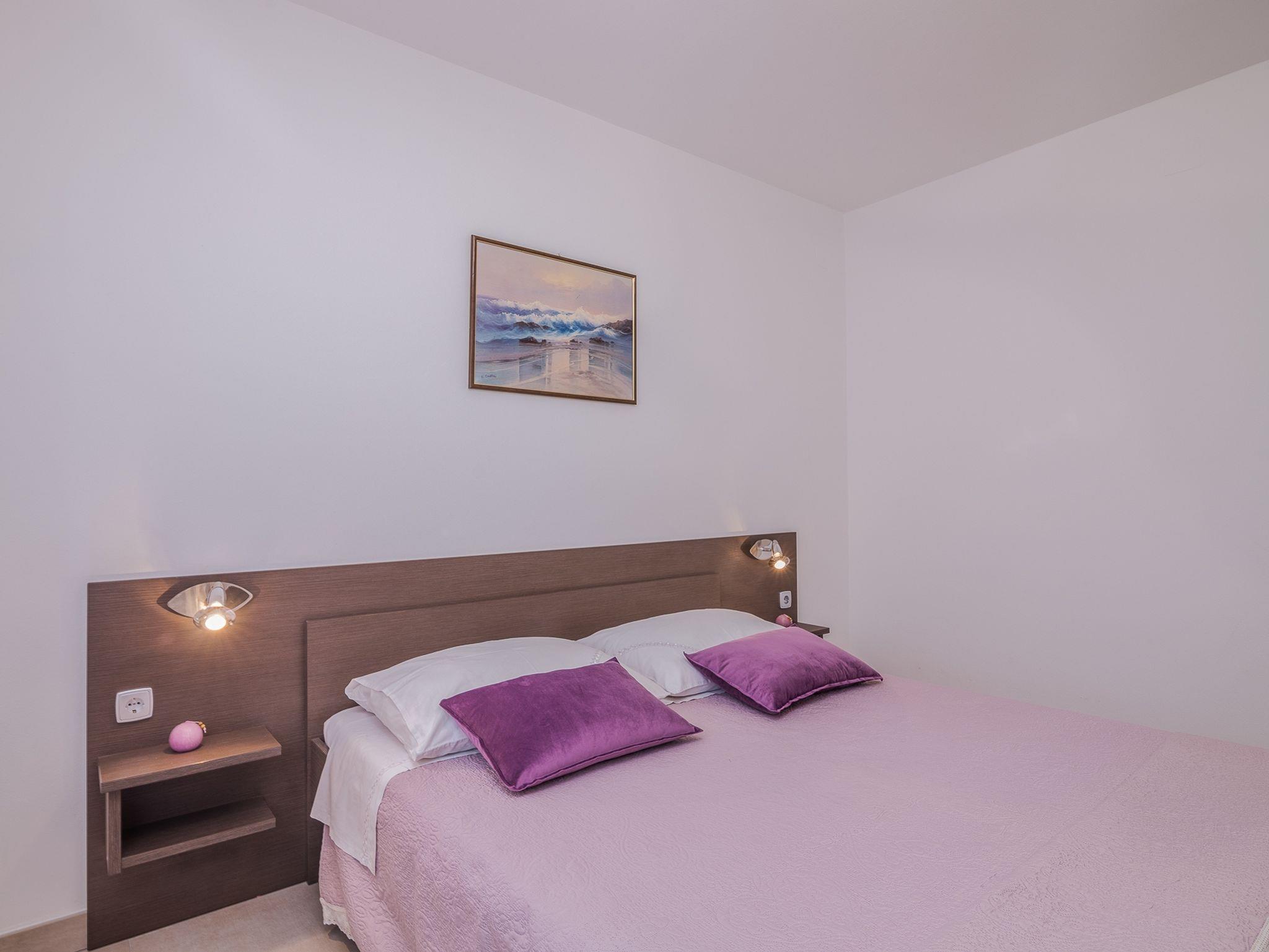 Ferienwohnung bietet Platz für 5 Gäste. Die Betten sind in Schlafzimmern, die es 2 gibt, und in Wohnzimmer, innerhalb einer Gesamtfläche von 45m2, angeordnet. Die Gäste haben eine eigene Terrasse zur Verfügung, auf der sie in warmen Sommernächten genießen können. Es ist erlaubt, Speisen auf dem Gemeinschafts-Grill vorzubereiten. IM PREIS INBEGRIFFEN: Kurtaxe, Endreinigung, Klimatisierung, Zentralheizung, Parkplatz, Internet, Kinderbett. VERBINDLICHE ZUSÄTZLICHE KOSTEN: Aufzahlung für Kurzaufenthalte (prozentualer Zuschlag pro Nächtigungsanzahl: 30% - 1, 20% - 2, 10% - 3). Die Verfügbarkeit zusätzlicher Dienstleistungen in Ihrem reservierten Termin und die Preise derselben (falls nicht aufgeführt) müssen im Voraus überprüft werden. Zusätzliche Dienstleistungen die in der Zahlungsaufforderung nicht aufgeführt sind werden direkt beim Vermieter bezahlt, angenommen der Gast nutzt auch diese.