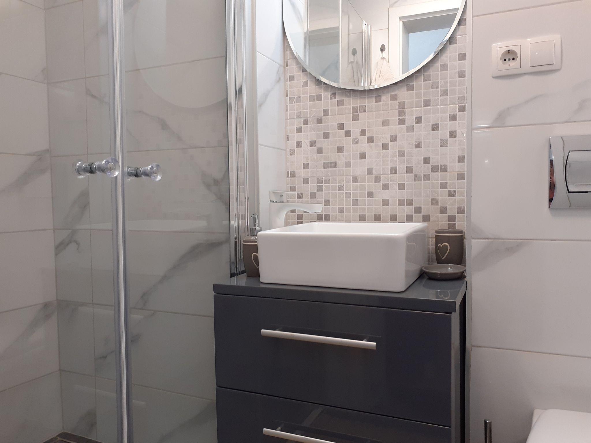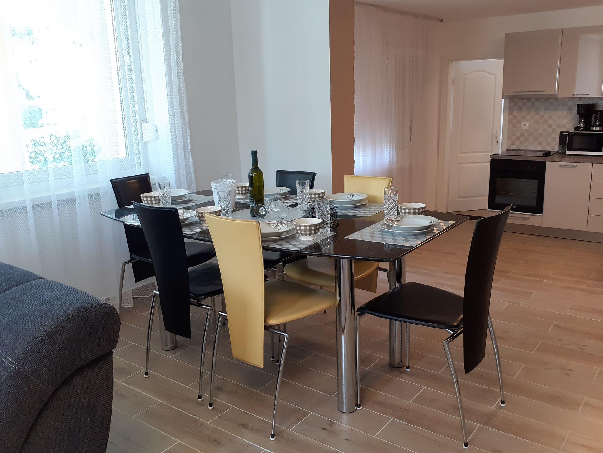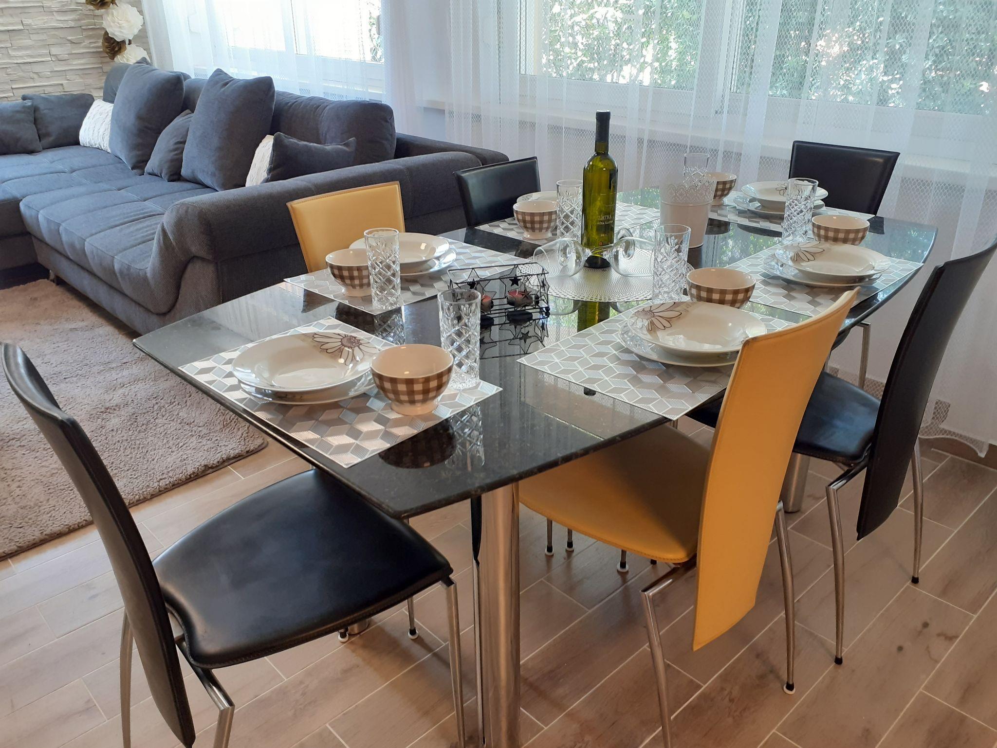 Ferienwohnung bietet Platz für 6 Gäste. Die Betten sind in Schlafzimmern, die es 3 gibt, und in Wohnzimmer, innerhalb einer Gesamtfläche von 94m2, angeordnet. Die Gäste haben eine eigene Terrasse zur Verfügung, auf der sie in warmen Sommernächten genießen können. Für vollen Genuss und Entspannung gibt es einen privaten Grill für Gäste dieser Unterkunft. Während ihres Aufenthalts können sich Gäste im privaten Schwimmbad entspannen. IM PREIS INBEGRIFFEN: Kurtaxe, Endreinigung, Klimatisierung, Pool, Parkplatz, Internet, Föhn. VERBINDLICHE ZUSÄTZLICHE KOSTEN: Aufzahlung für Kurzaufenthalte (prozentualer Zuschlag pro Nächtigungsanzahl: 30% - 1, 20% - 2, 10% - 3). Die Verfügbarkeit zusätzlicher Dienstleistungen in Ihrem reservierten Termin und die Preise derselben (falls nicht aufgeführt) müssen im Voraus überprüft werden. Zusätzliche Dienstleistungen die in der Zahlungsaufforderung nicht aufgeführt sind werden direkt beim Vermieter bezahlt, angenommen der Gast nutzt auch diese.