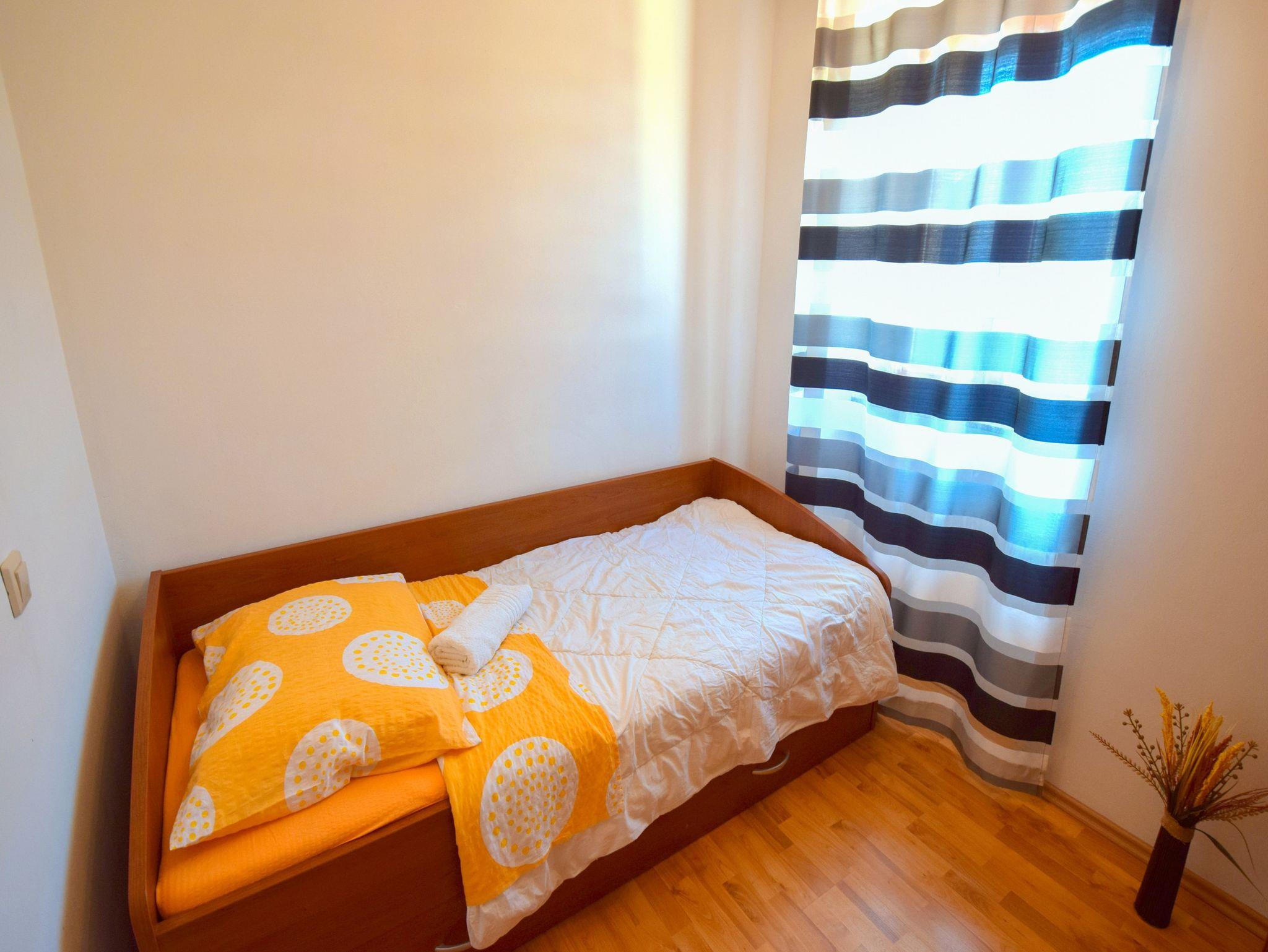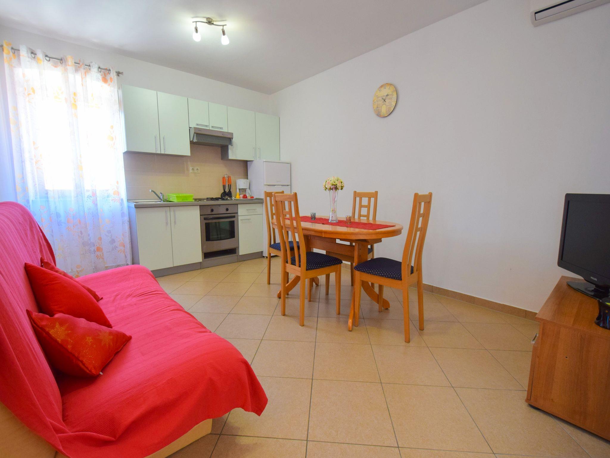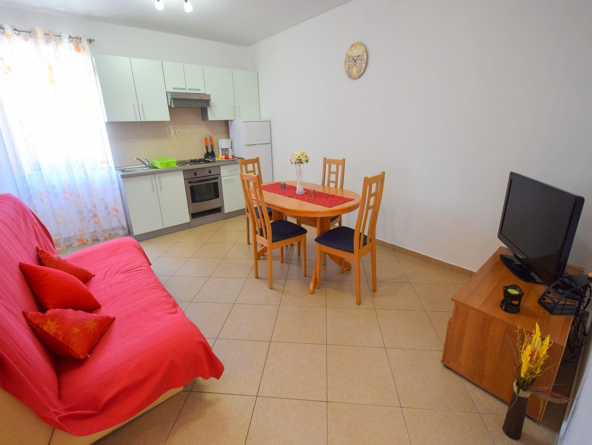 Ferienwohnung bietet Platz für 5 Gäste. Die Betten sind in Schlafzimmern, die es 2 gibt, und in Wohnzimmer, innerhalb einer Gesamtfläche von 60m2, angeordnet. Die Gäste haben eine eigene Terrasse zur Verfügung, auf der sie in warmen Sommernächten genießen können. Das Apartment bietet Meerblick. Es ist erlaubt, Speisen auf dem Gemeinschafts-Grill vorzubereiten. In der Unterkunftseinheit besteht die Möglichkeit des Mitbringens von Haustieren gegen Aufpreis. IM PREIS INBEGRIFFEN: Kurtaxe, Endreinigung, Klimatisierung, Parkplatz, Internet. VERBINDLICHE ZUSÄTZLICHE KOSTEN: Aufzahlung für Kurzaufenthalte (prozentualer Zuschlag pro Nächtigungsanzahl: 30% - 1, 20% - 2, 10% - 3). UNVERBINDLICHE ZUSÄTZLICHE KOSTEN: Haustiere (10,00 € pro Nacht). Die Verfügbarkeit zusätzlicher Dienstleistungen in Ihrem reservierten Termin und die Preise derselben (falls nicht aufgeführt) müssen im Voraus überprüft werden. Zusätzliche Dienstleistungen die in der Zahlungsaufforderung nicht aufgeführt sind werden direkt beim Vermieter bezahlt, angenommen der Gast nutzt auch diese.