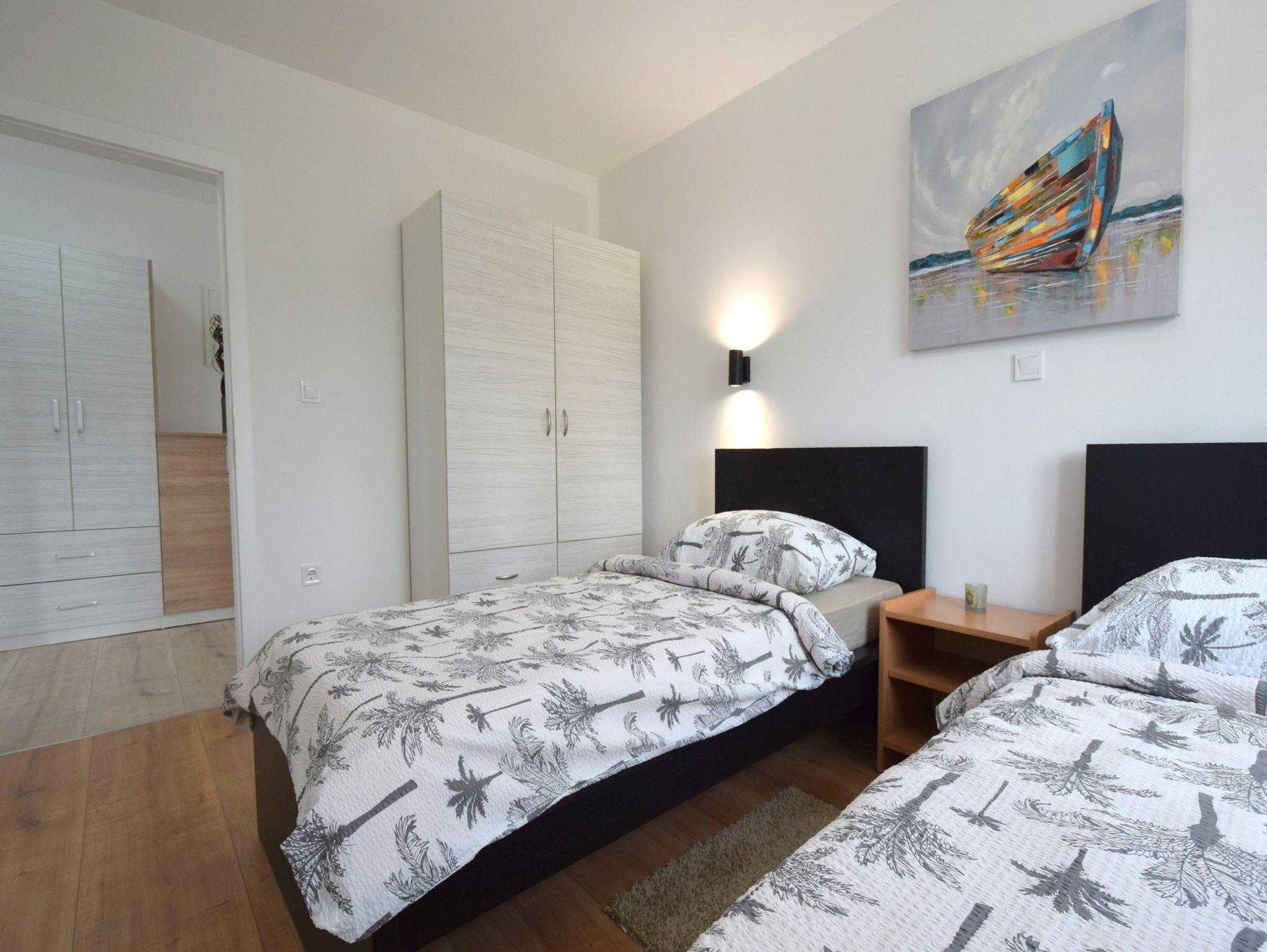 Ferienwohnung bietet Platz für 4 Gäste. Die Betten sind in Schlafzimmern, die es 2 gibt, innerhalb einer Gesamtfläche von 75m2, angeordnet. Die Gäste haben eine eigene Terrasse zur Verfügung, auf der sie in warmen Sommernächten genießen können. Das Apartment bietet Meerblick. IM PREIS INBEGRIFFEN: Kurtaxe, Endreinigung, Klimatisierung, Parkplatz, Internet, Bügeleisen, Bügelbrett, Föhn. VERBINDLICHE ZUSÄTZLICHE KOSTEN: Aufzahlung für Kurzaufenthalte (prozentualer Zuschlag pro Nächtigungsanzahl: 30% - 1, 20% - 2, 10% - 3). Die Verfügbarkeit zusätzlicher Dienstleistungen in Ihrem reservierten Termin und die Preise derselben (falls nicht aufgeführt) müssen im Voraus überprüft werden. Zusätzliche Dienstleistungen die in der Zahlungsaufforderung nicht aufgeführt sind werden direkt beim Vermieter bezahlt, angenommen der Gast nutzt auch diese.