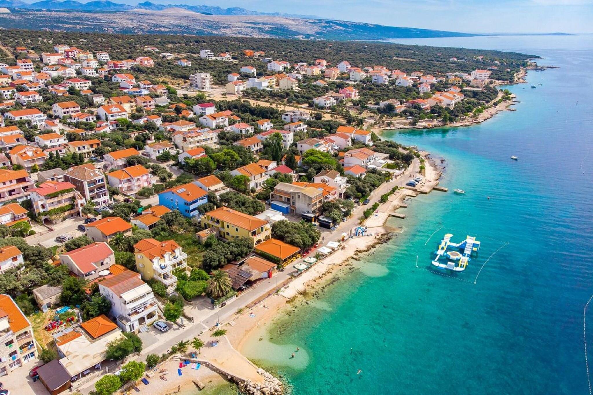 Denne charmerende lejlighed med 2 soveværelser ligger i en fredelig fiskerlandsby på øen Pag i Mandre og er ideel til en familie eller en gruppe på op til fem gæster. Kun få skridt fra Mandres uberørte strande tilbyder den en smuk udsigt over Adriaterhavet og en rolig kystatmosfære, perfekt til en afslappende ferie. Lejligheden har et fuldt udstyret køkken med opvaskemaskine, aircondition og vaskemaskine for ekstra komfort og bekvemmelighed. Gæsterne kan nyde måltider under åben himmel eller morgenkaffe på den private terrasse, komplet med siddeområde og panoramaudsigt over havet. Der er også en grill, hvilket gør aftenerne ved havet endnu mere behagelige. Novalja, kendt for sine livlige butikker og restauranter, ligger kun 15 minutters kørsel derfra. Beliggenheden er let tilgængelig via vejbro 106 fra syd eller med færge fra Prizna, hvilket gør det nemt og behageligt at udforske øen. Der er gratis parkering, og ejendommen byder børn velkommen og tilbyder en komfortabel og familievenlig base for at opdage øens skønhed og charme.