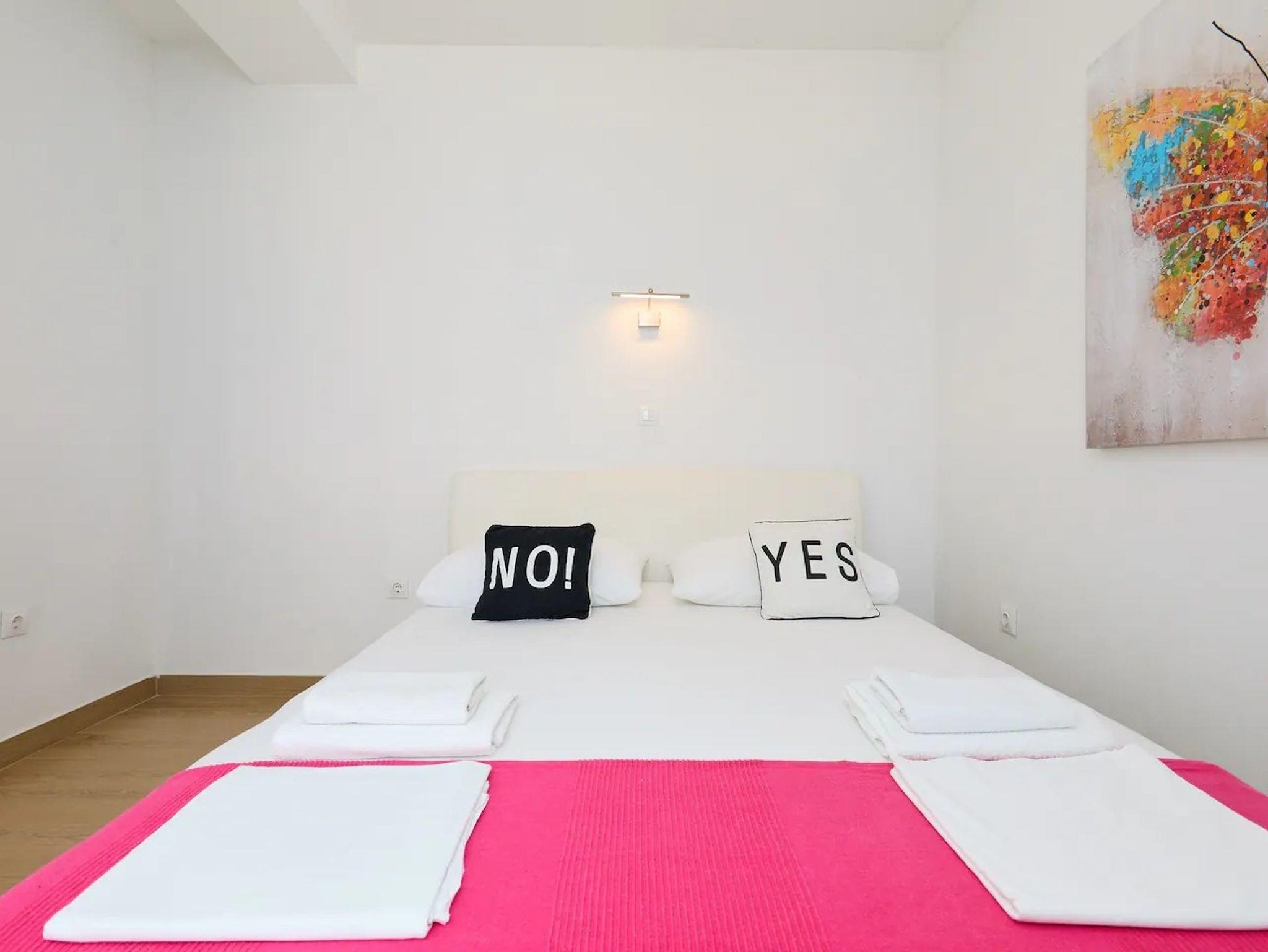 Studio bietet Platz für 2 Gäste. Die Betten sind in Schlafzimmern, die es 1 gibt, innerhalb einer Gesamtfläche von 17m2, angeordnet. Die Gäste haben eine eigene Terrasse zur Verfügung, auf der sie in warmen Sommernächten genießen können. Das Studio-Apartment bietet Meerblick. IM PREIS INBEGRIFFEN: Kurtaxe, Endreinigung, Internet, Kinderbett, Bügeleisen, Bügelbrett, Föhn, Sonnenschirm, Liegestühle. Die Verfügbarkeit zusätzlicher Dienstleistungen in Ihrem reservierten Termin und die Preise derselben (falls nicht aufgeführt) müssen im Voraus überprüft werden. Zusätzliche Dienstleistungen die in der Zahlungsaufforderung nicht aufgeführt sind werden direkt beim Vermieter bezahlt, angenommen der Gast nutzt auch diese.